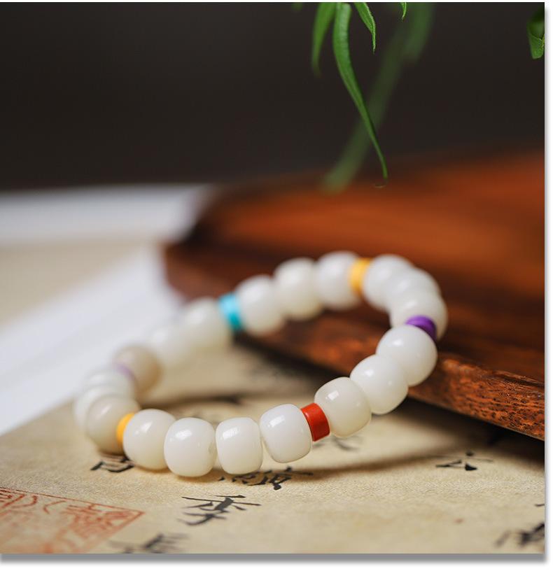 Cadena de cuentas de jade blanco natural de Hainan con raíz de Bodhi, original, hecha a mano, para hombres y mujeres, accesorios de regalo.