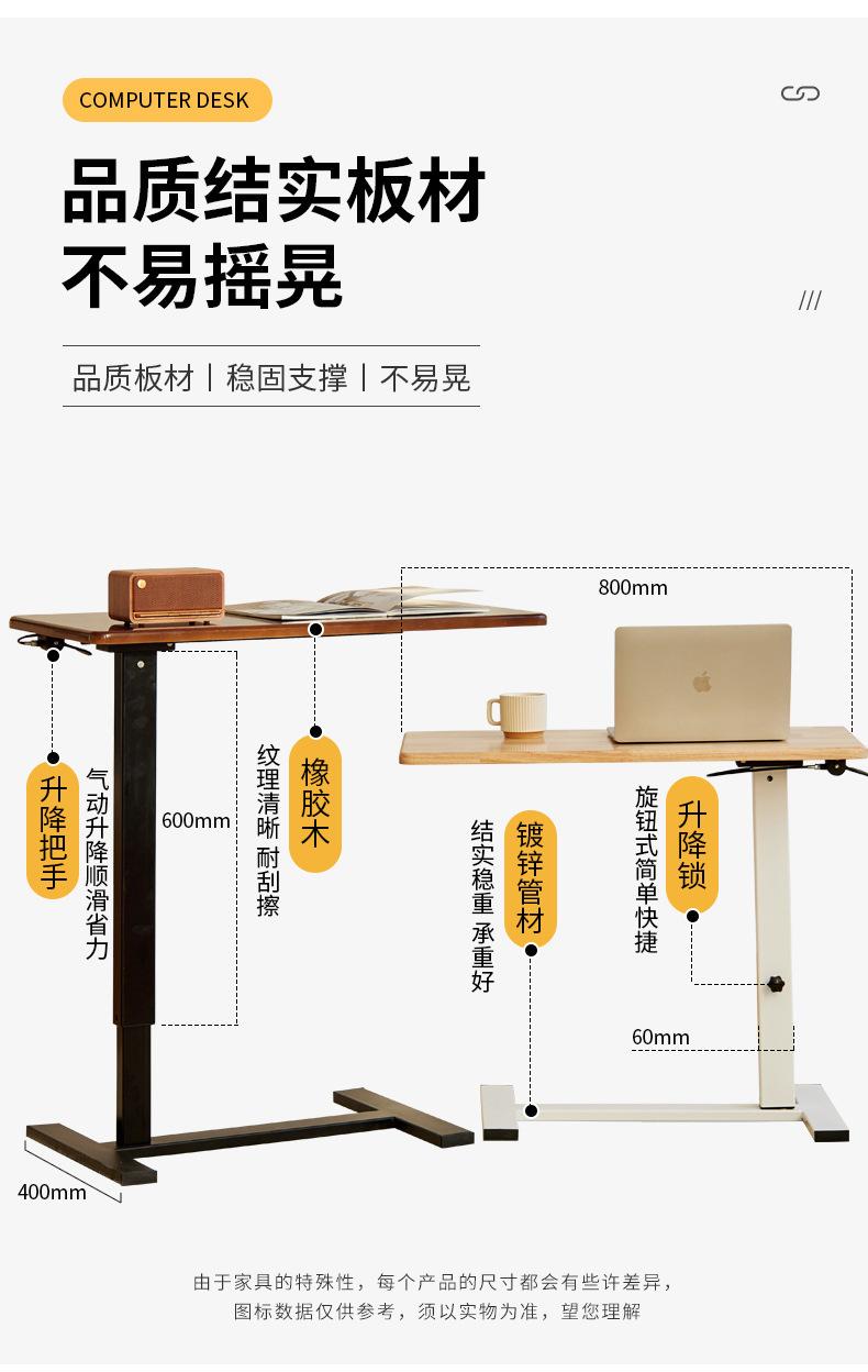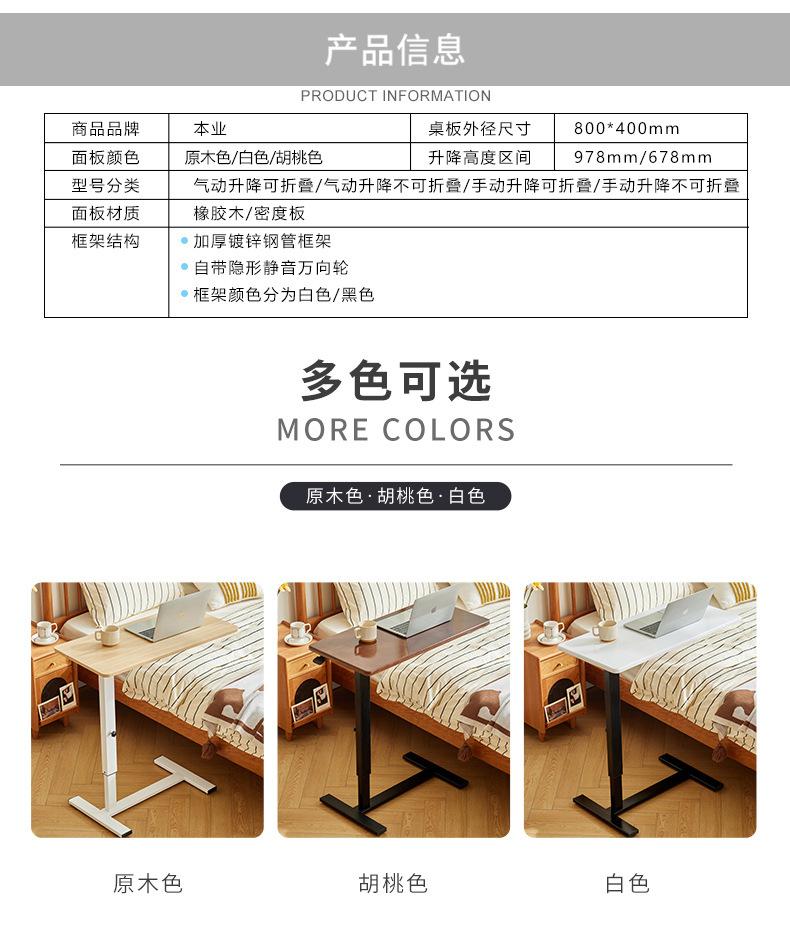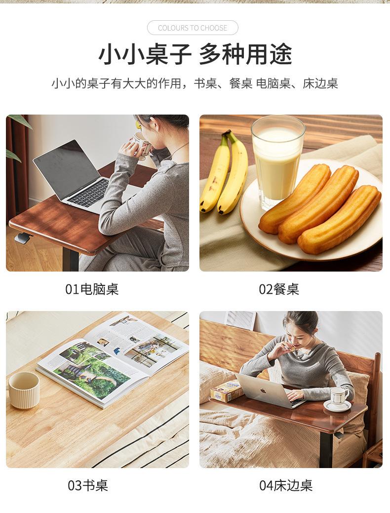 Mesita de noche móvil, mesa elevable para portátil, sofá de sala de estar, mesa de madera maciza, mesa de estudio para cama