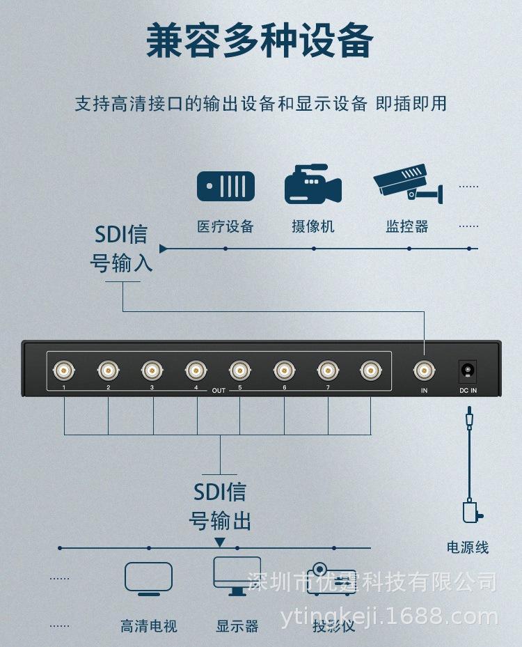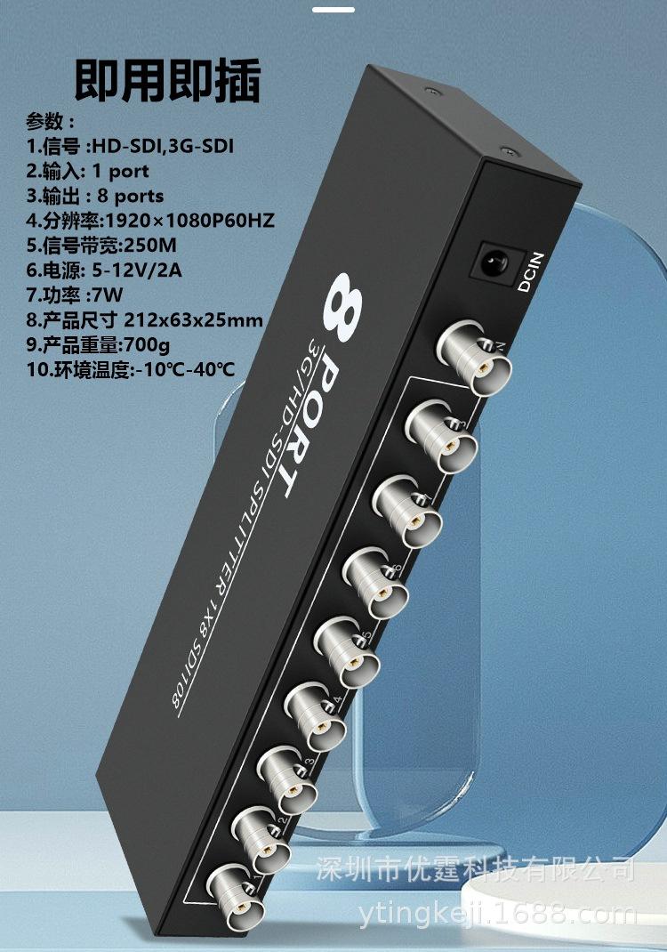 Distribuidor SDI Youting 1x8 3G divisor sdi 1x8 1080P60hz línea RG-6 distancia de transmisión 100m