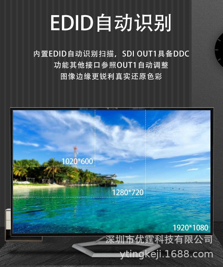 IDEEl distribuidor puede convertir un canal de HDHD/3G-SDILas señales de video digital en serie utilizan tecnología de procesamiento de nivel de transmisión, con alta definición, sin distorsión y distribución sin retardo.8Señal síncrona a TV de alta definición, proyector y otros equipos, chip de dispositivo automático incorporado identifica automáticamente compatibleHD-SDI、3G-SDIetc.IDESeñal.
