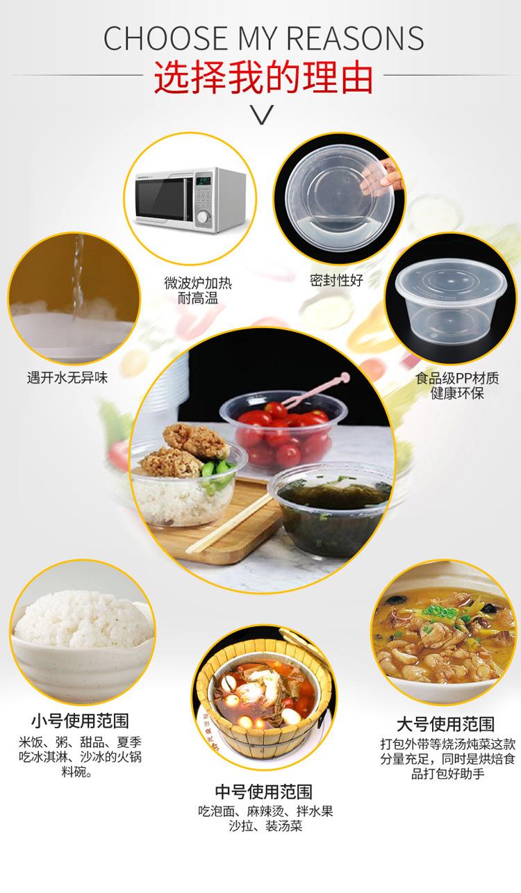 Caja de embalaje redonda, lonchera desechable, lonchera rectangular, tazón de plástico, palillos, tazón de sopa grueso transparente de grado alimenticio con tapa