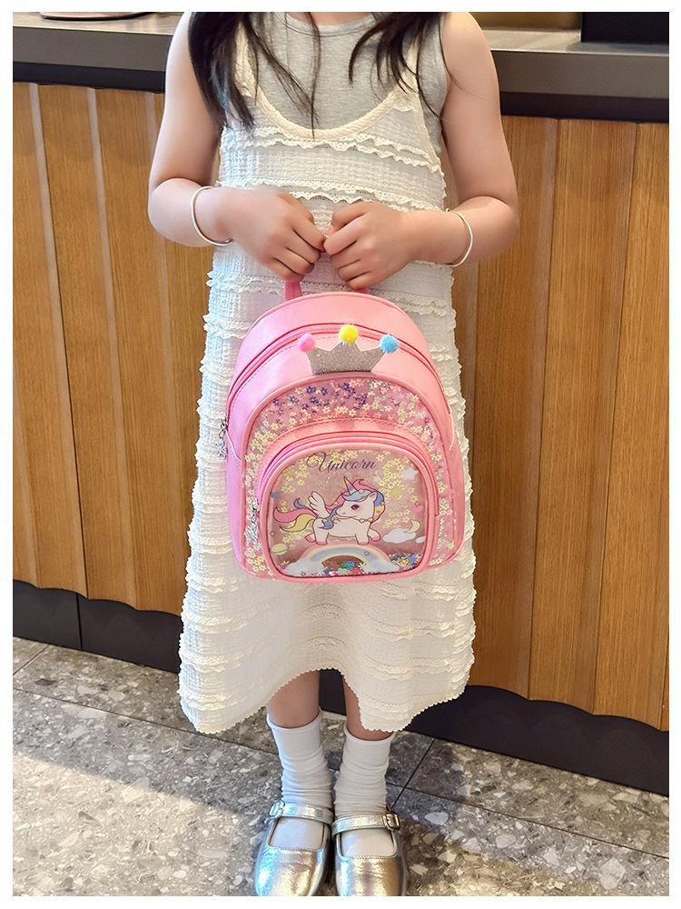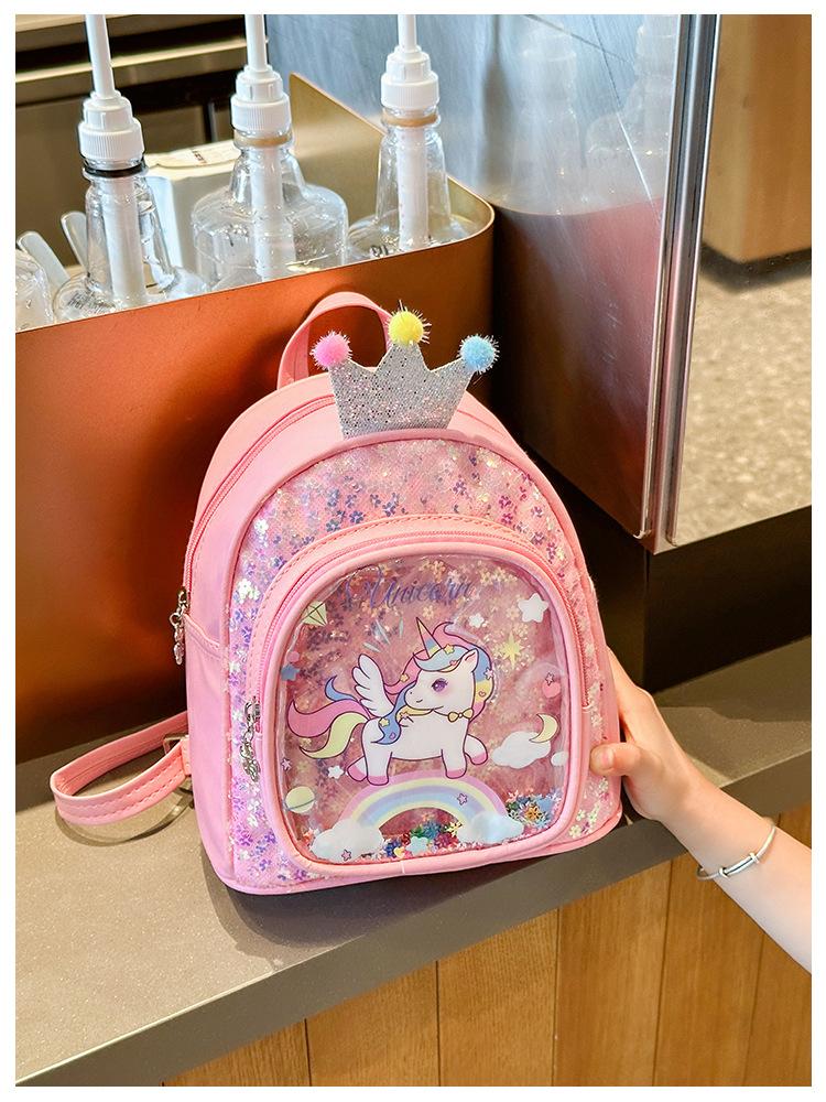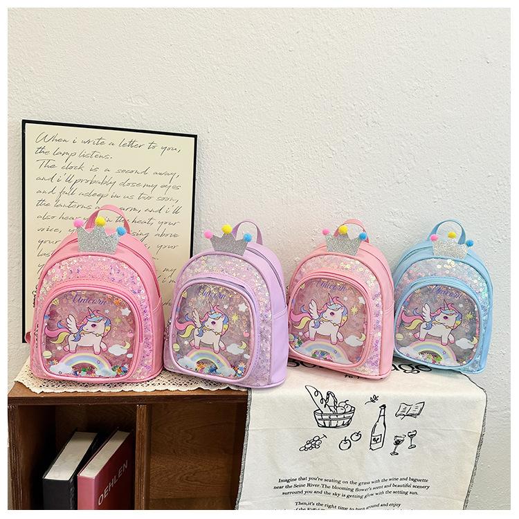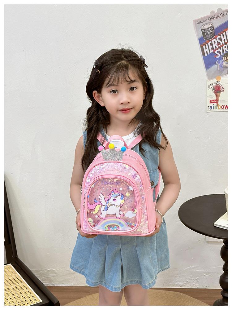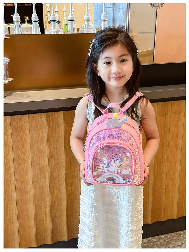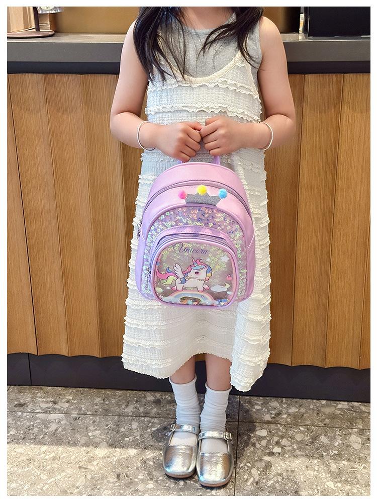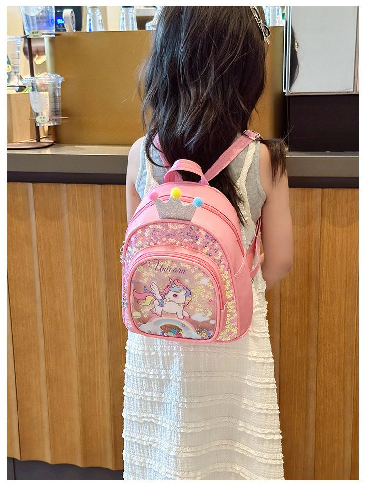 Bonita mochila de poni arcoíris de dibujos animados, nueva, con lentejuelas y arenas movedizas, para niñas de jardín de infancia, suave y linda mochila.