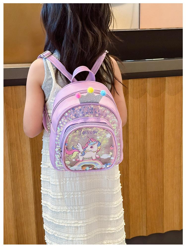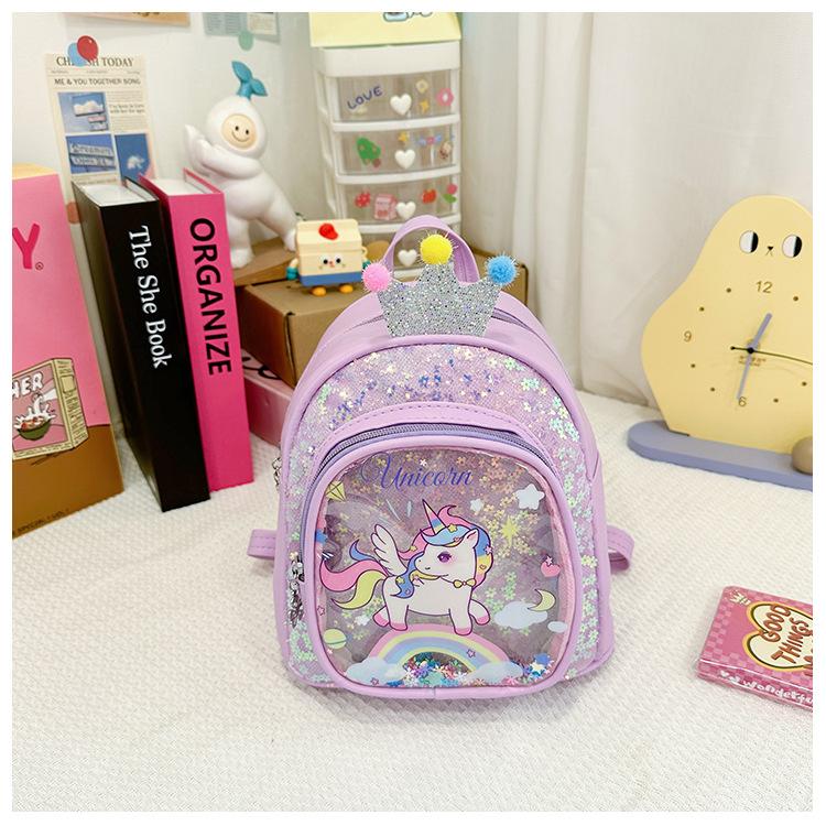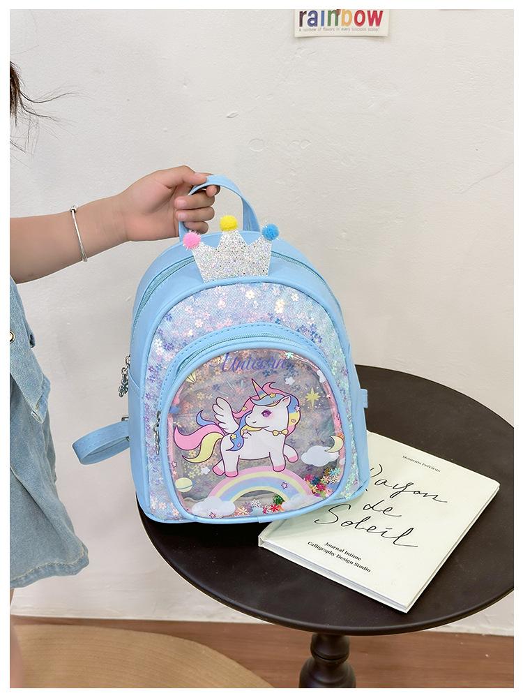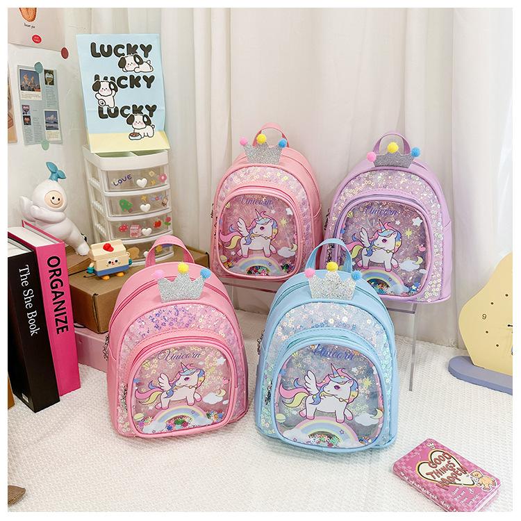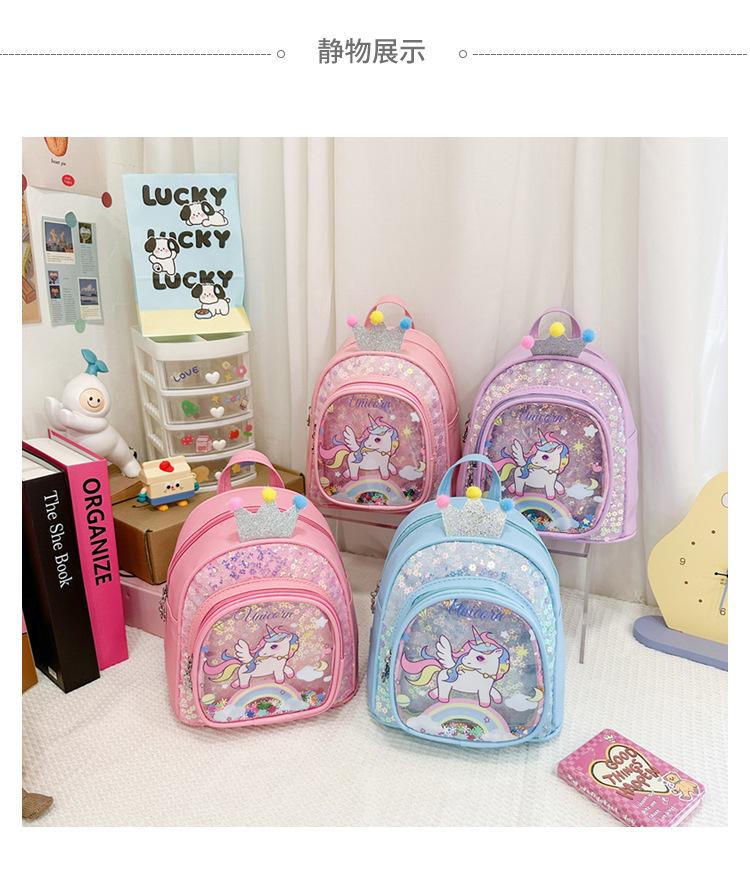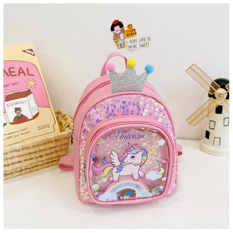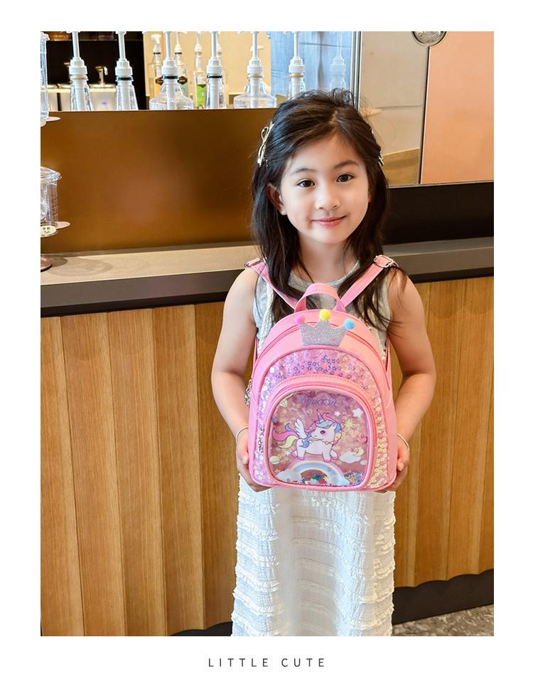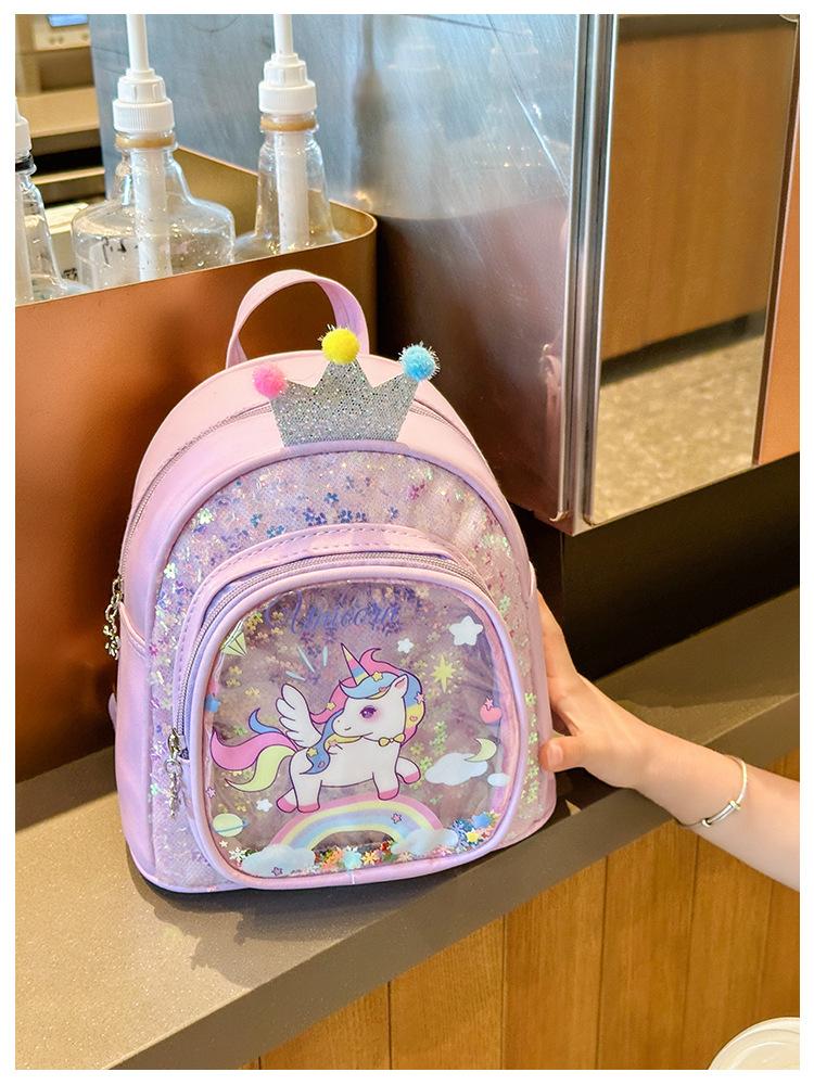 Bonita mochila de poni arcoíris de dibujos animados, nueva, con lentejuelas y arenas movedizas, para niñas de jardín de infancia, suave y linda mochila.