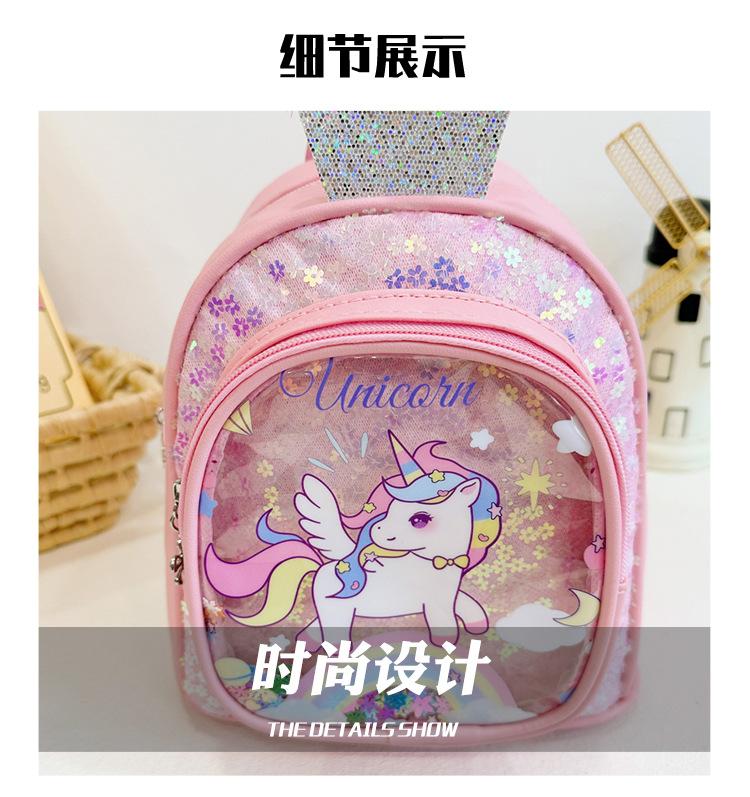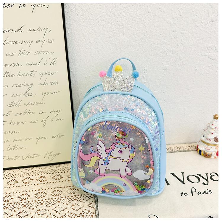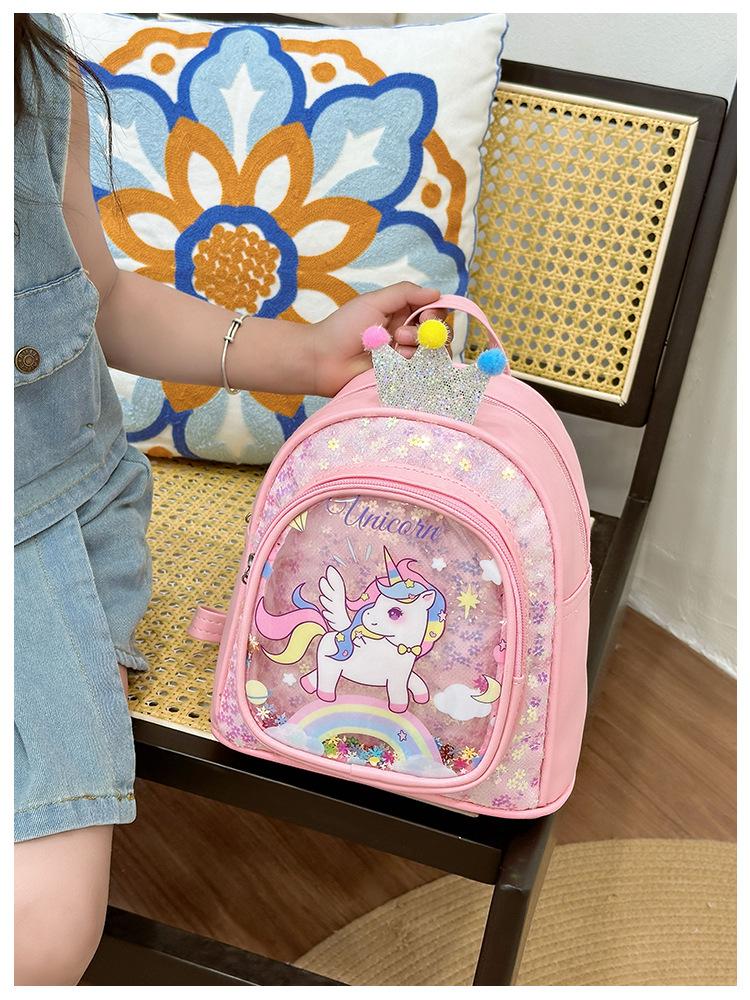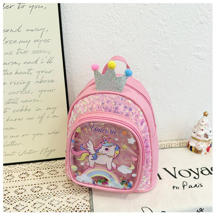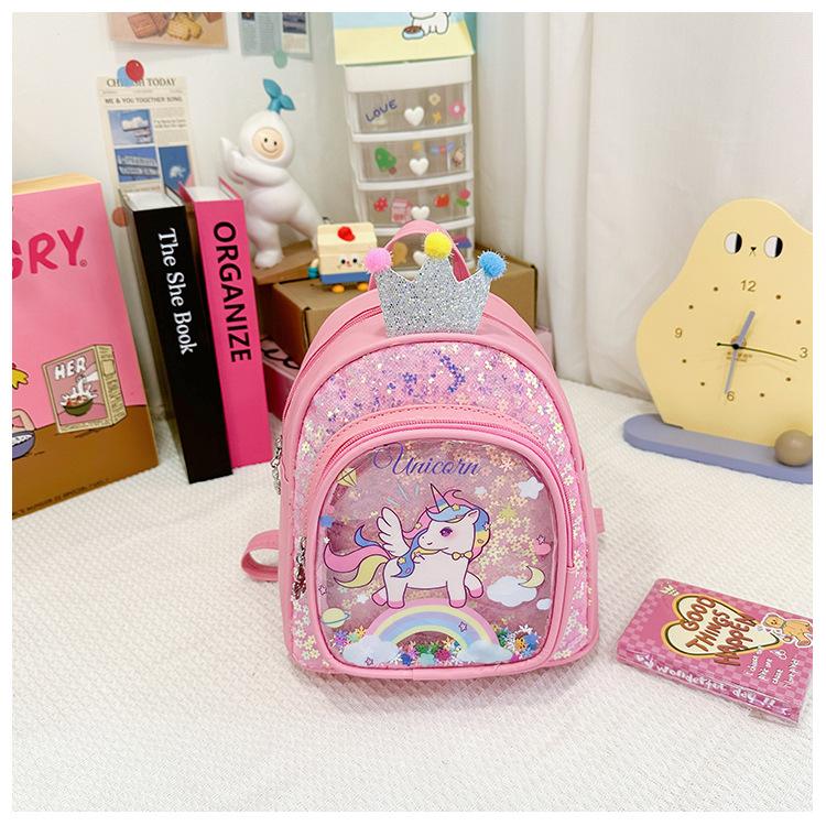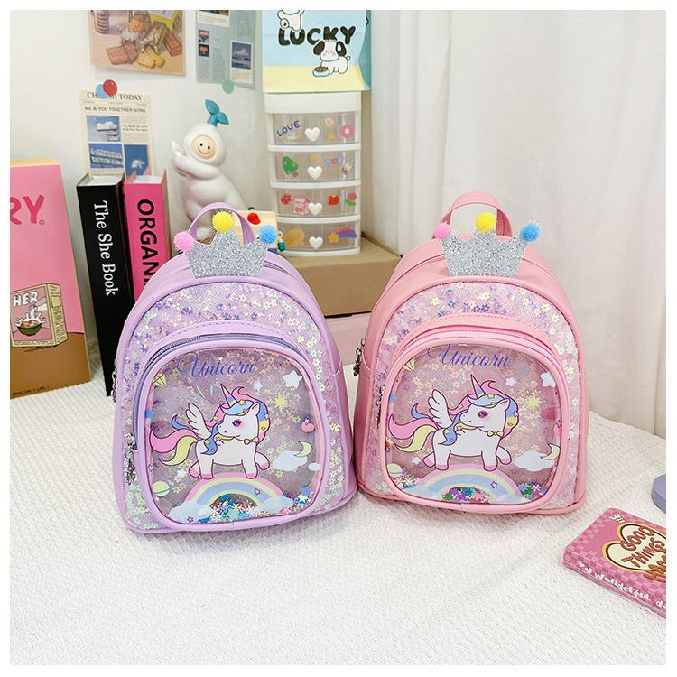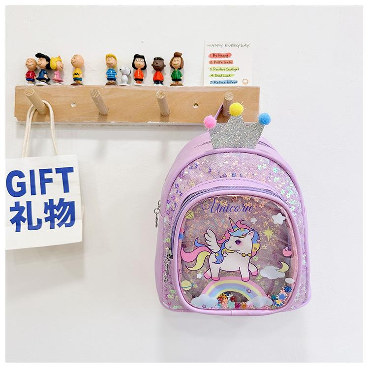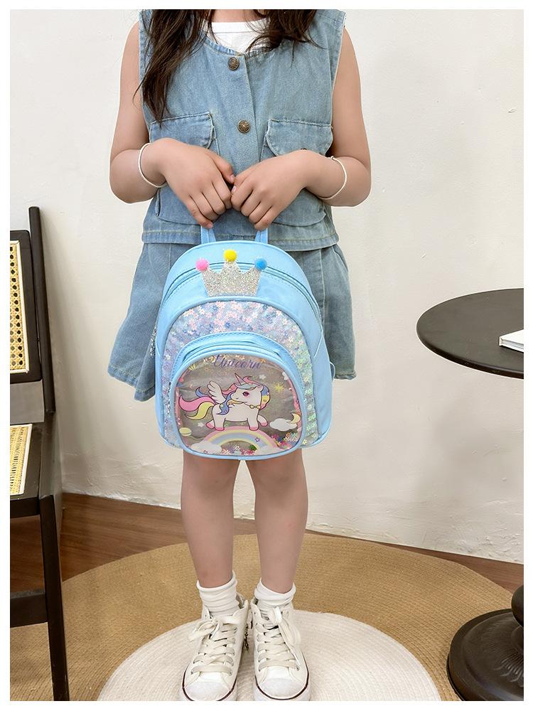Bonita mochila de poni arcoíris de dibujos animados, nueva, con lentejuelas y arenas movedizas, para niñas de jardín de infancia, suave y linda mochila.