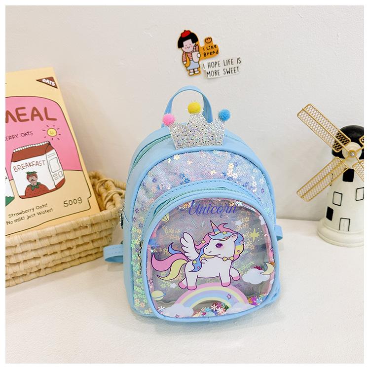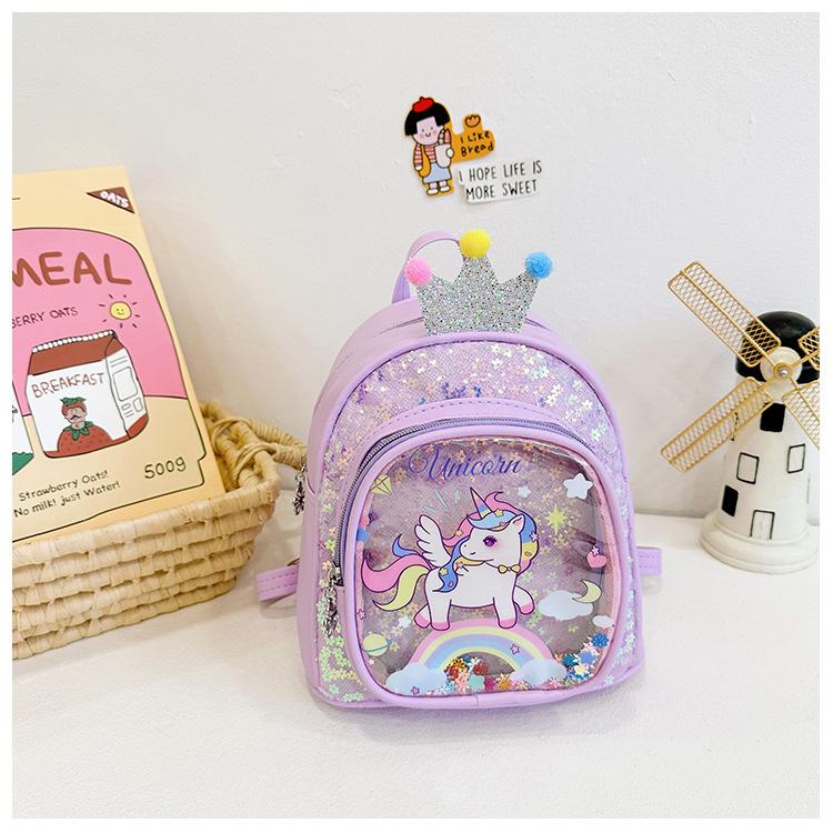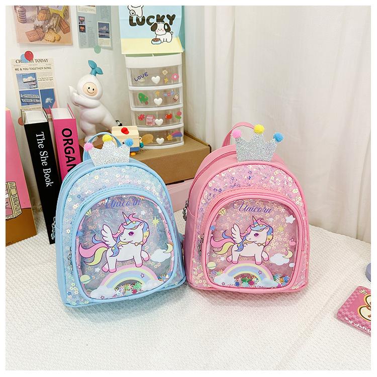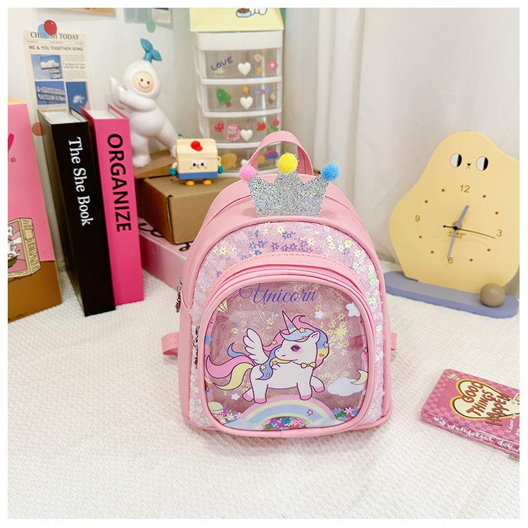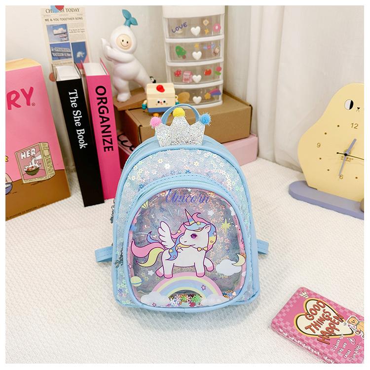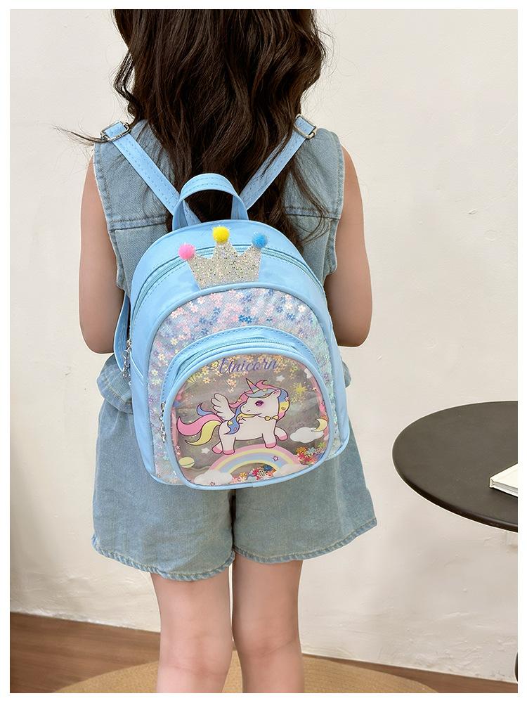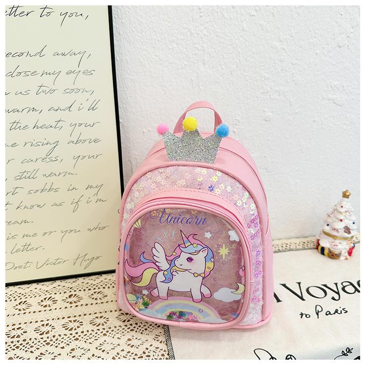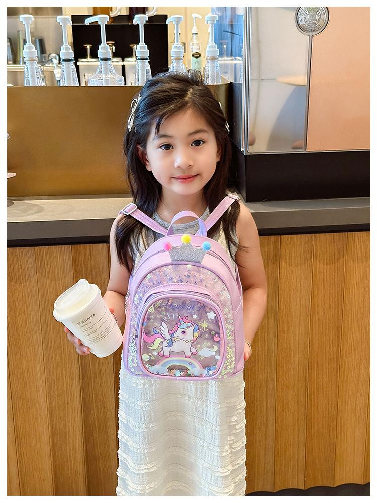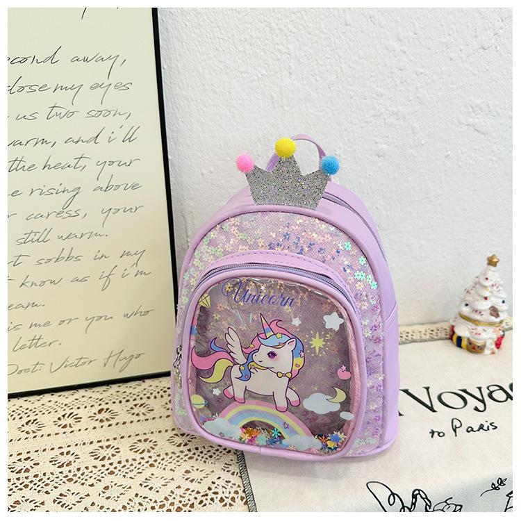 Bonita mochila de poni arcoíris de dibujos animados, nueva, con lentejuelas y arenas movedizas, para niñas de jardín de infancia, suave y linda mochila.