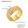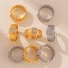 Anillo de Textura Tejida con Fila de Diamantes Incrustados Estilo Ins Europeo y Americano Diseño Retro de Moda Acero de Titanio Chapado en Oro Verdadero de 18K Joyería para Mujer