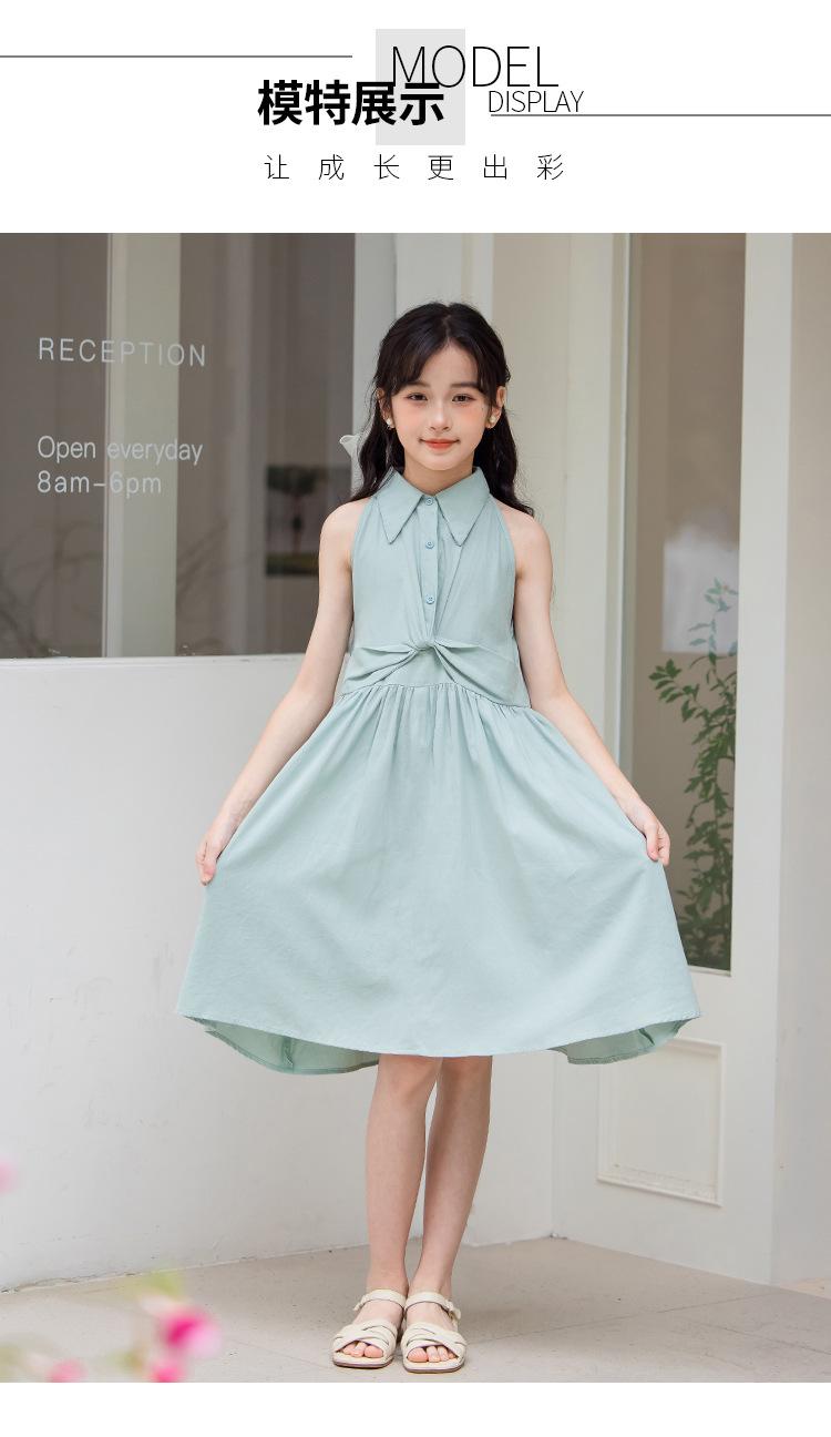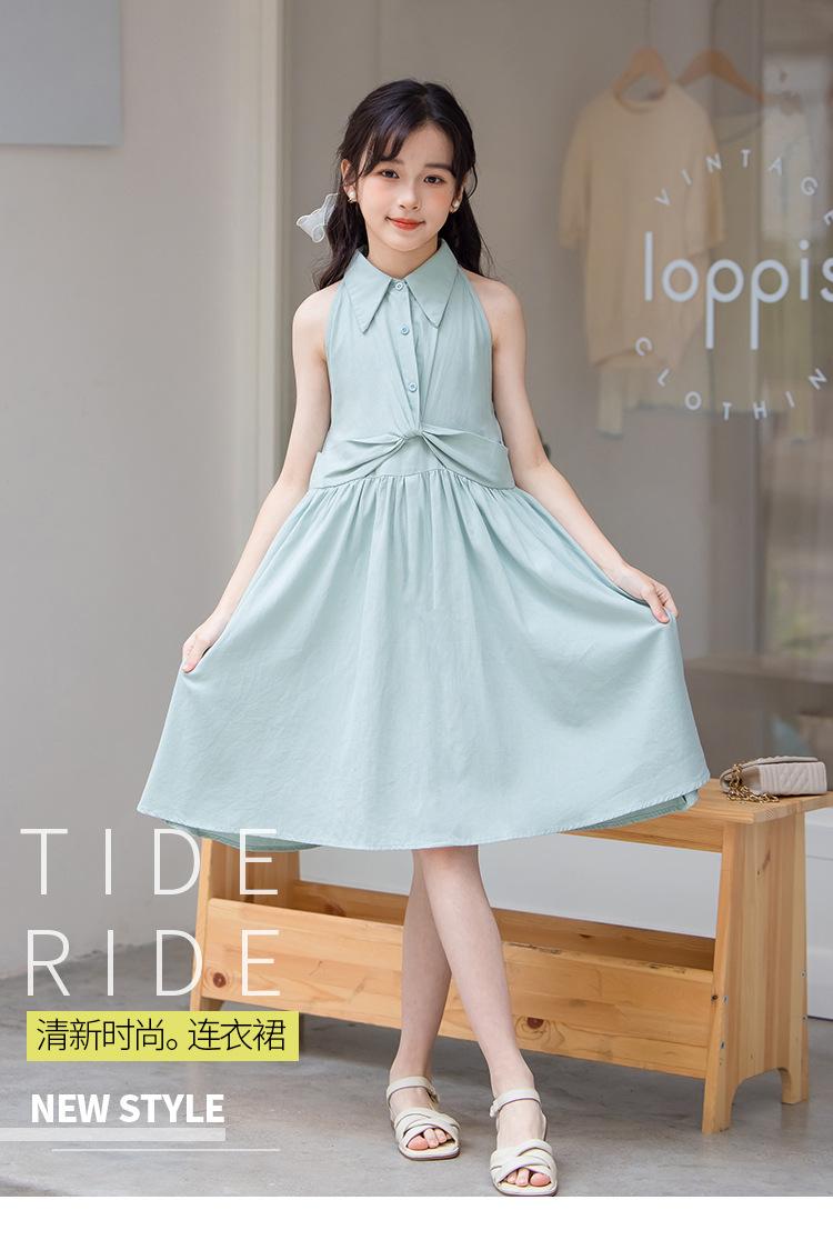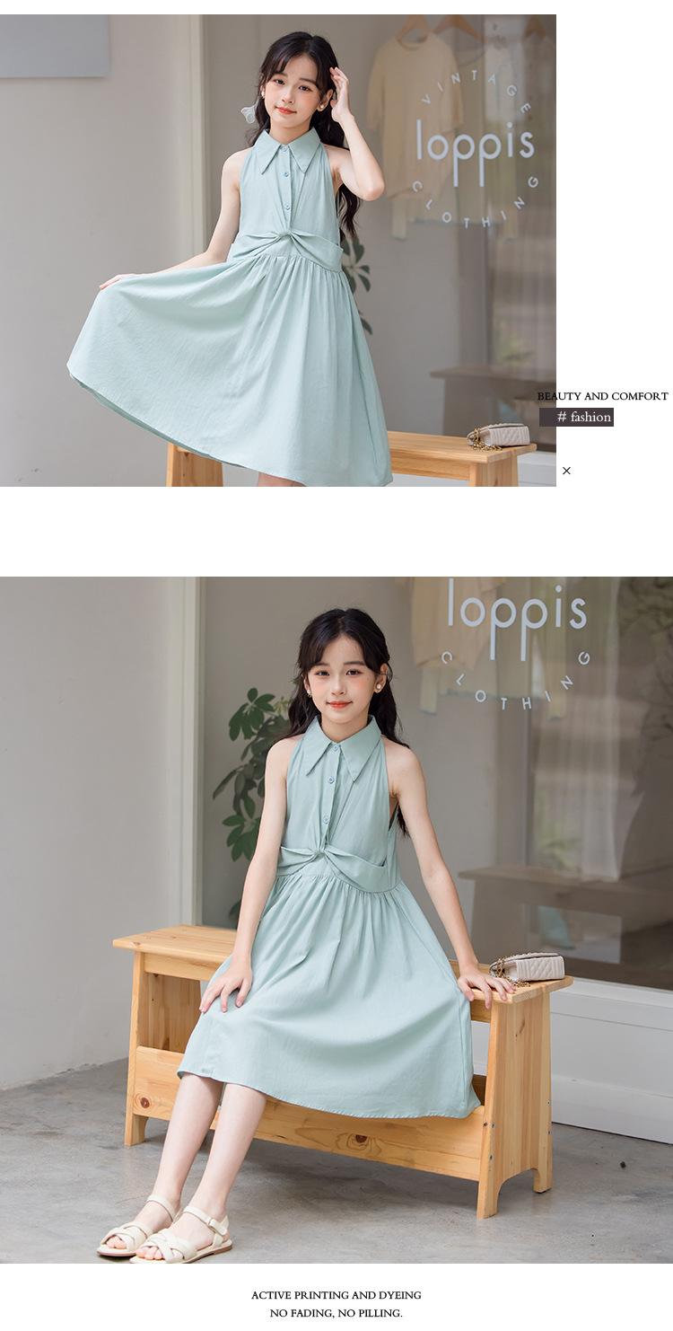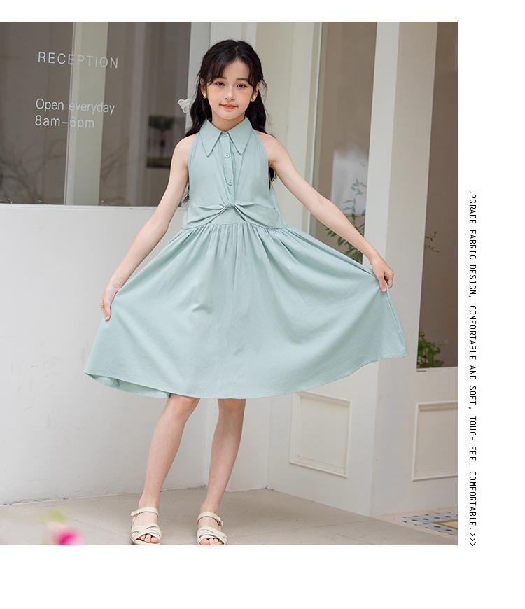 Vestido de Algodón para Niñas 2025 Verano Nueva Moda Coreana Verano Falda Pura Línea A Falda Linda de Color Sólido 8