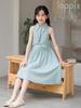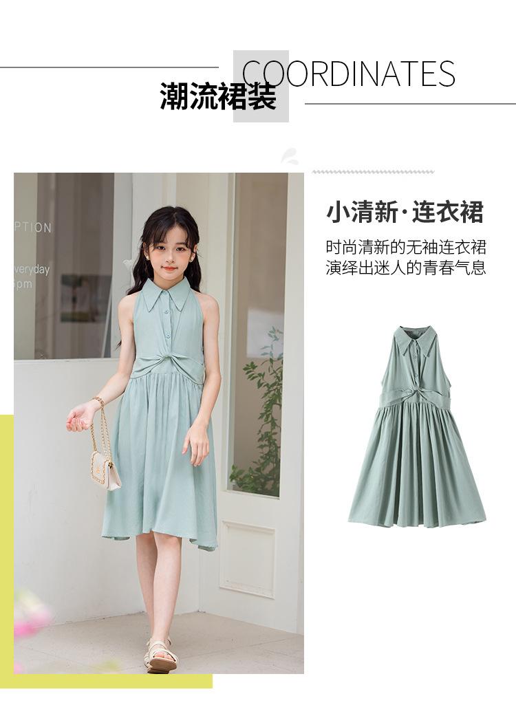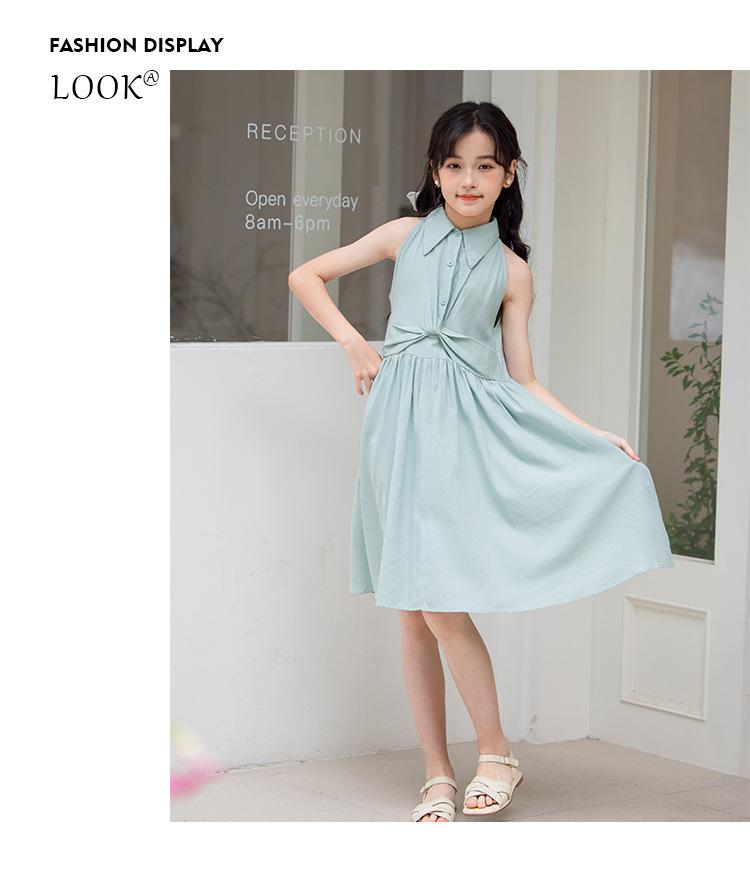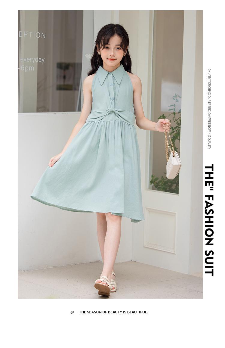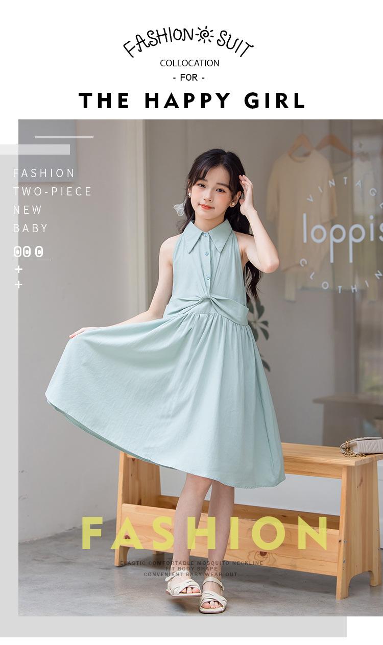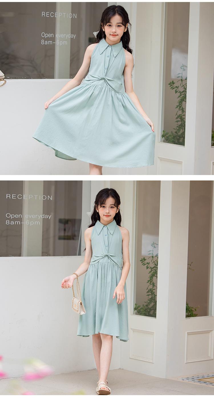 Vestido de Algodón para Niñas 2025 Verano Nueva Moda Coreana Verano Falda Pura Línea A Falda Linda de Color Sólido 8