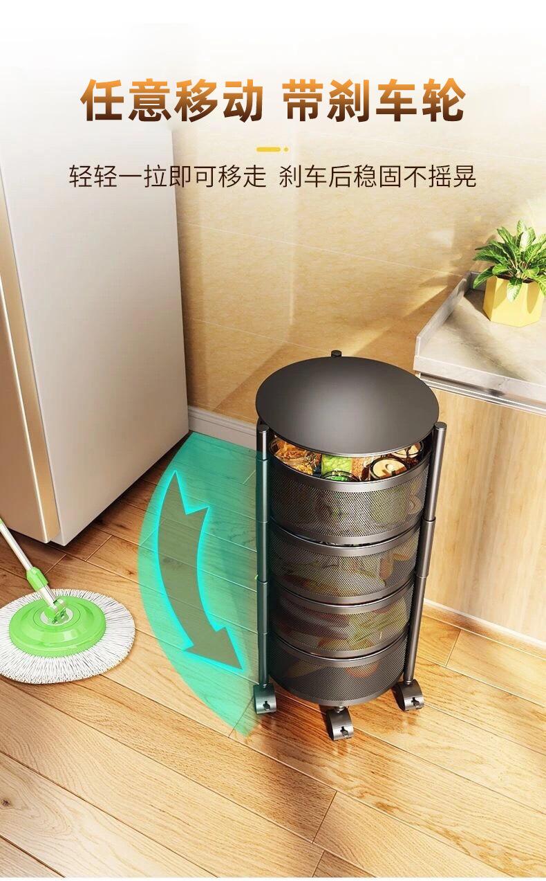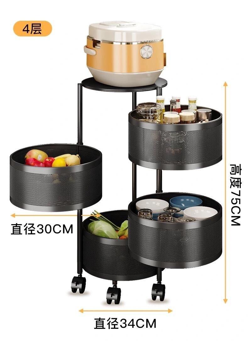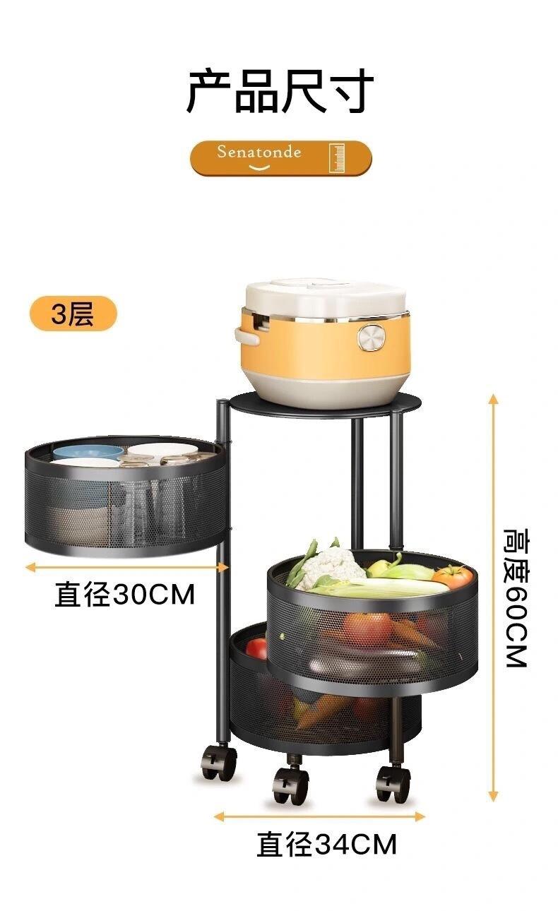 Estante de almacenamiento de verduras de cocina, cesta redonda giratoria de múltiples capas para verduras, esquina de frutas, fregadero de drenaje con polea