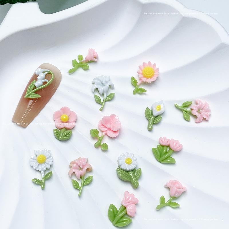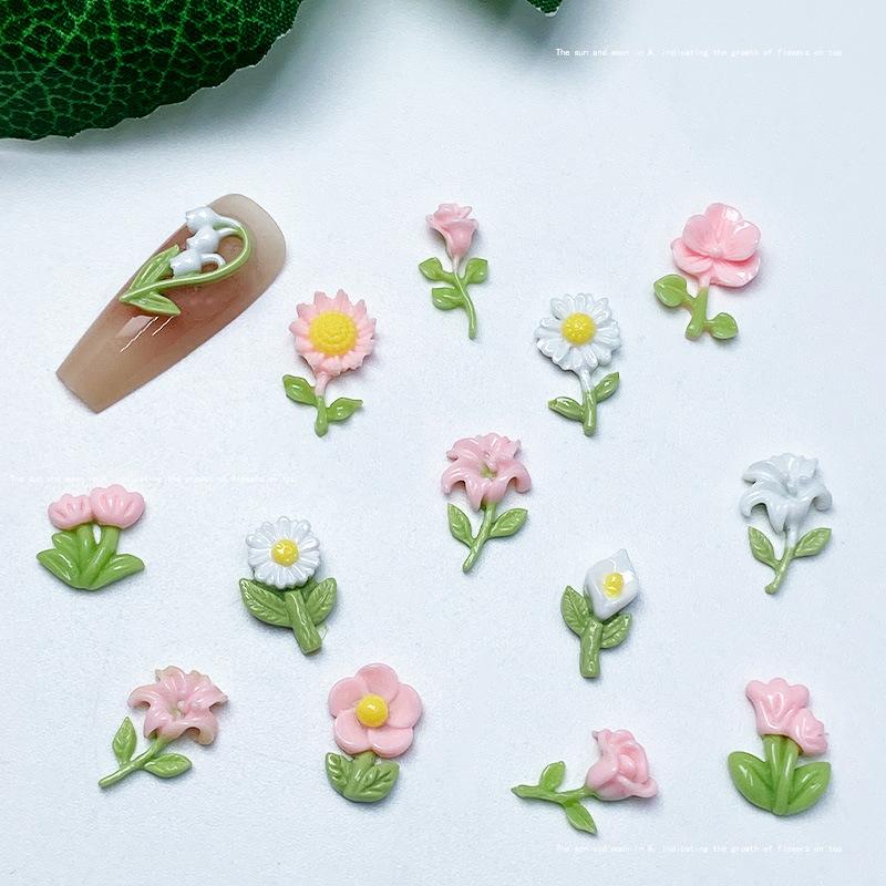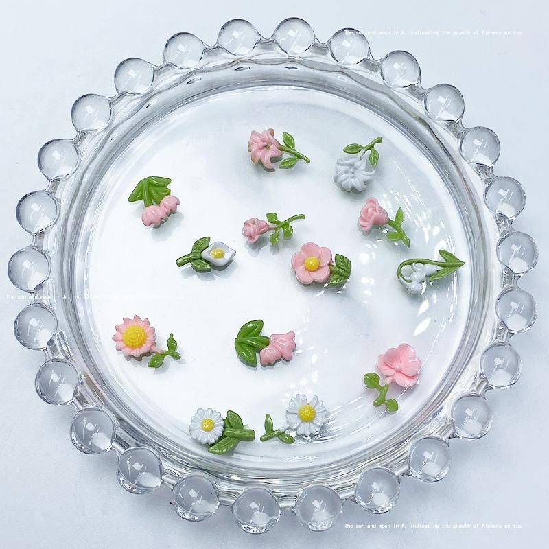 Librito Rojo Rosa Blanco Flor Arte de Uñas Joyería Pequeña Luminosa Joyería Arte de Uñas Mixta DIY Hecha a Mano Bolsa de Material para Arte de Uñas