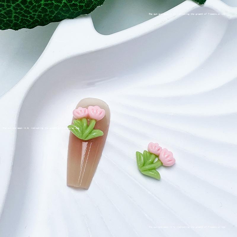 01 Pink Sunflower, 02 Pink Lilies, 03 pink double-headed tulip (two leaves), 04 Pink Double-headed Tulip (Thre...