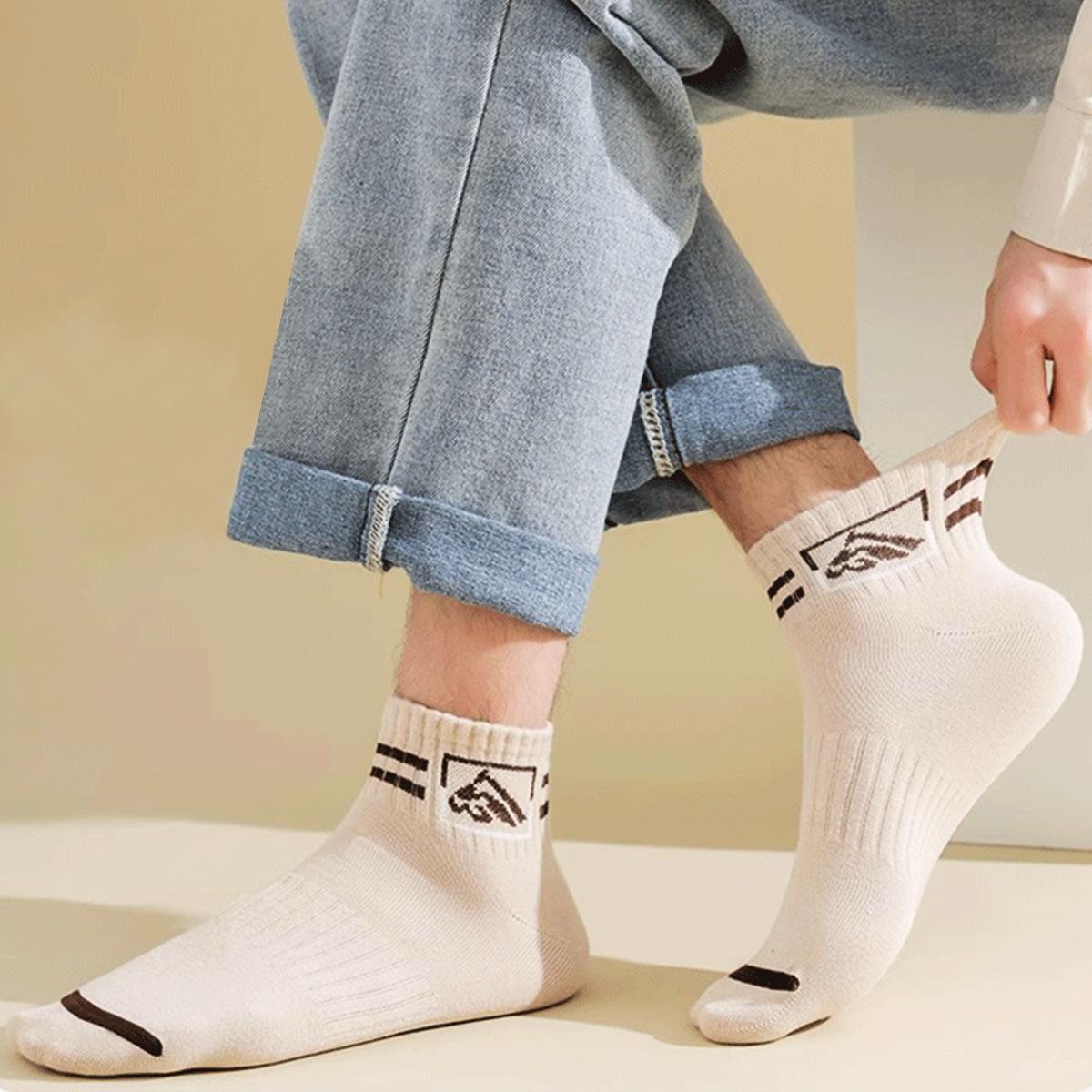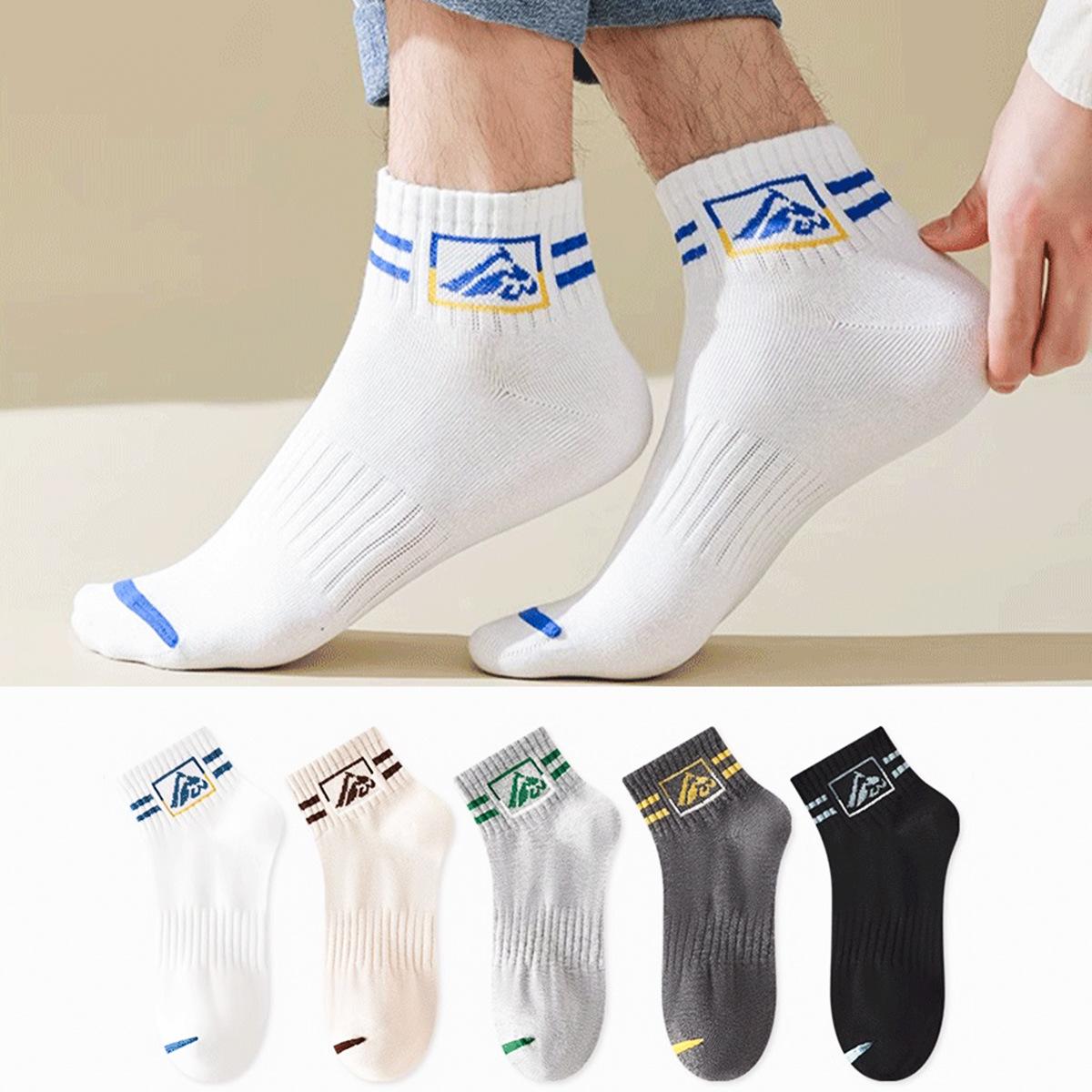 Calcetines Zhuji para hombre, calcetines deportivos de verano en blanco y negro para hombre, calcetines transpirables absorbentes de sudor para primavera y otoño, calcetines de moda para hombre hasta media pantorrilla