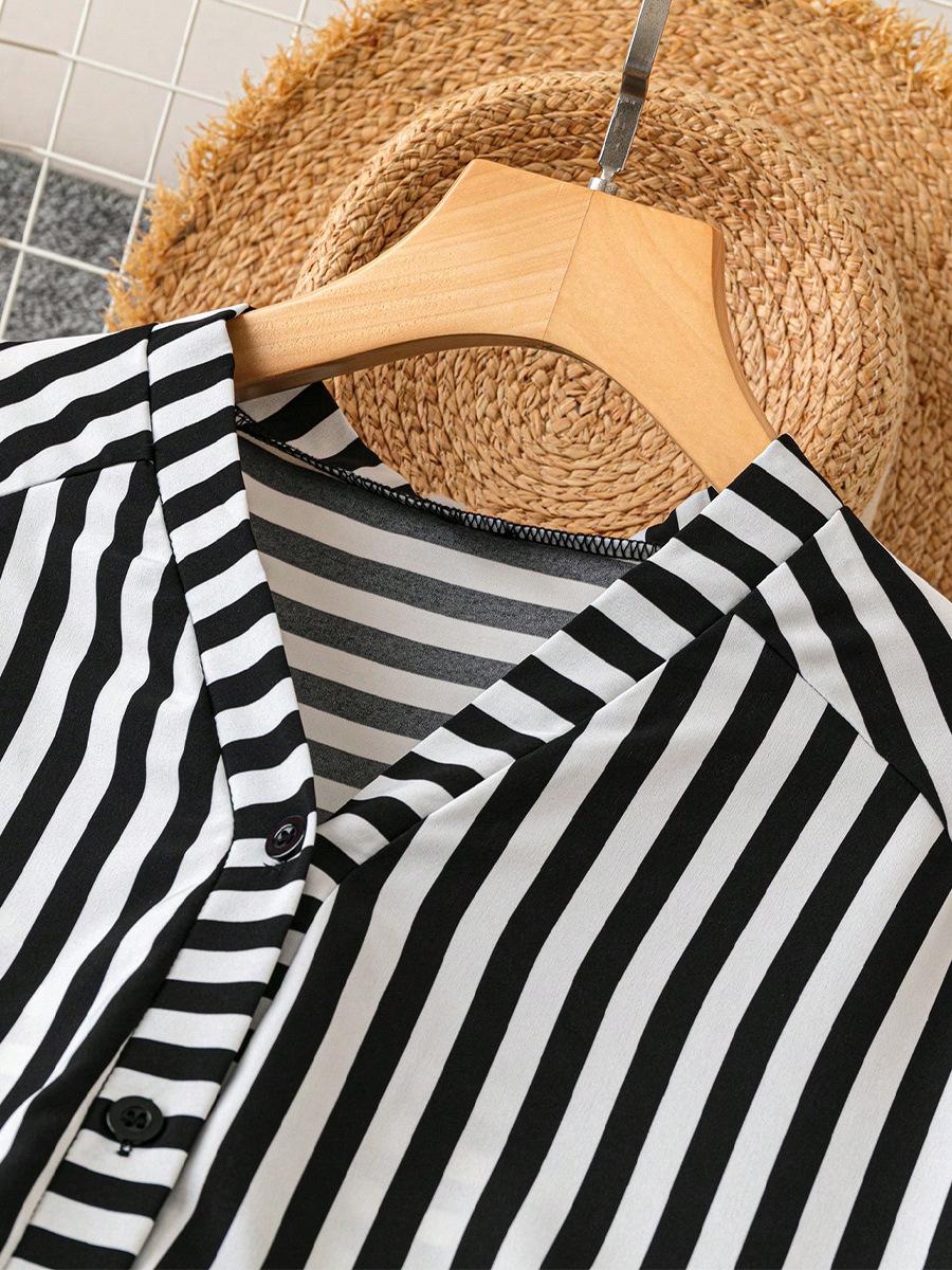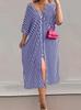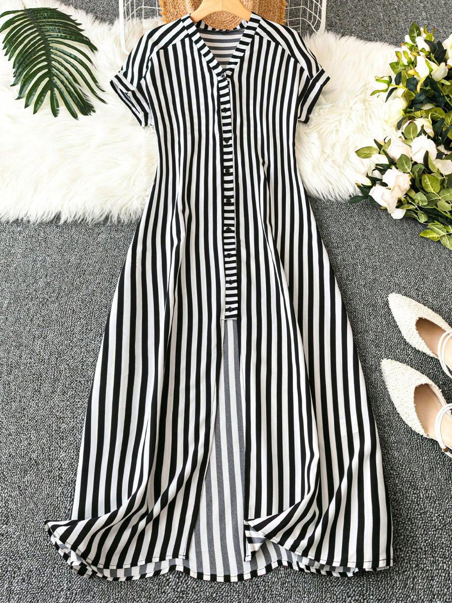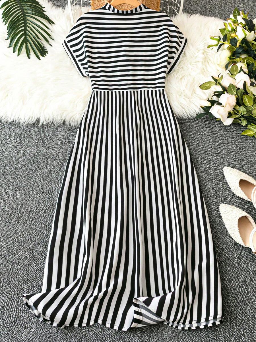 Amazon TEMU Estación Independiente Moda Rayas Divididas Suelto Casual Vestido de Manga Corta