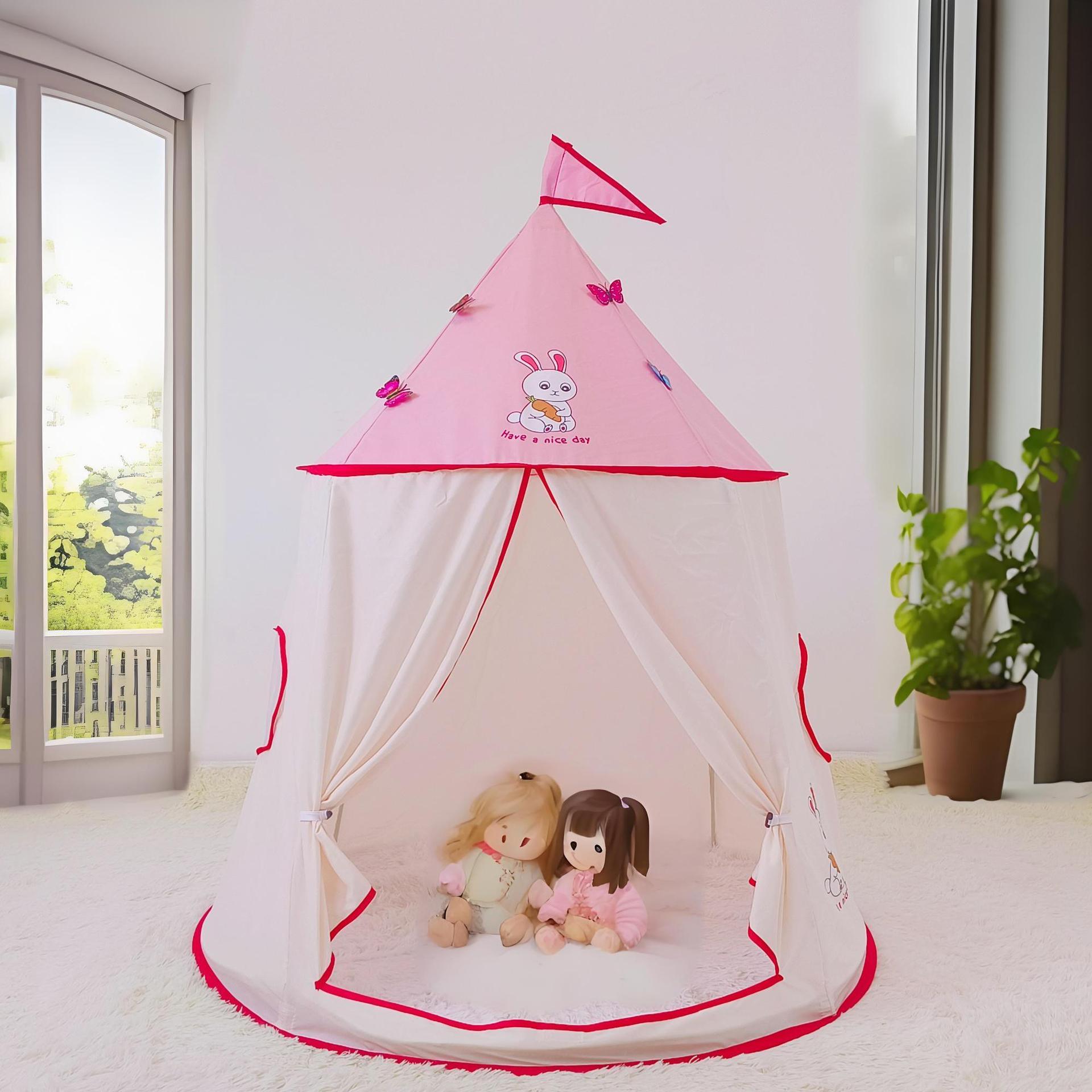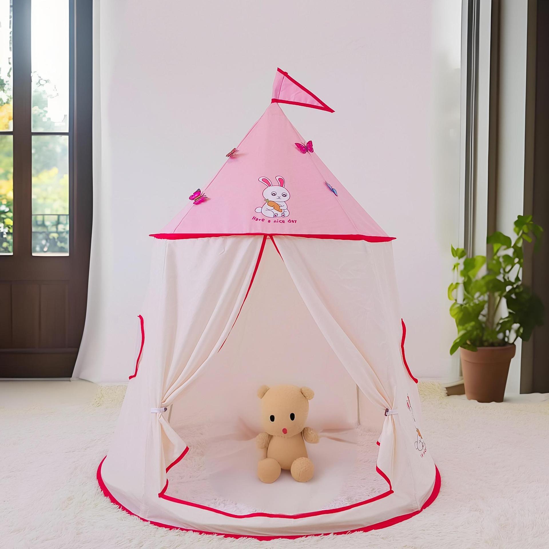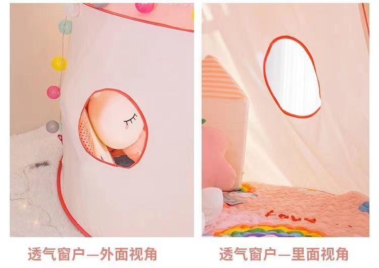 Pink Rabbit Tent No Decoration (Free Star Light), Cute bear tent + cotton plush mat + cotton ball lamp (comes ...