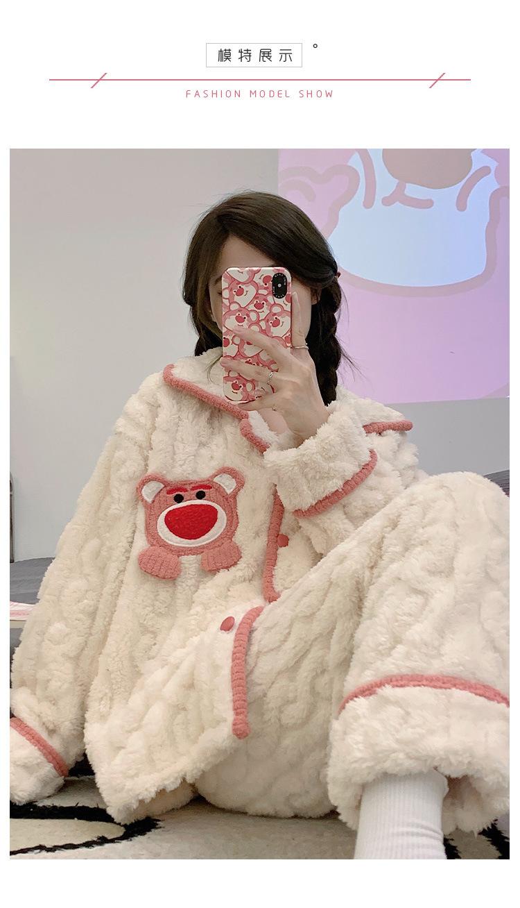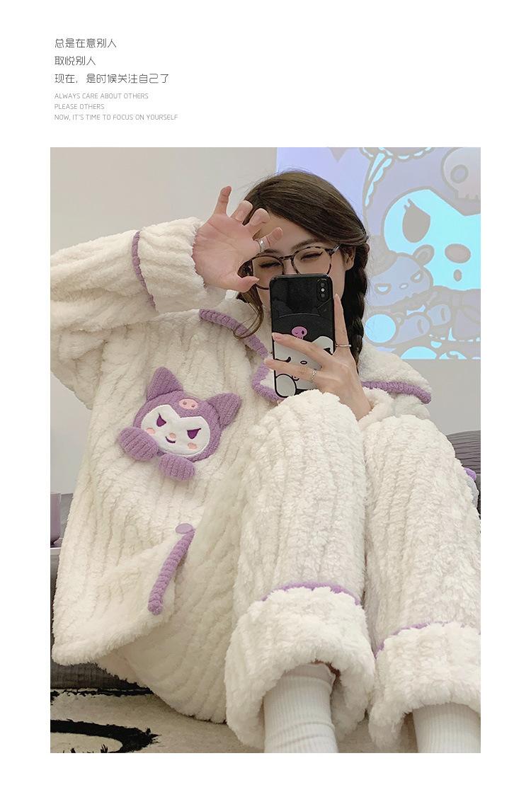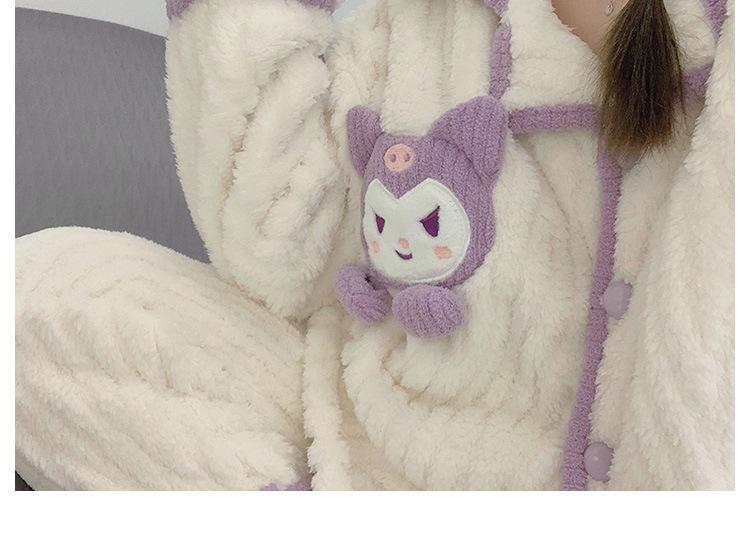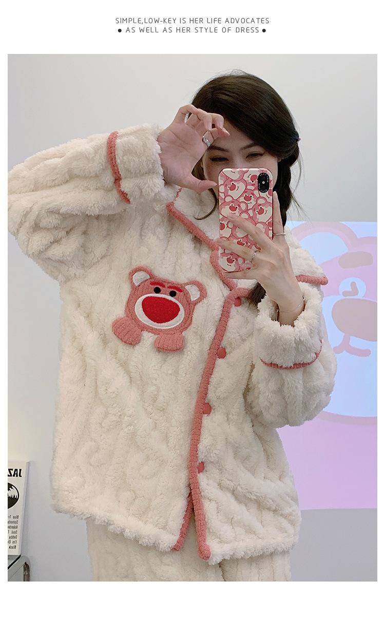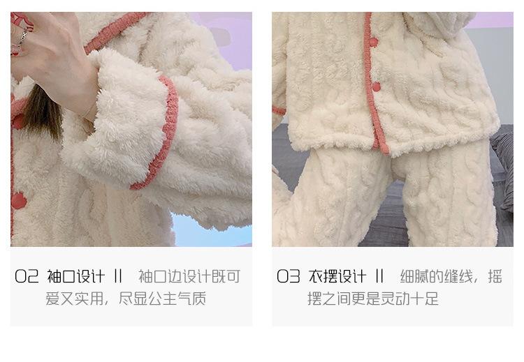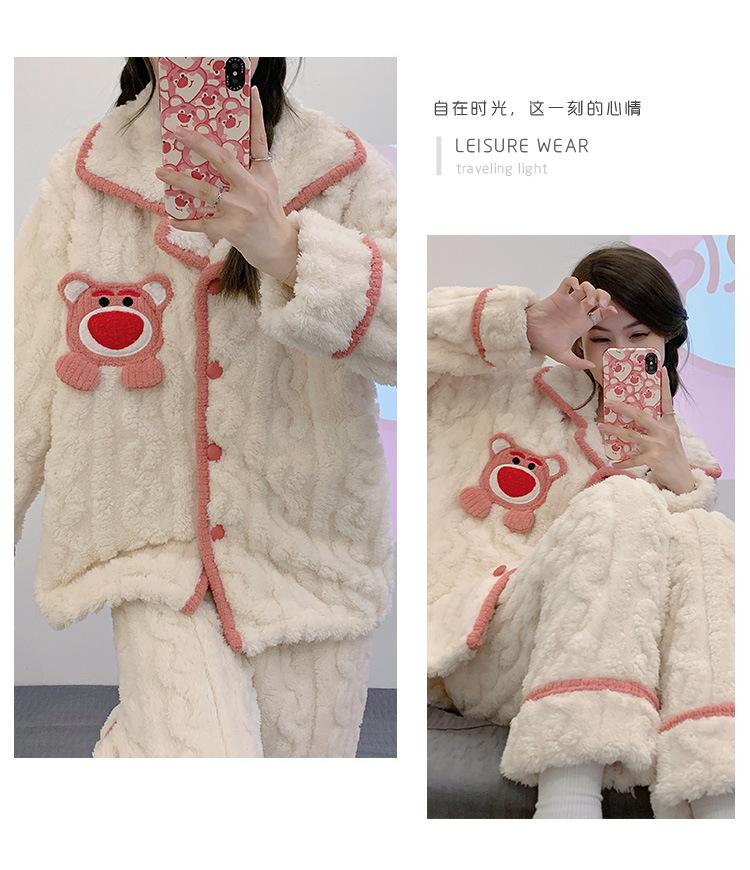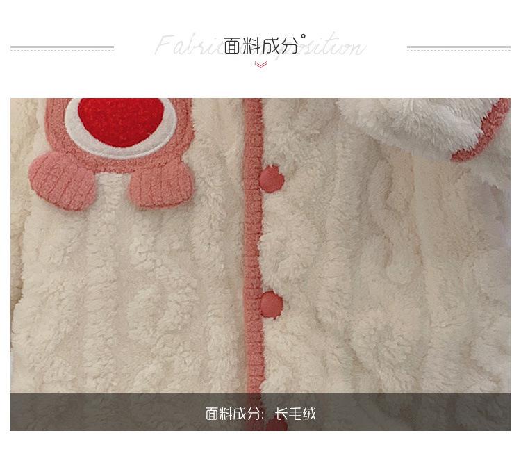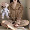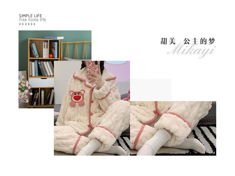 Pijama de lana coral para mujer, cárdigan grueso de invierno, pantalones de manga larga, traje de casa con forro polar de dibujos animados dulces, se puede usar al aire libre