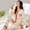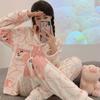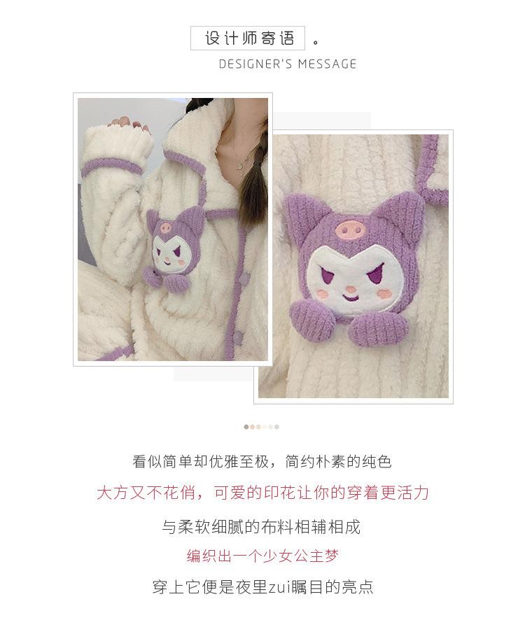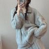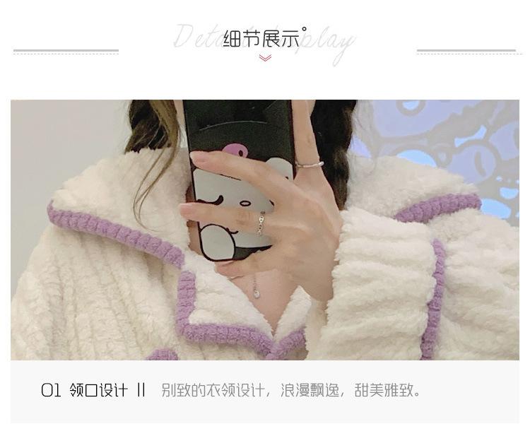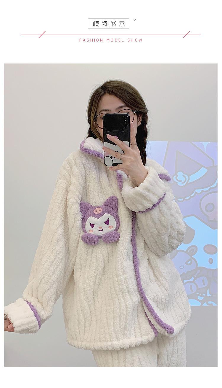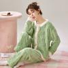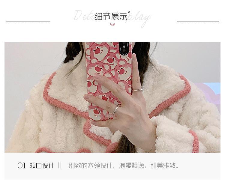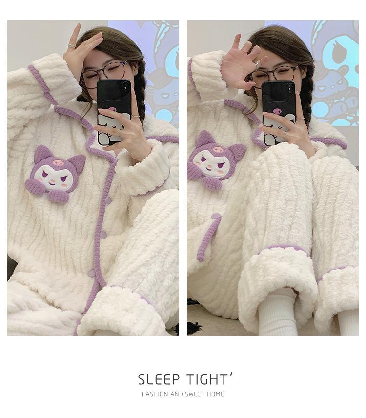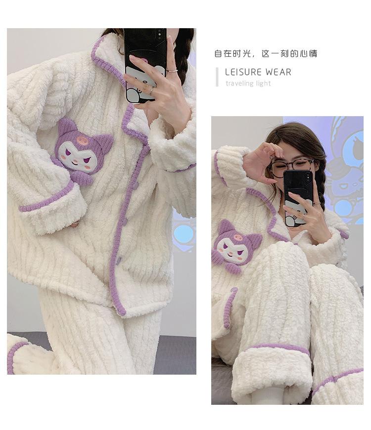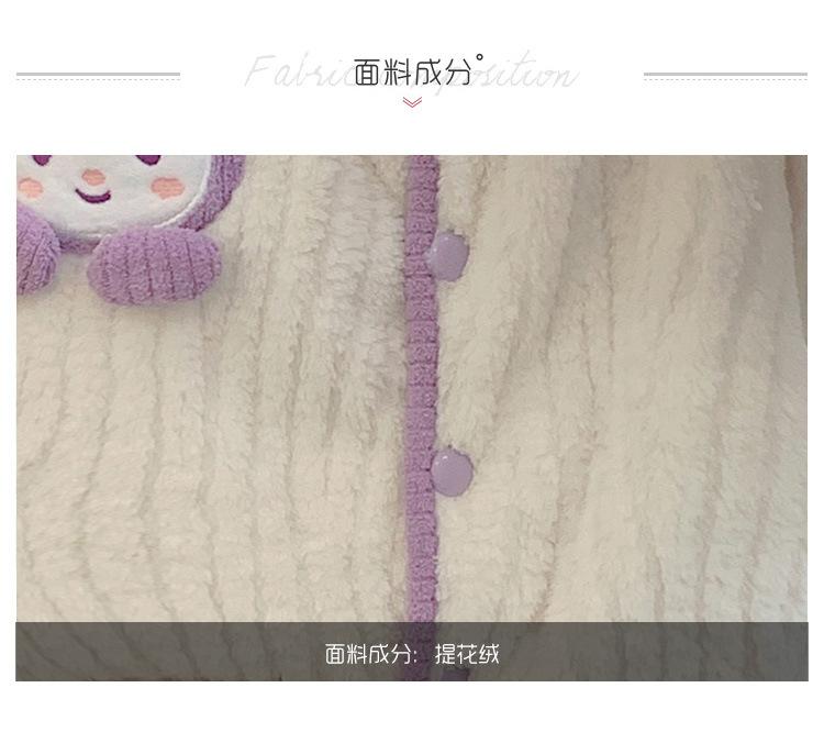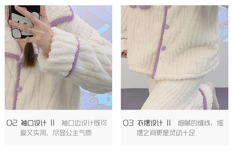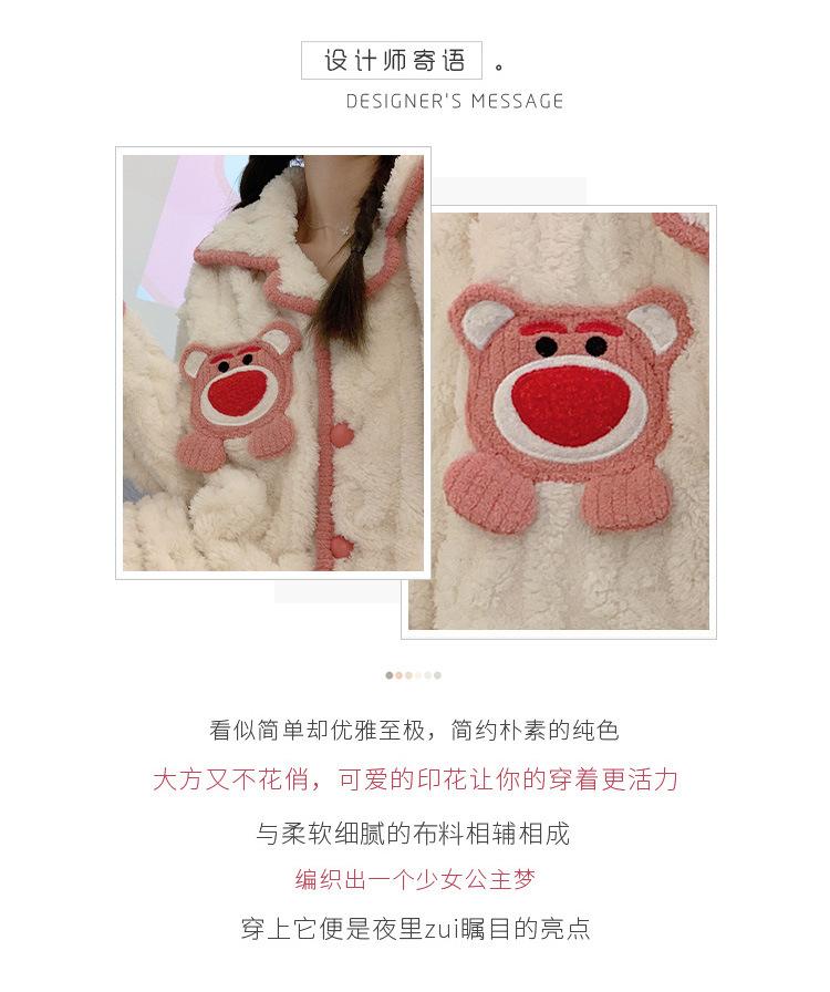 Pijama de lana coral para mujer, cárdigan grueso de invierno, pantalones de manga larga, traje de casa con forro polar de dibujos animados dulces, se puede usar al aire libre
