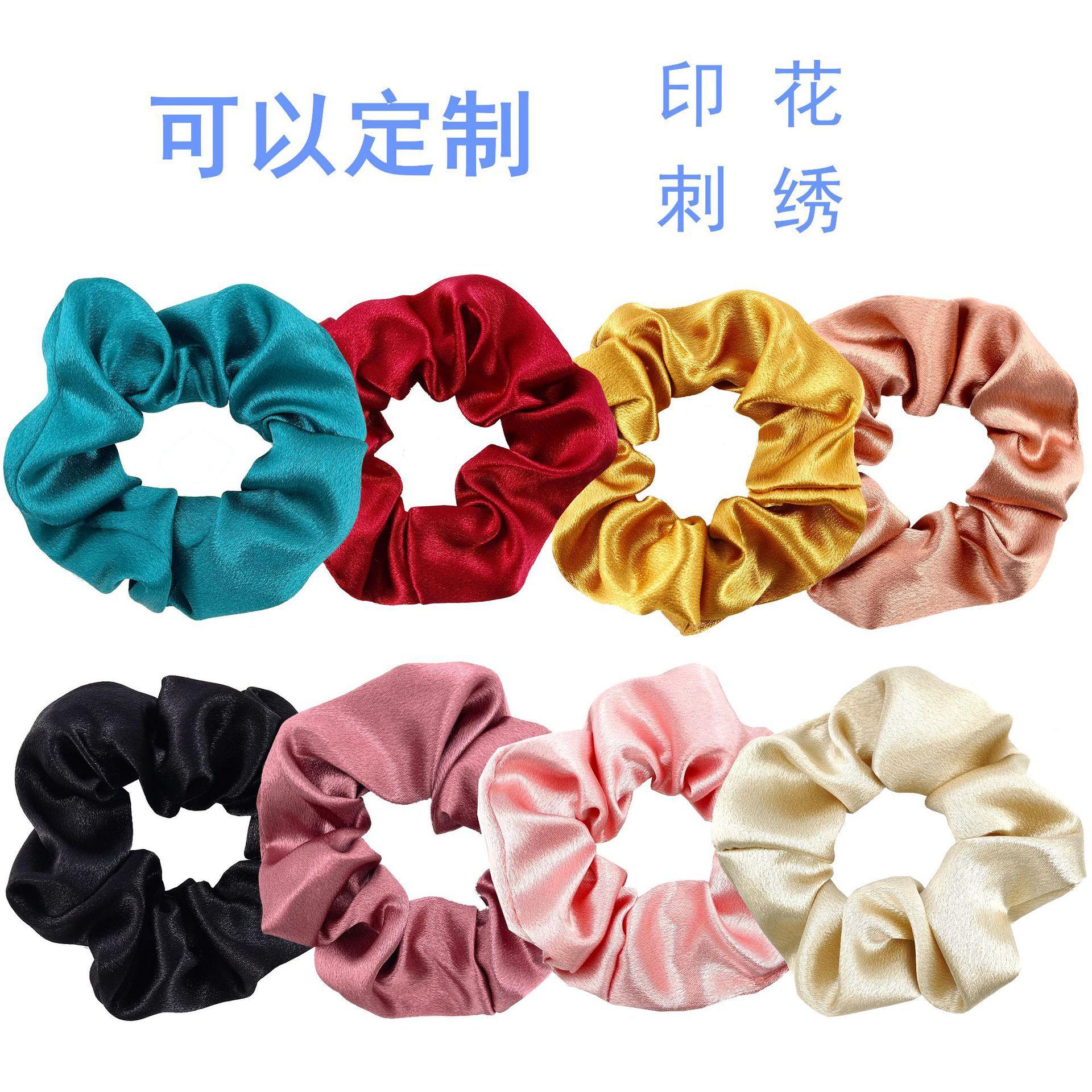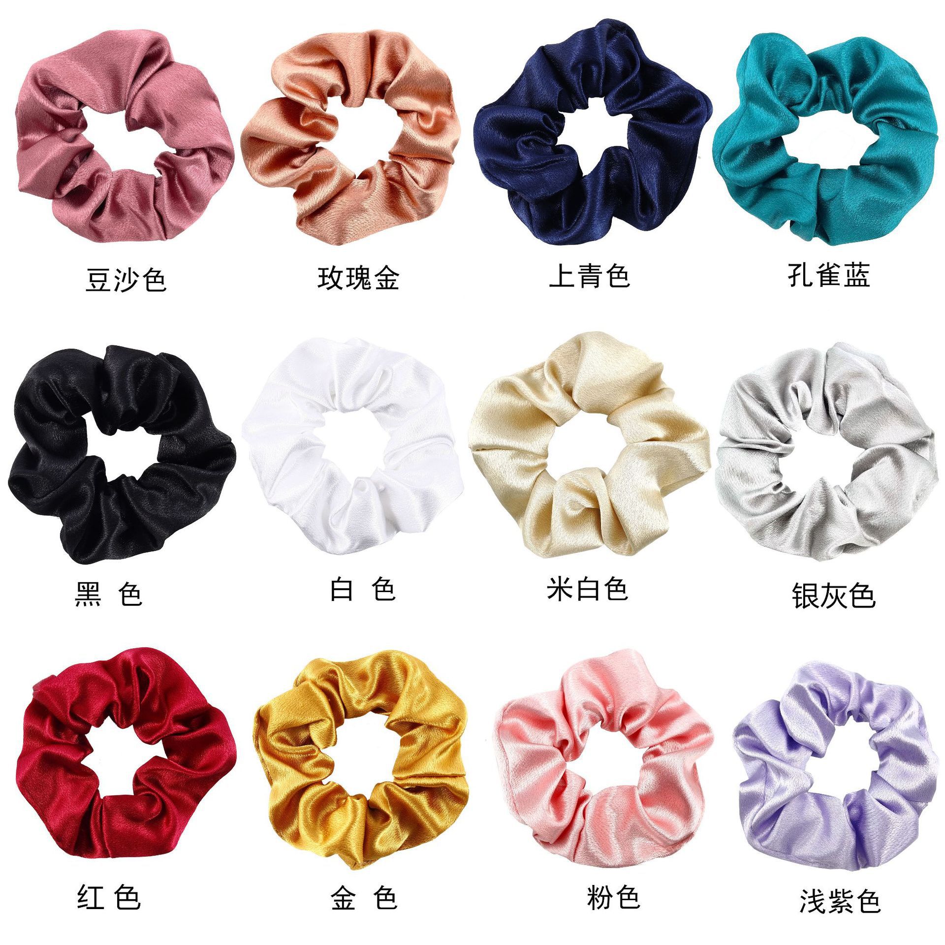 Anillo para el cabello de satén de cristal transfronterizo para intestino grueso, estilo europeo y americano, de color sólido, tejido simple, con forma de salchicha, banda de goma para el cabello, joyería disponible