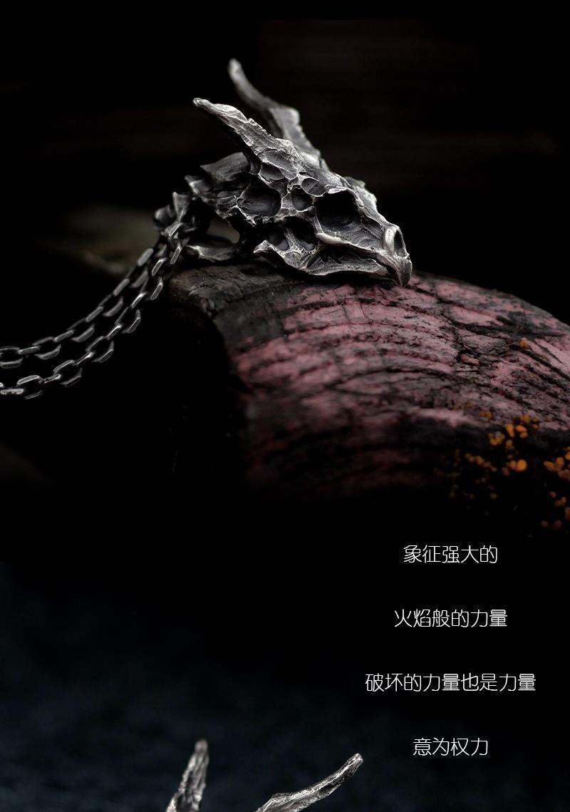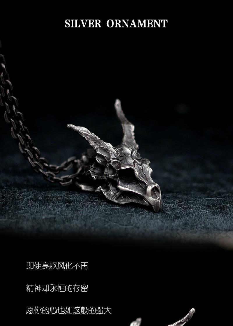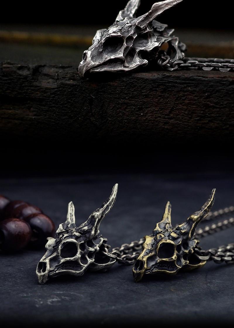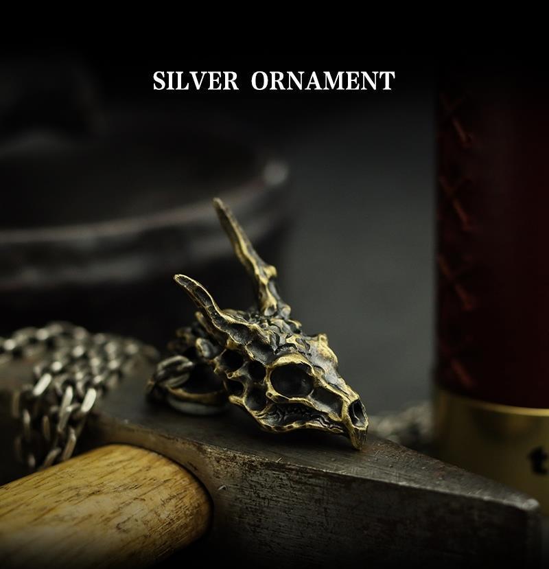 Compra Collar con colgante de calavera de hueso de dragón demonio de latón retro plateado de alta gama para el cumpleaños de tu novio. al por mayor en Joom.pro