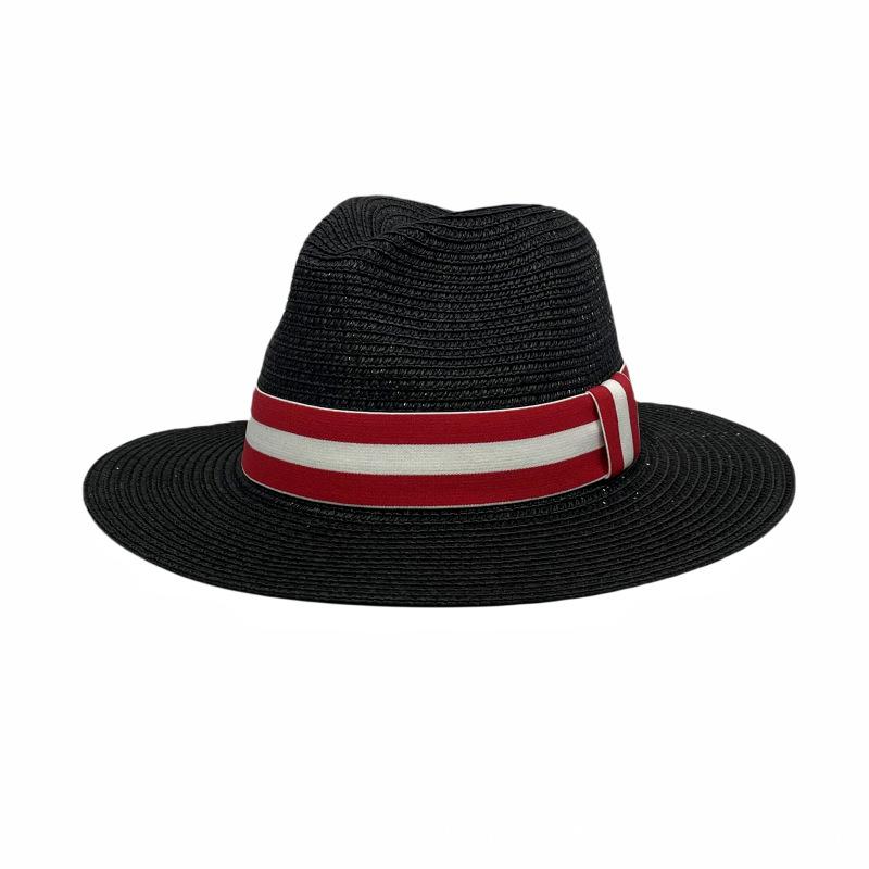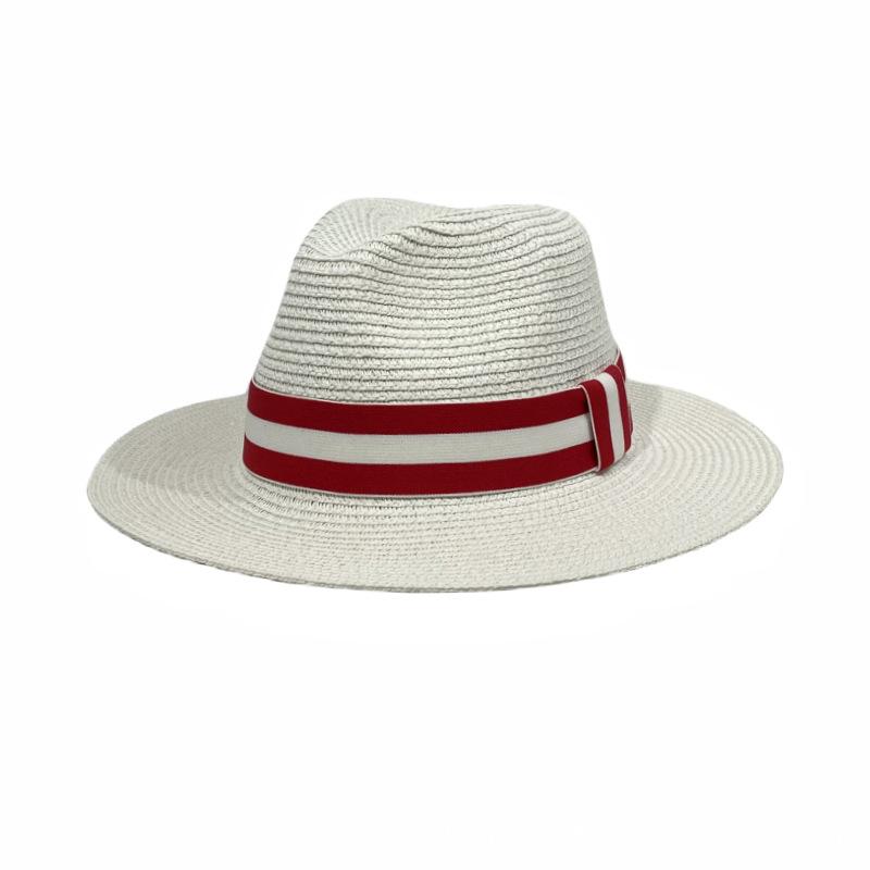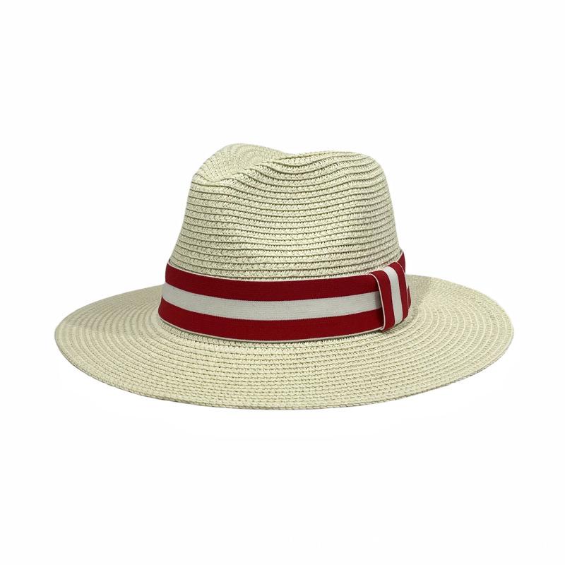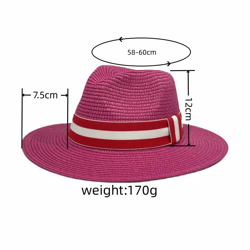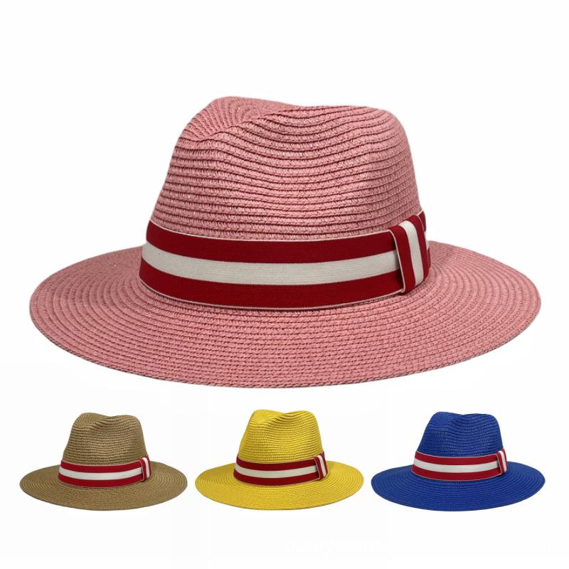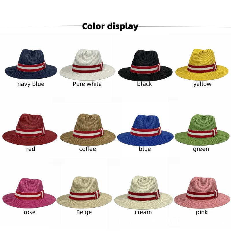 Sombrero Panamá con cinta de rayas rojas y blancas, nuevo y transfronterizo, para protección solar, informal, para hombre y mujer, sombrero de jazz