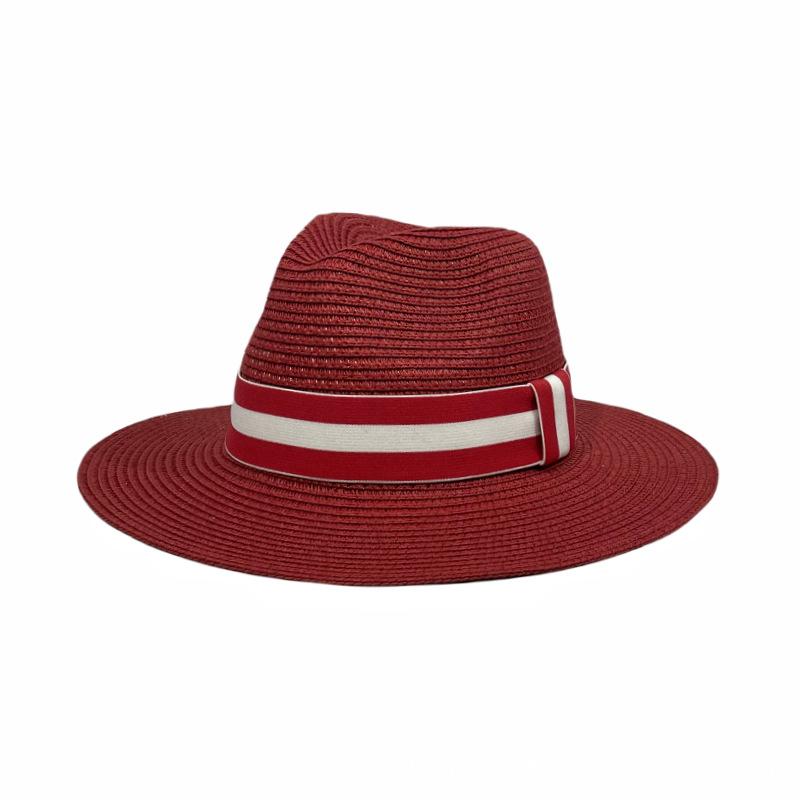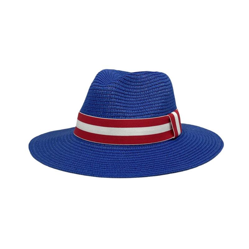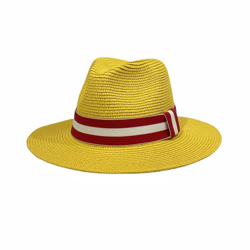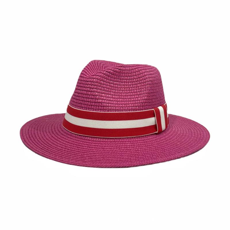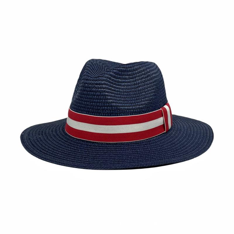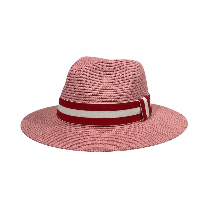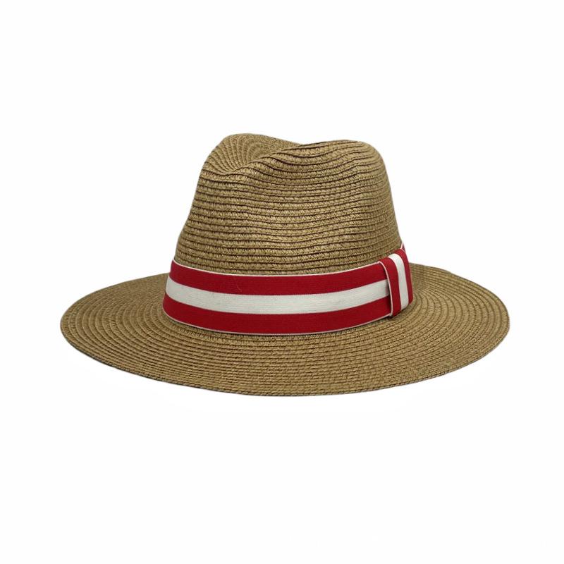 Sombrero Panamá con cinta de rayas rojas y blancas, nuevo y transfronterizo, para protección solar, informal, para hombre y mujer, sombrero de jazz