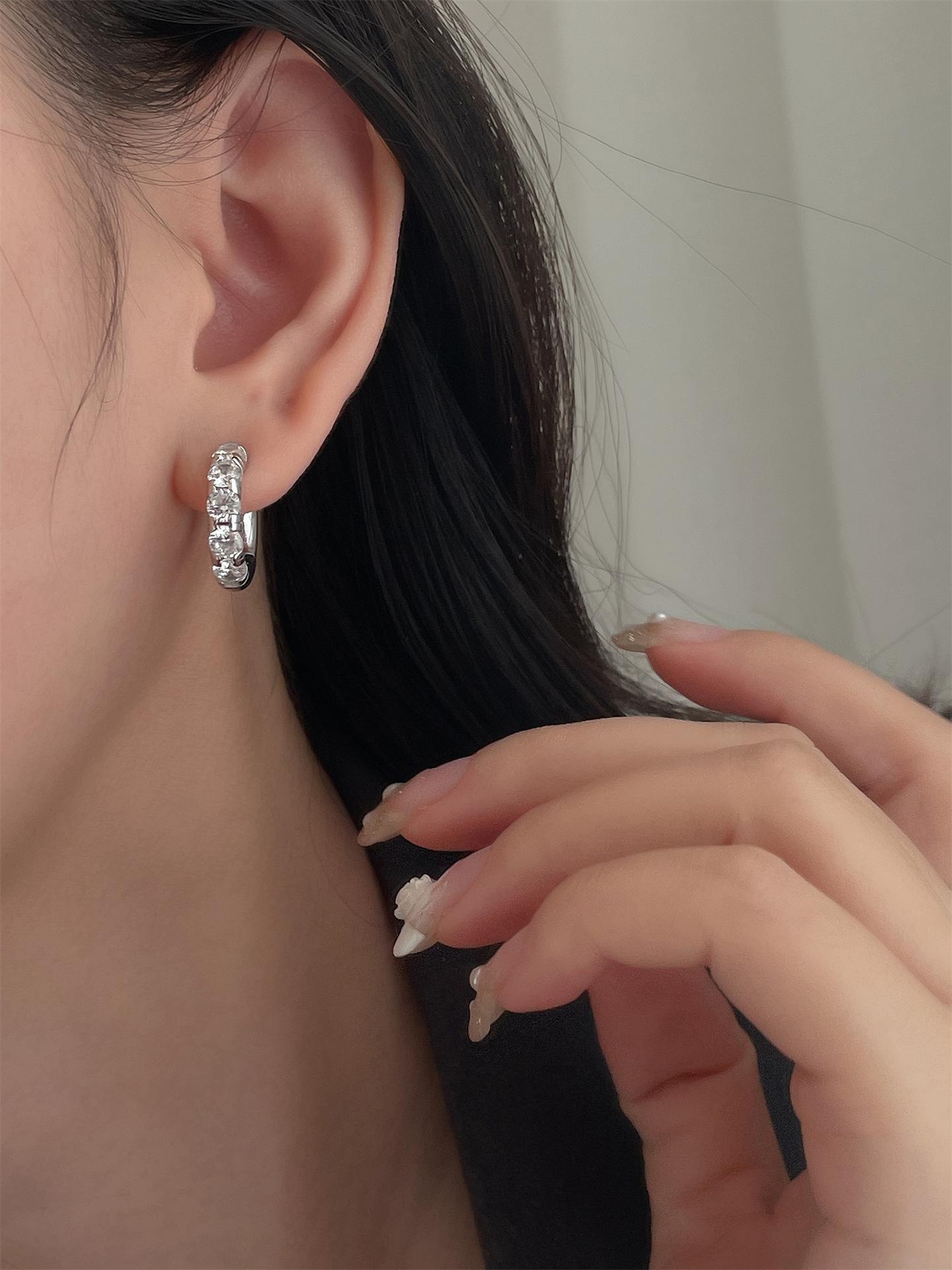 Pendientes de plata S925 con hebilla de oreja sencilla y diseño geométrico de diamantes de colores para mujer, elegantes, ligeros y de lujo, estilo nicho.