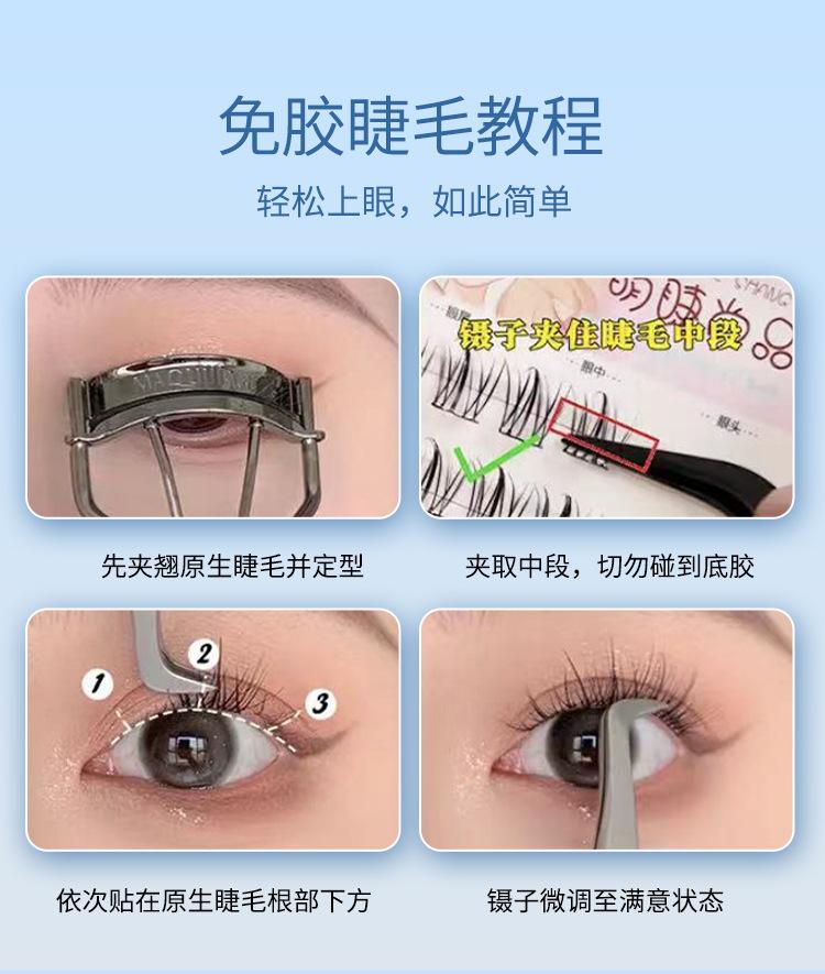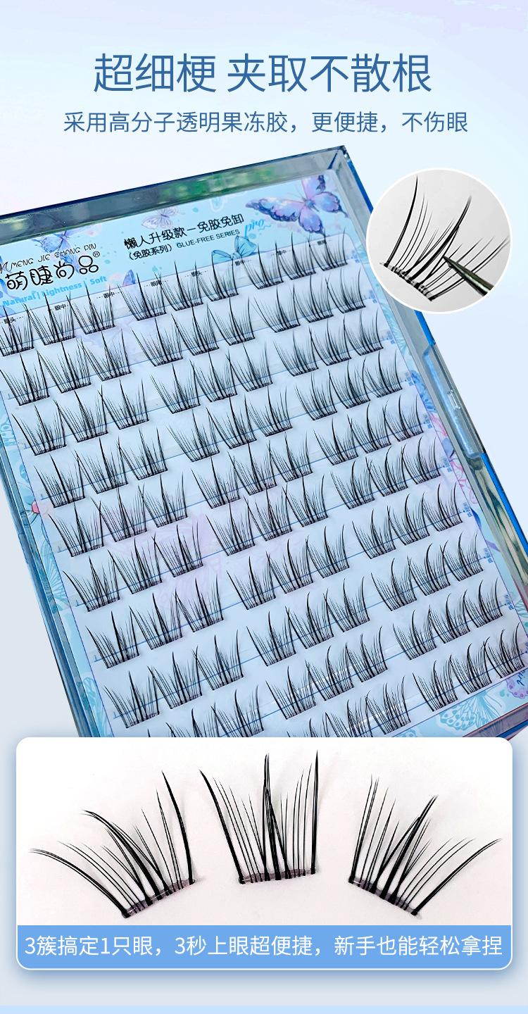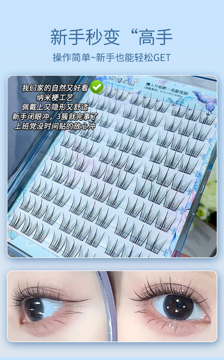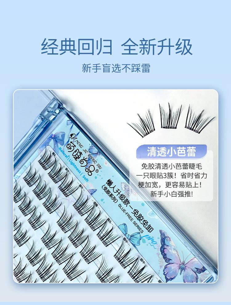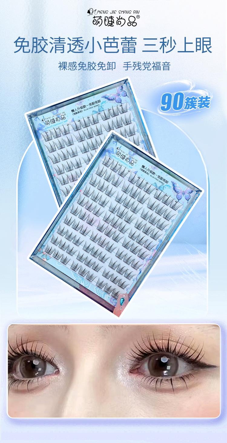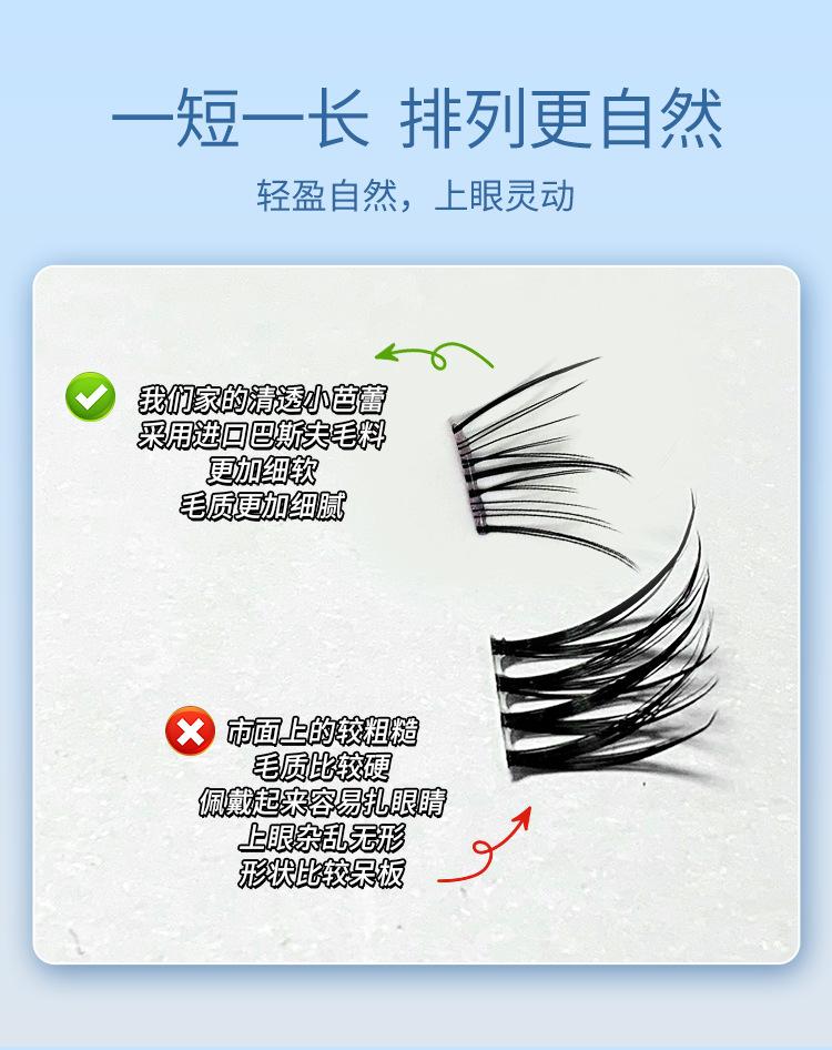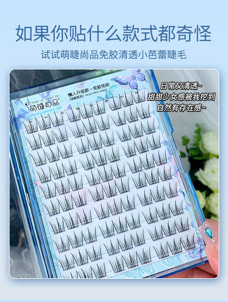 10 filas de pestañas postizas pequeñas de ballet transparentes autoadhesivas sin pegamento, naturales, de racimo individual segmentadas, para persona perezosa, fotogénicas, de caricatura