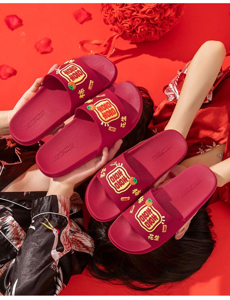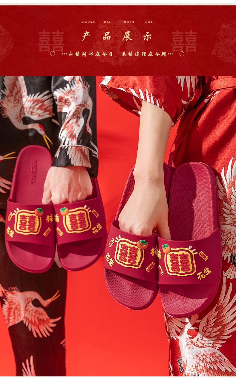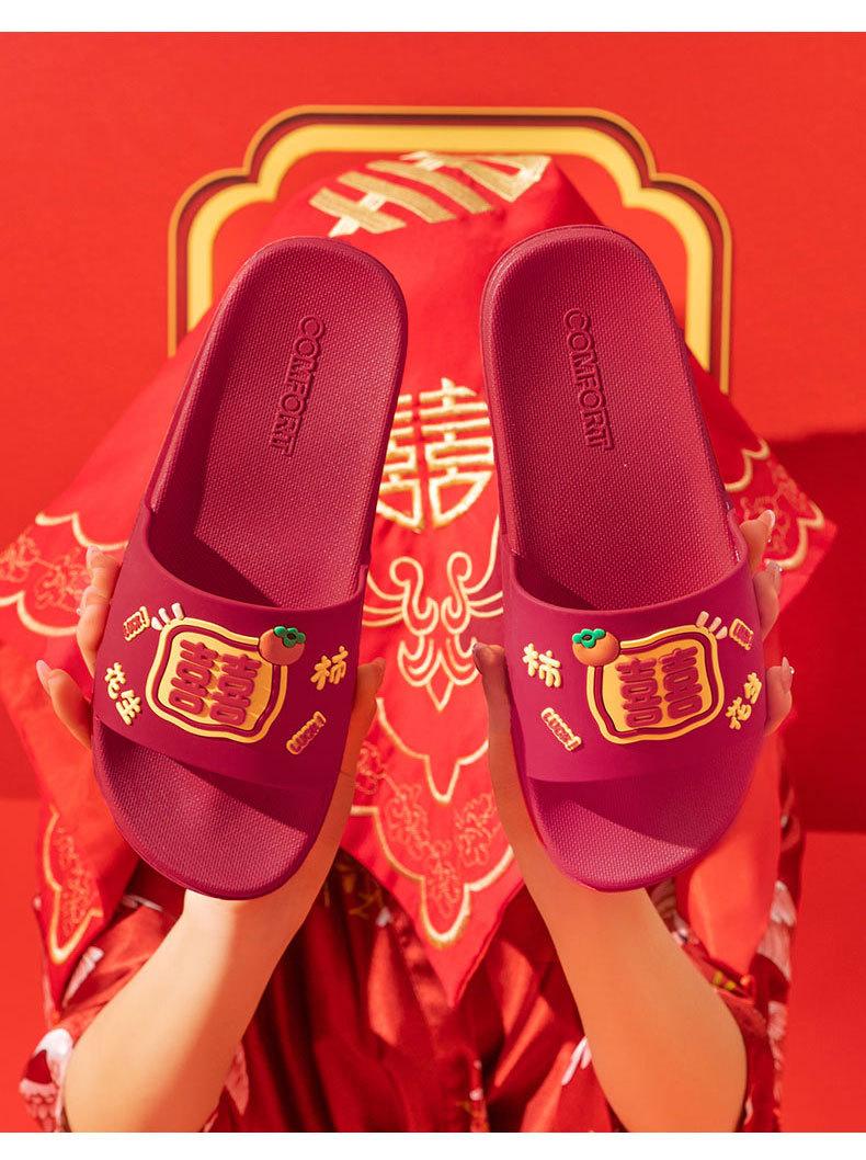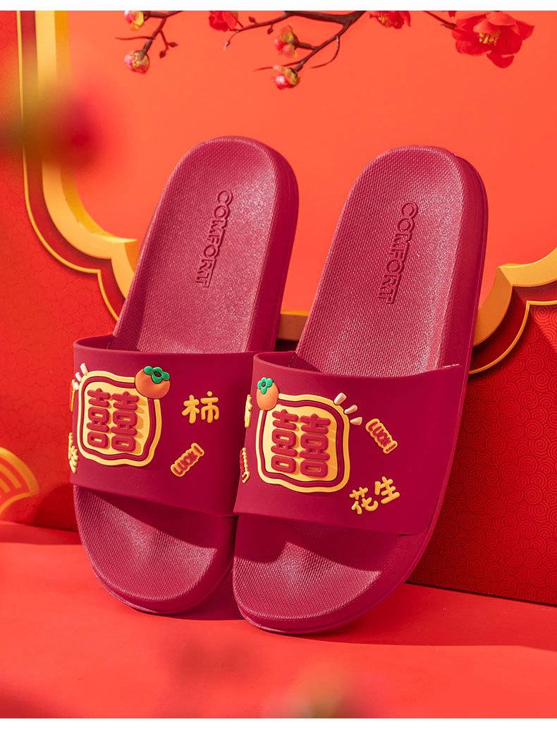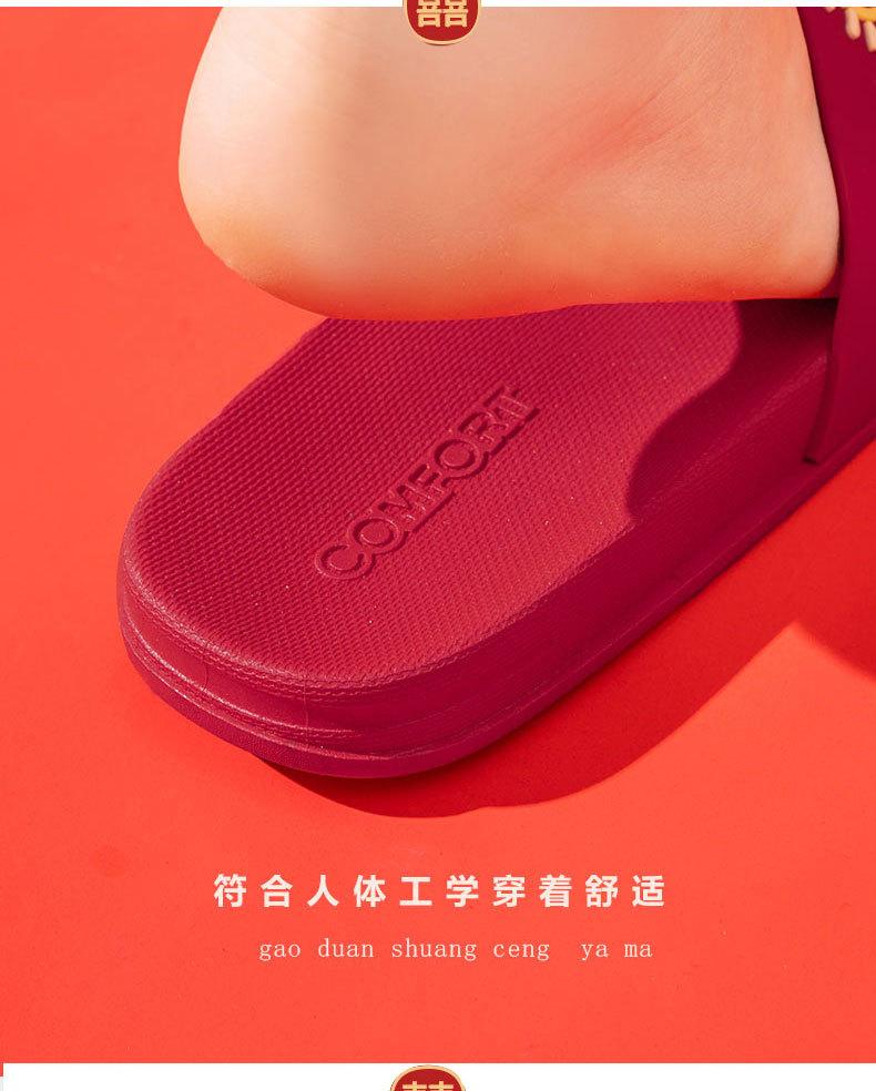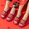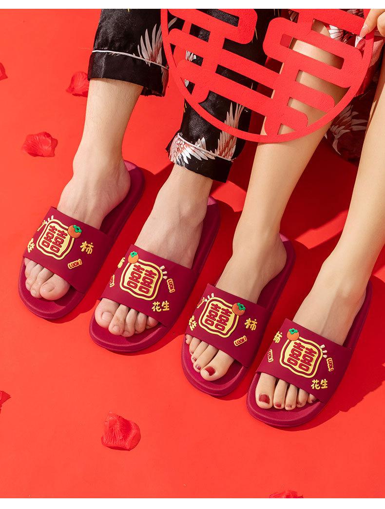 Zapatillas de boda de verano festivas rojas para parejas, para acompañar la boda, para baño interior, antideslizantes, gruesas, para verano.