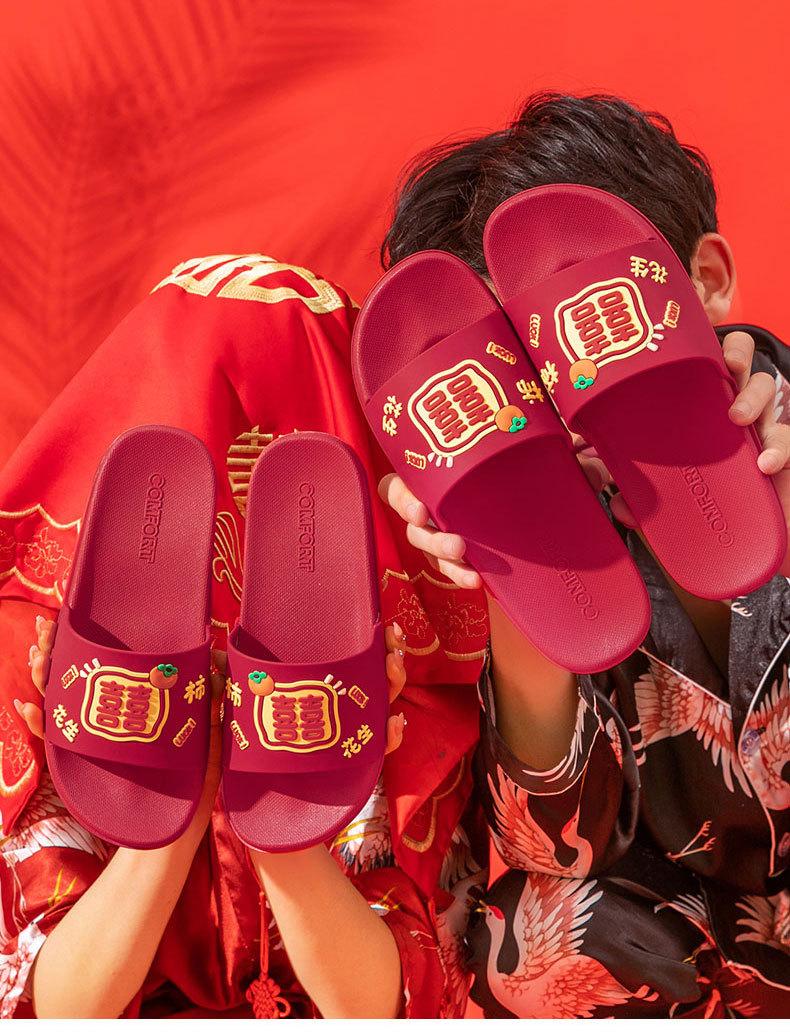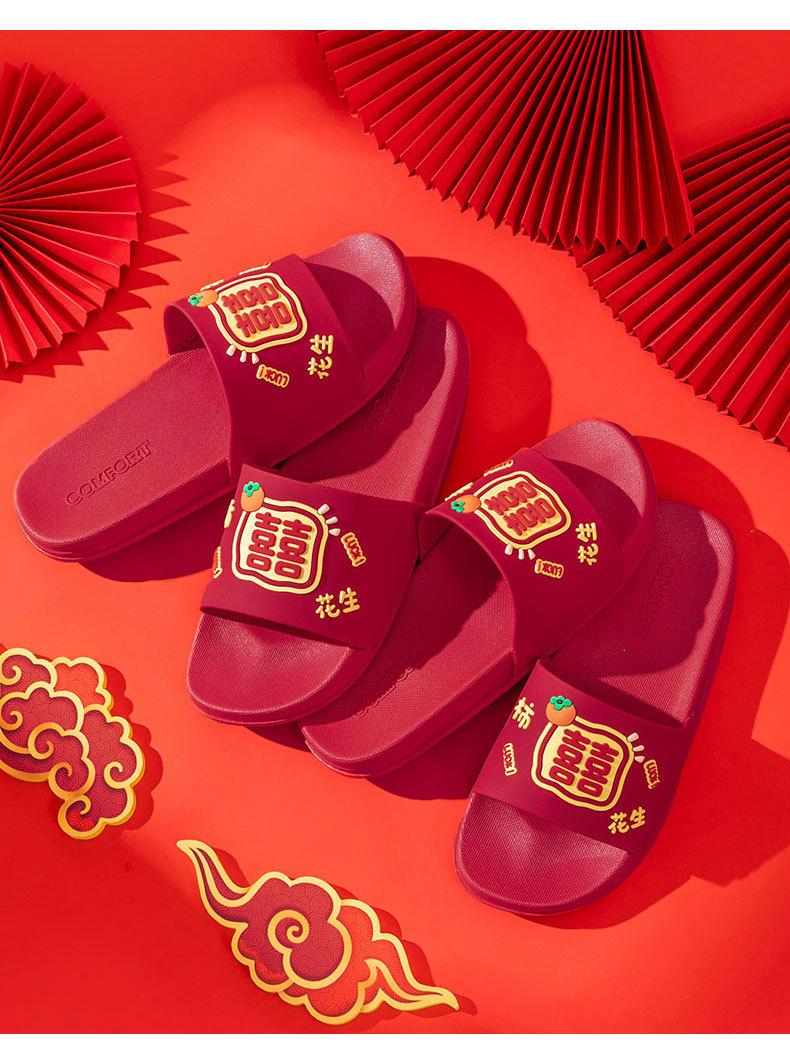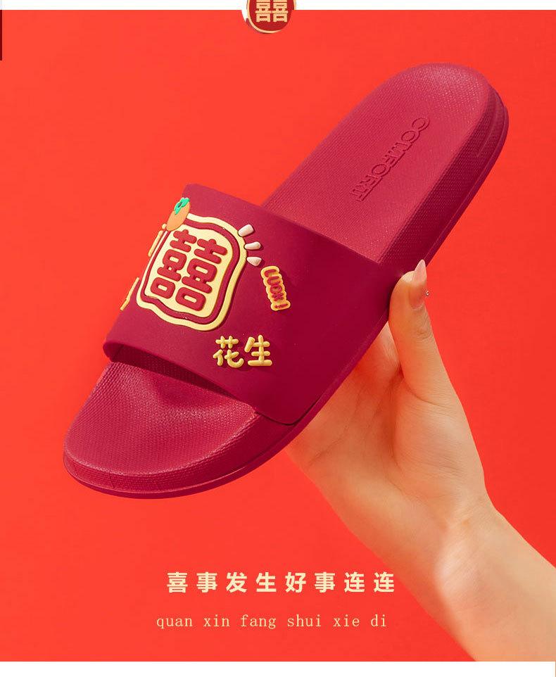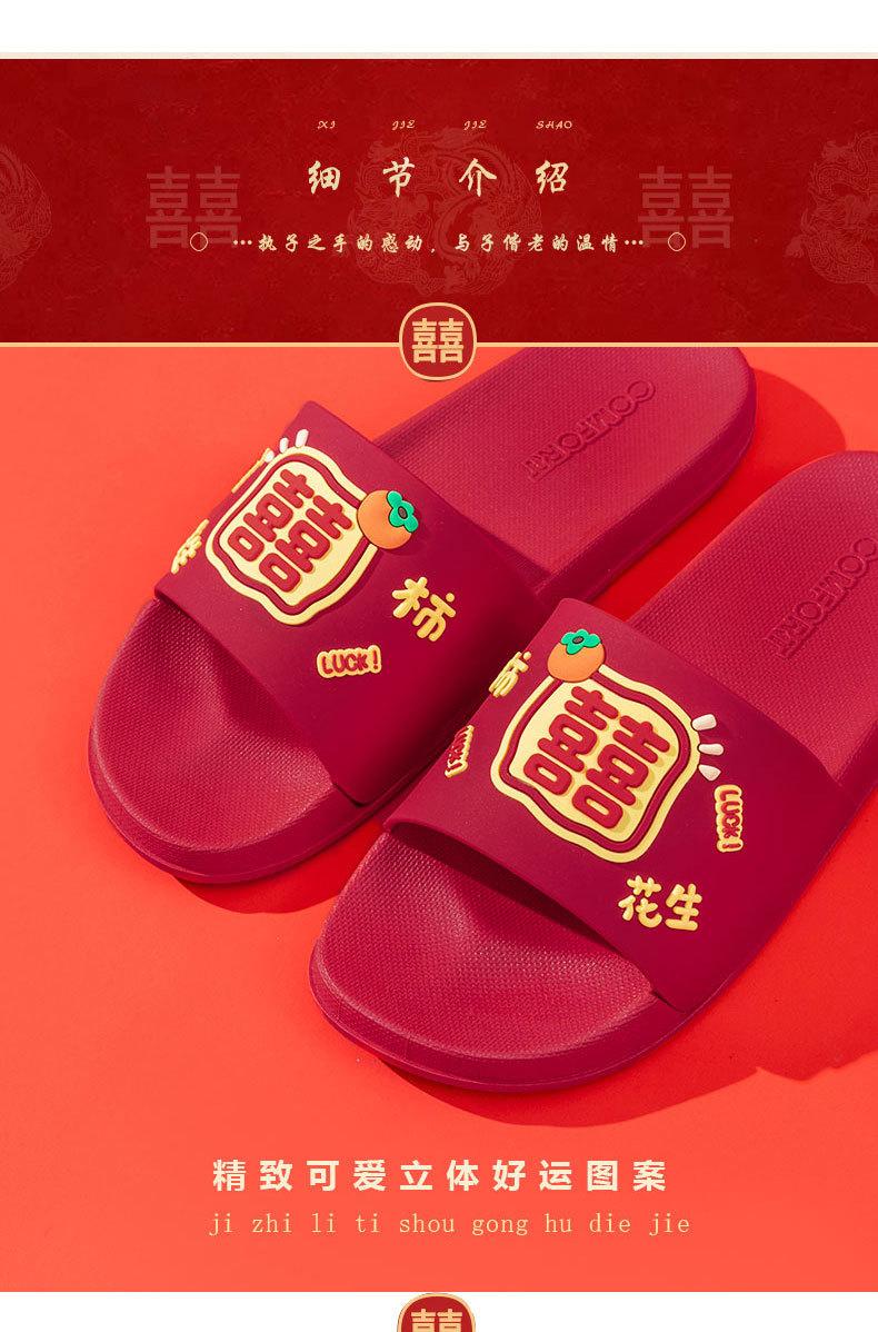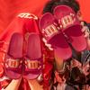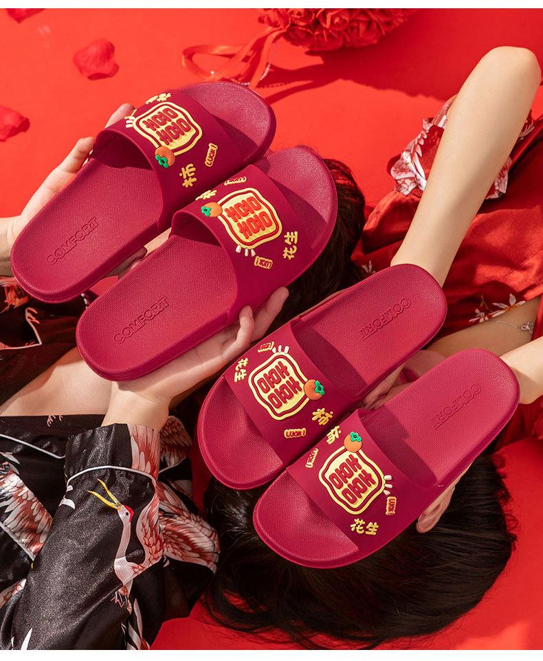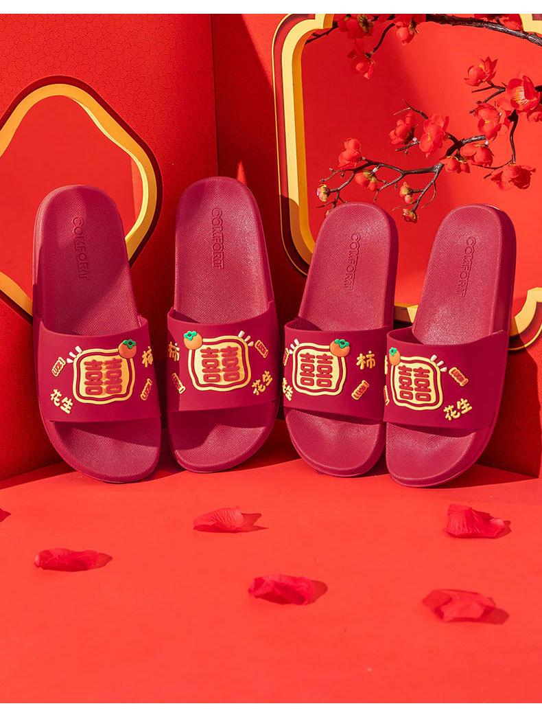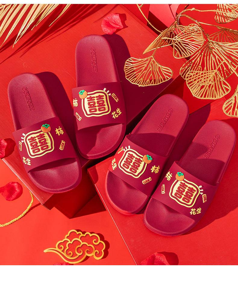 Zapatillas de boda de verano festivas rojas para parejas, para acompañar la boda, para baño interior, antideslizantes, gruesas, para verano.