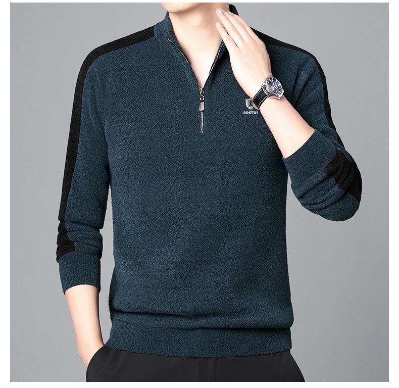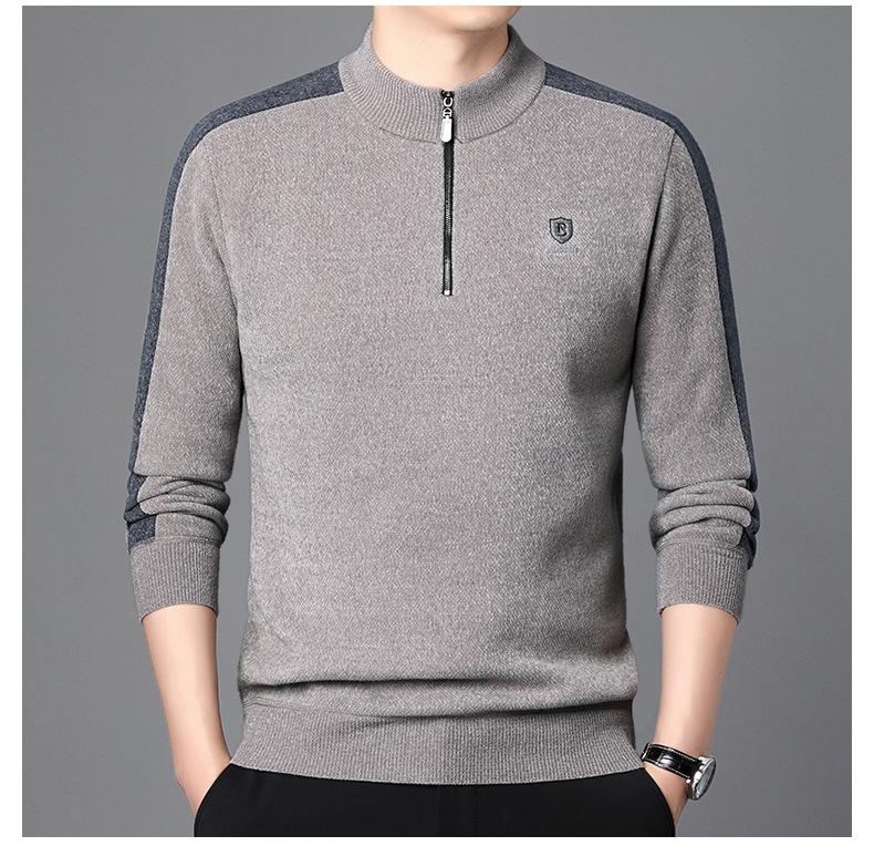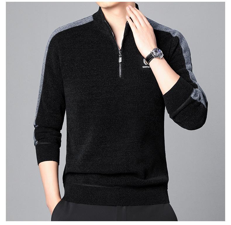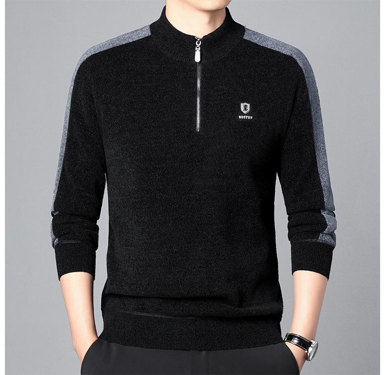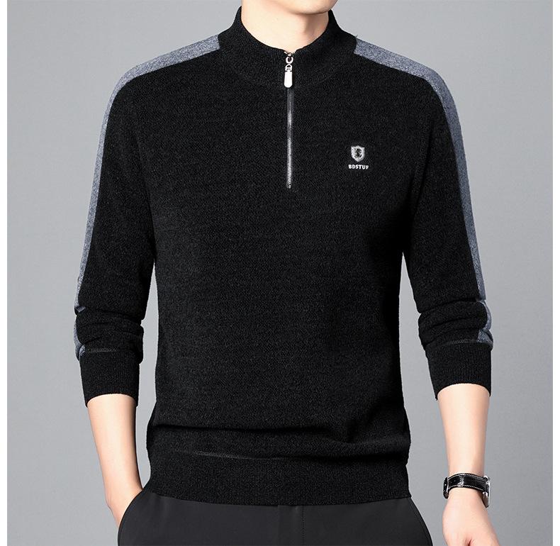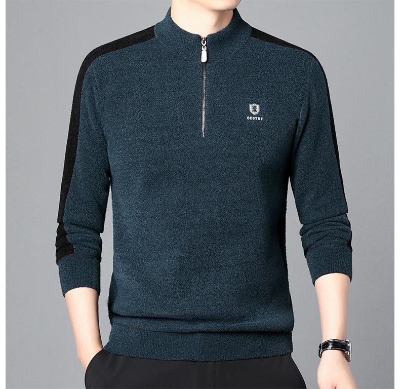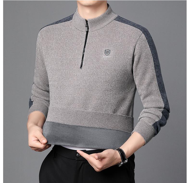 Suéter informal de manga larga con forro polar para hombre, nueva camisa básica, otoño e invierno, cuello alto, suéter de otoño e invierno para hombre