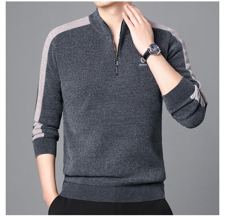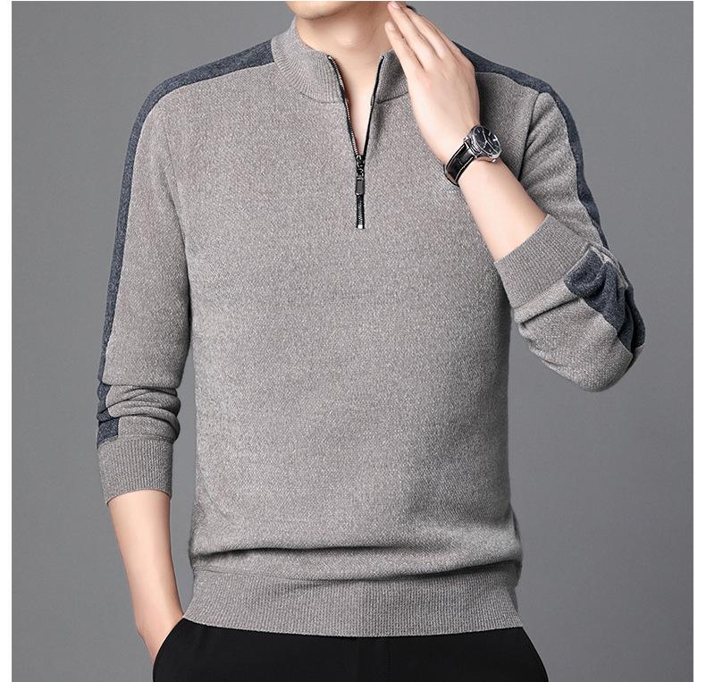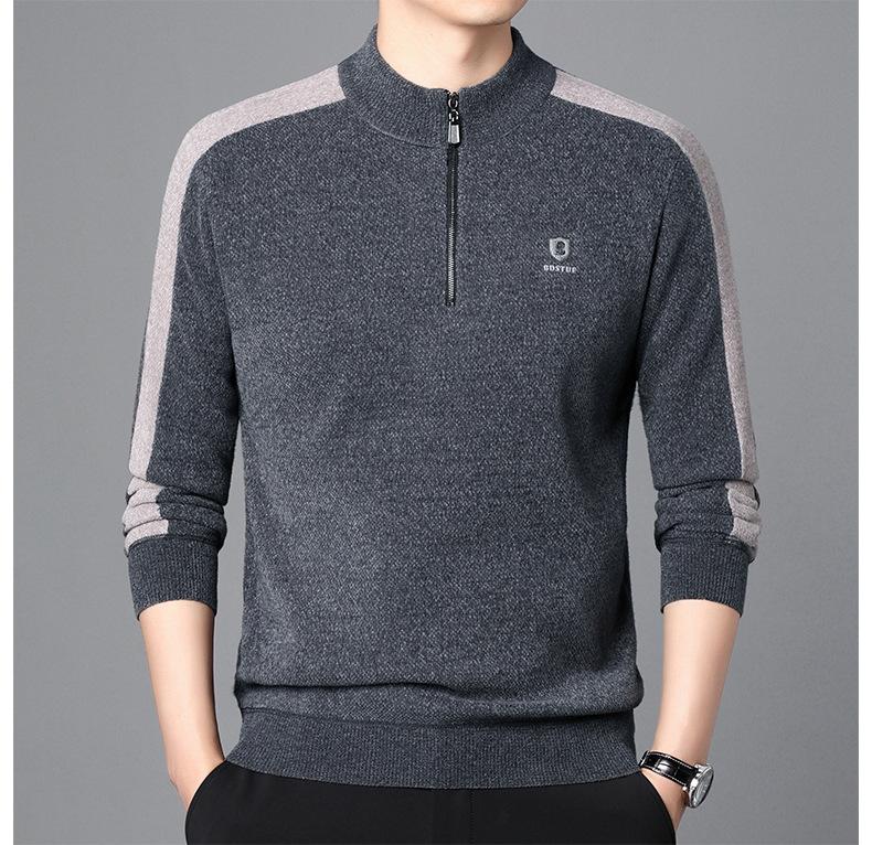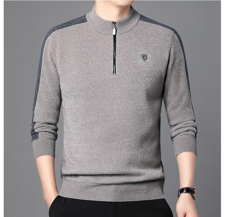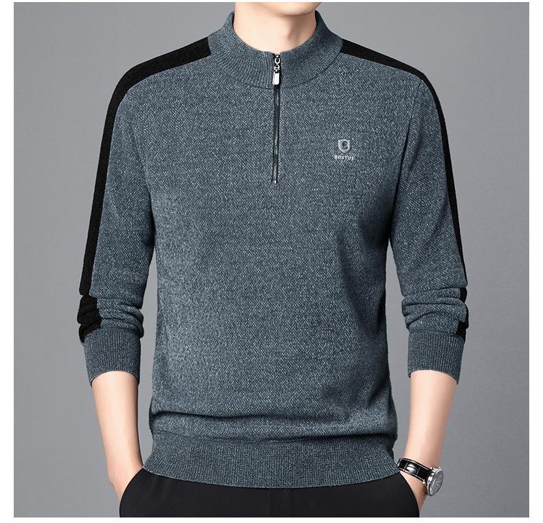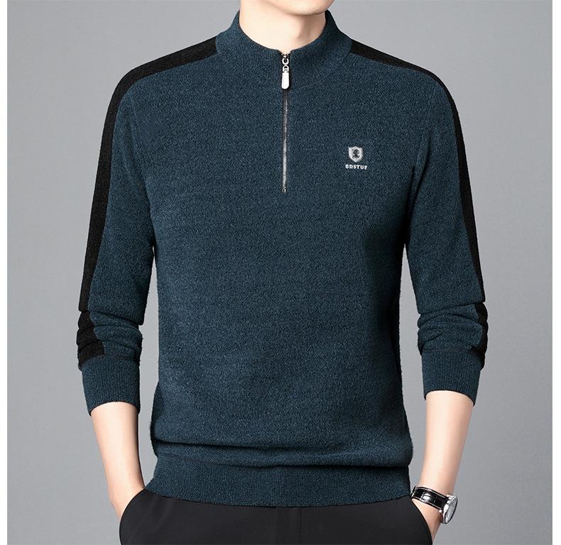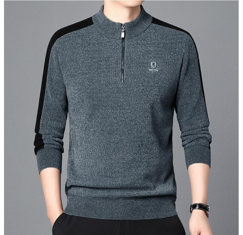 Suéter informal de manga larga con forro polar para hombre, nueva camisa básica, otoño e invierno, cuello alto, suéter de otoño e invierno para hombre