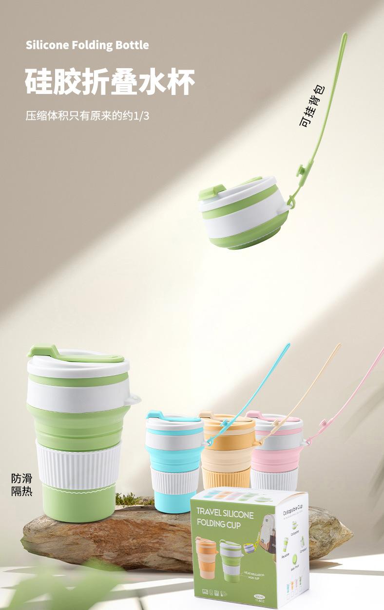 Vaso de agua plegable de silicona transfronterizo para viajes, práctico vaso de silicona resistente a altas temperaturas, vaso plegable para deportes al aire libre, vaso de agua de gran capacidad.
