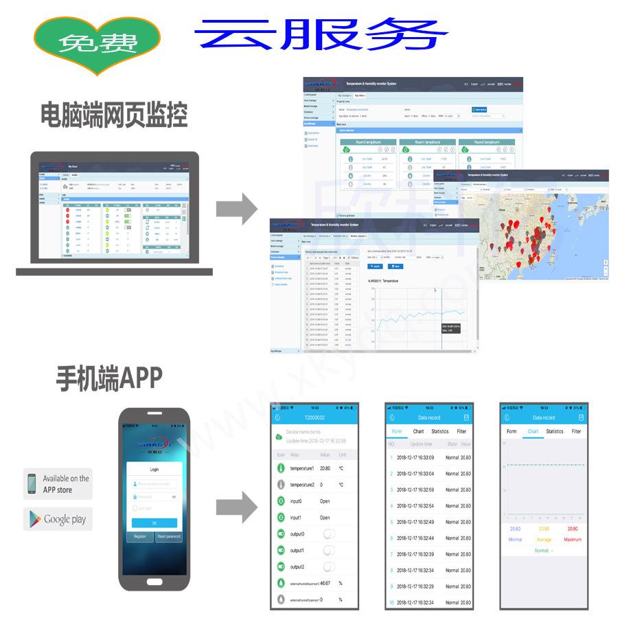 XKY-ZDT200DSTerminal receptor inalámbrico de temperatura y humedadEs un dispositivo inteligente de monitoreo de temperatura y humedad que integra recolección de datos, comunicación inalámbrica de datos, alarma y control. Se puede conectar a una sonda de temperatura o de humedad.Las redes inalámbricas como GPRS/3G/4G o Wi-Fi envían datos a la plataforma en la nube. Los usuarios pueden consultar datos, gráficos, estadísticas e historiales en tiempo real a través de páginas web, WeChat y la aplicación. Admite alarmas por SMS, WeChat y correo electrónico, y permite el control remoto o local de la temperatura.Mediante la gestión de la plataforma en la nube, se realiza la monitorización por internet de la temperatura y la humedad en clústeres multipunto. Este producto se utiliza ampliamente en el control de la automatización industrial, la monitorización de estaciones base, la monitorización de salas de ordenadores, la monitorización ambiental, el suministro de agua, la electricidad, la agricultura y otros sectores.