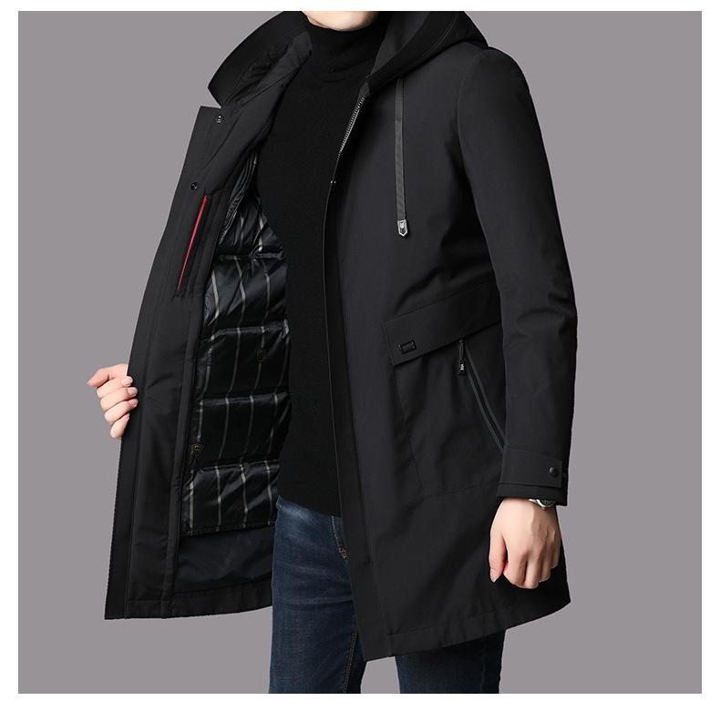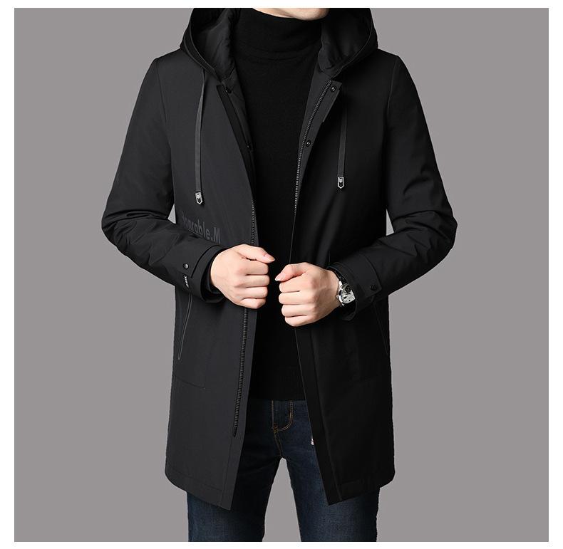2025 Invierno Nueva Moda Chaqueta de Plumas para Hombre con Capucha Largo Medio Engrosada Cálida Chaqueta de Plumas Ropa de Hombre