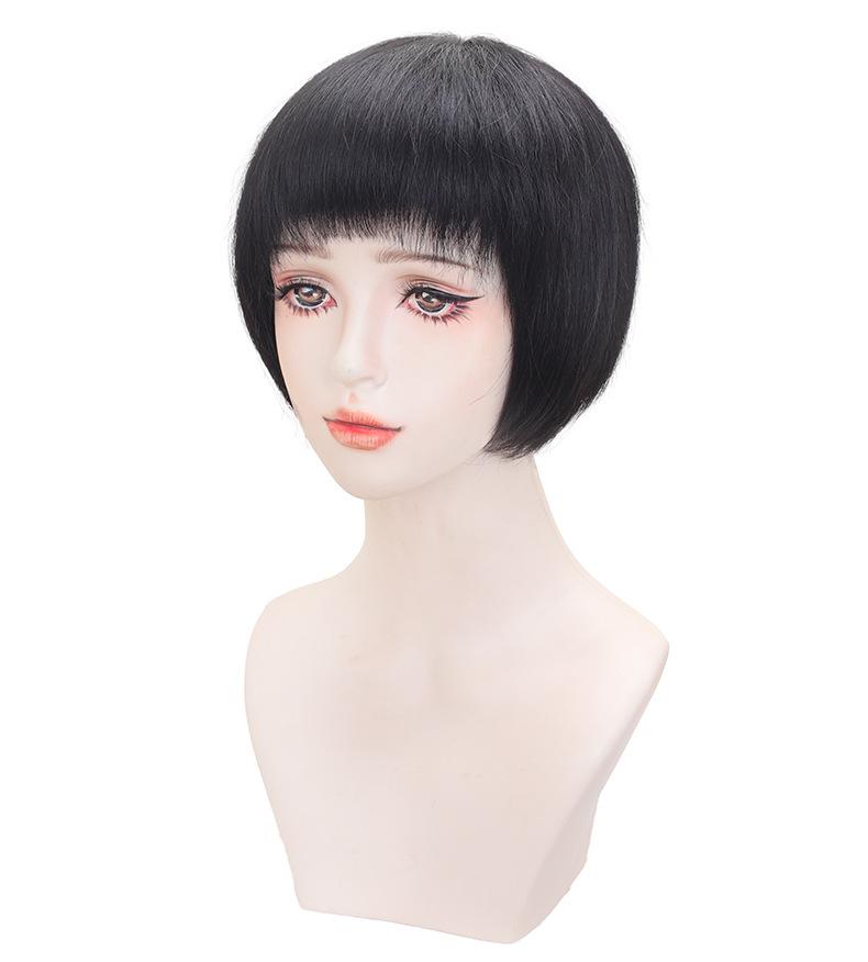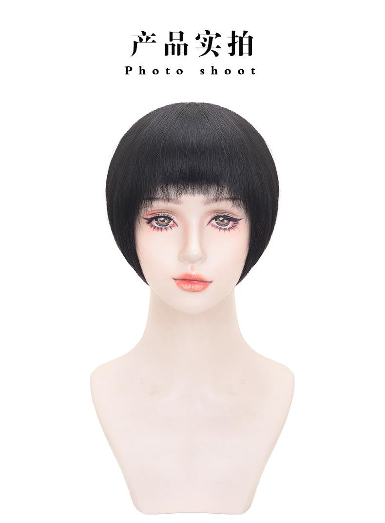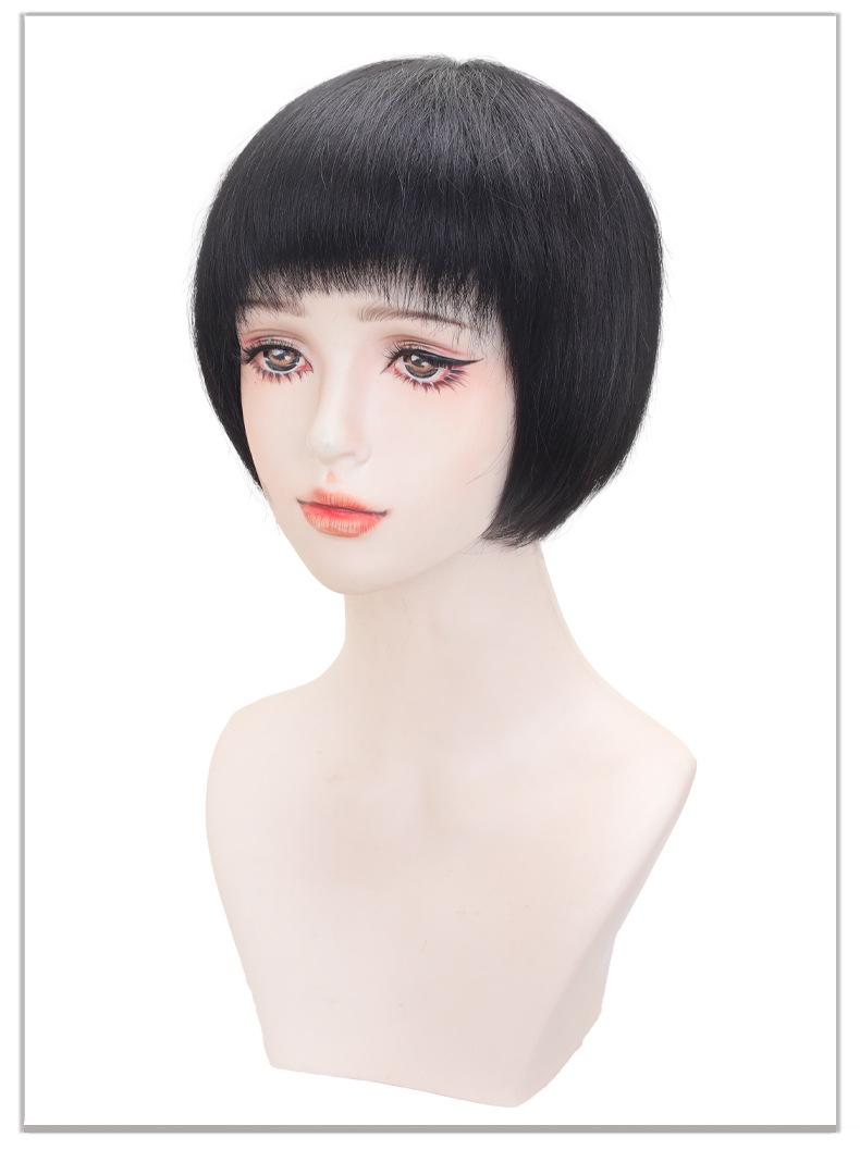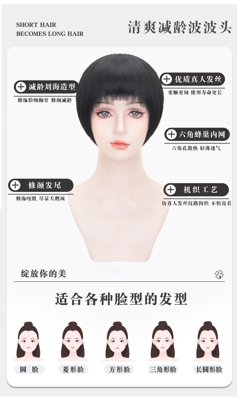 Suministro directo de fábrica cabello real para mujer cabeza bobo Moda natural esponjoso transpirable aguja Xuan cabello corto para mujer set de cabello real