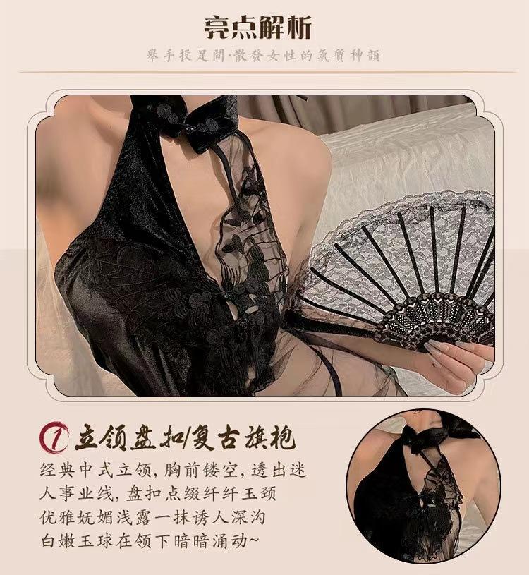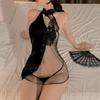 Lencería sexy de primavera, encaje retro, transparente, de una pieza, con bolso y brazo, perspectiva, uniforme cheongsam, traje de tentación y pasión.