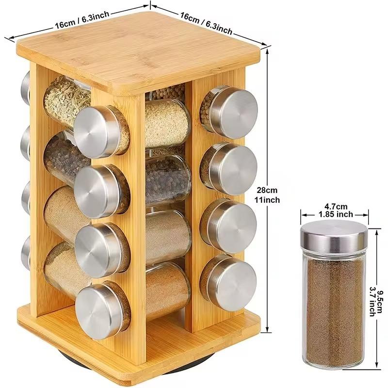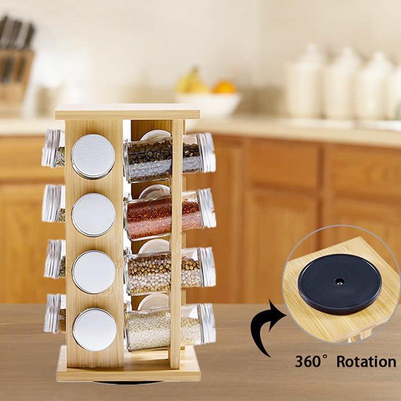 Estante para Condimentos de Cocina Amazon Hogar Estante para Condimentos de Bambú Estante para Condimentos Giratorio de Madera de Bambú Estante de Almacenamiento