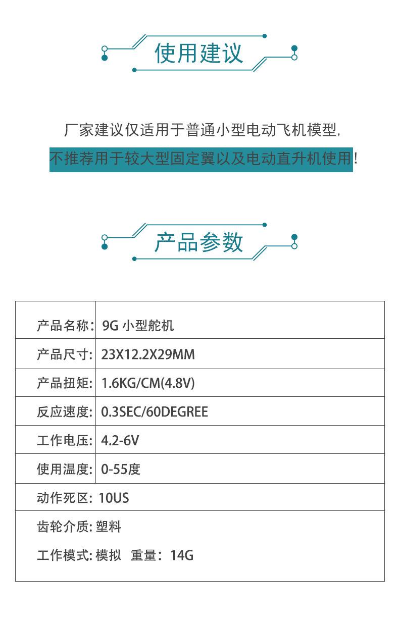 Servo SG90 9G modelo de helicóptero de ala fija 450 servo estándar de control de calidad SG90