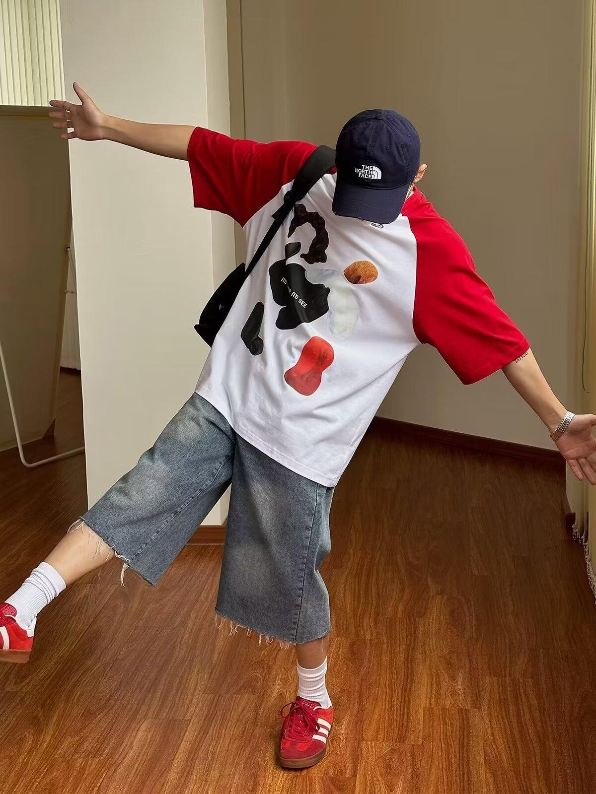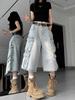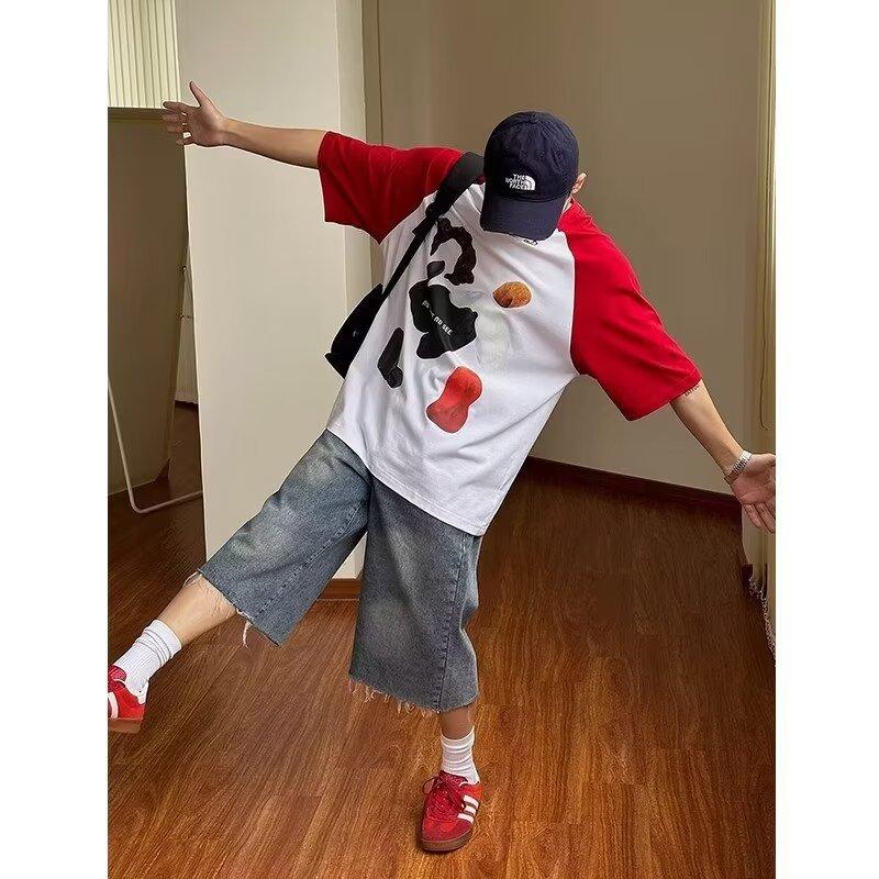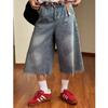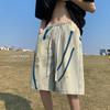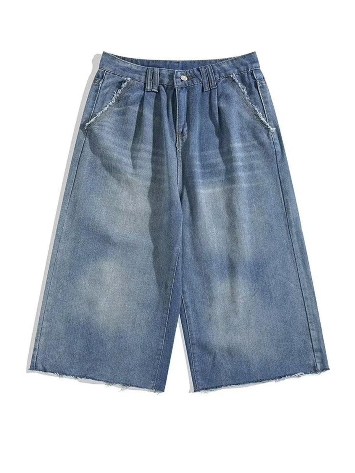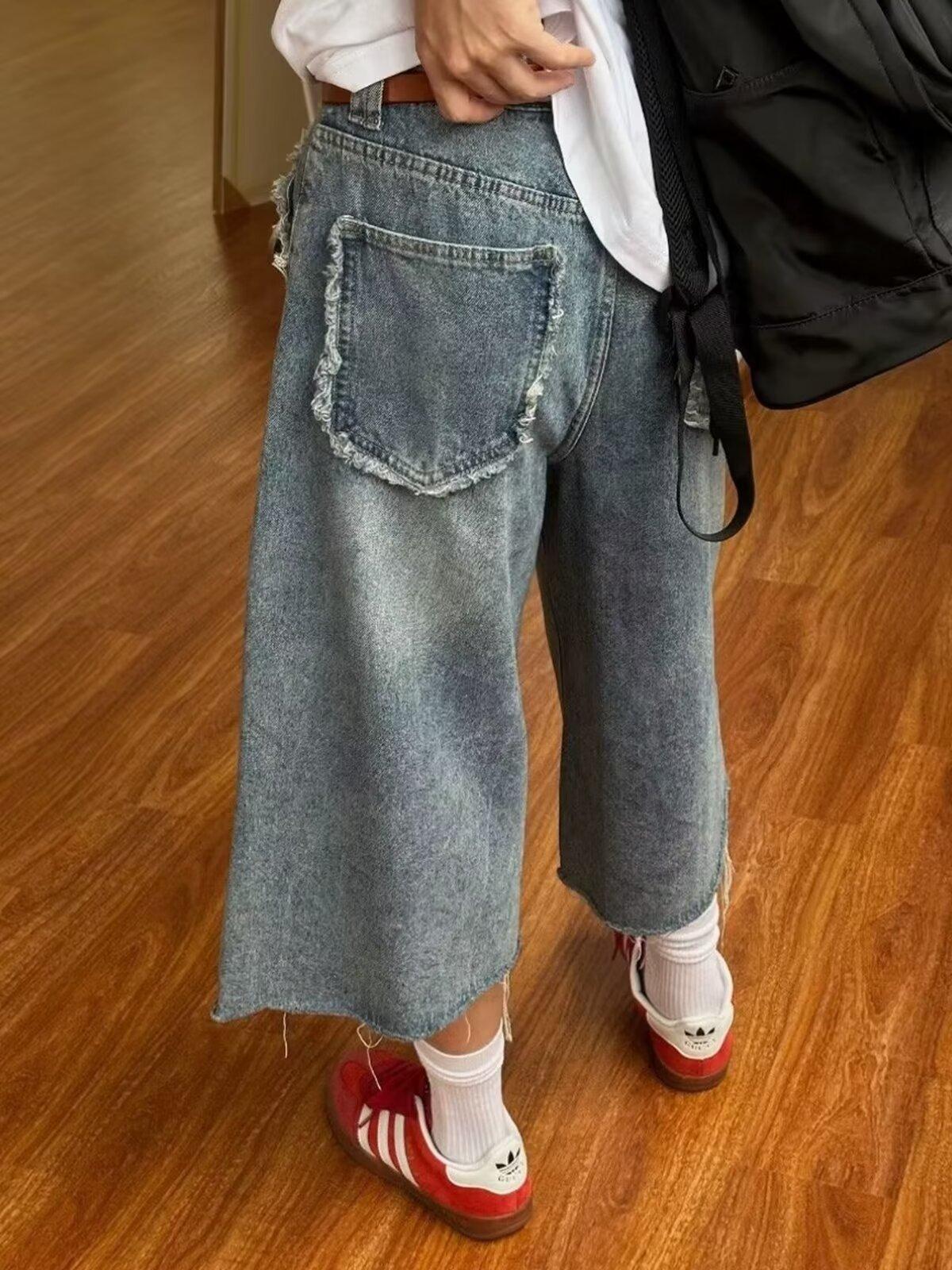 Pantalones cortos de mezclilla para hombre y mujer de verano populares sueltos retro de pierna ancha con diseño de borde áspero desgastado estilo americano