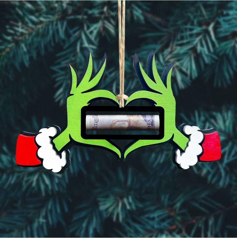 Colgante de clip para billetes de Grinch, adornos navideños de madera para ahorrar, artesanías creativas de madera populares transfronterizas