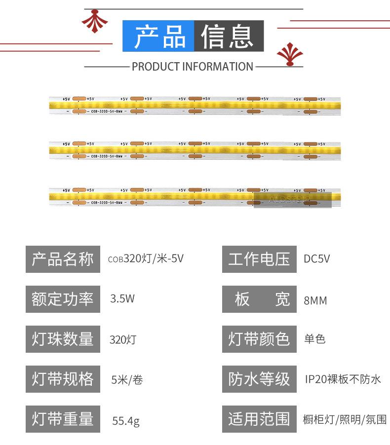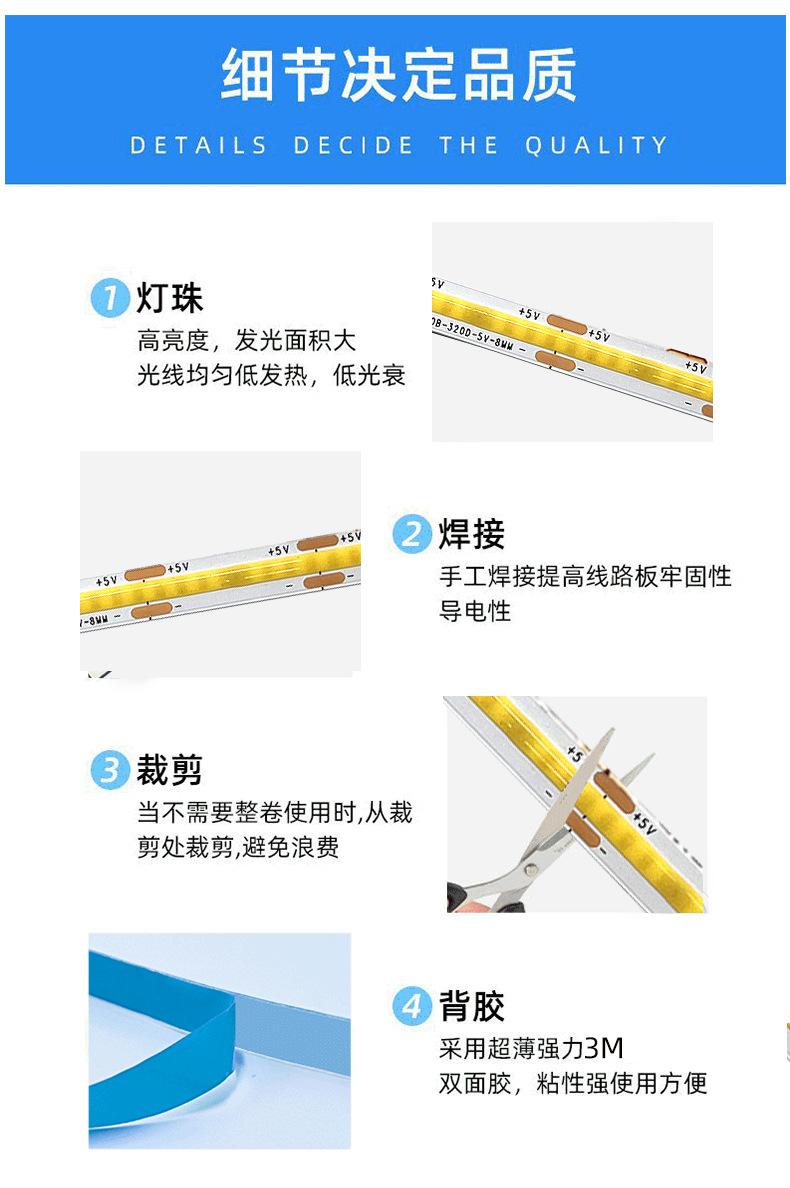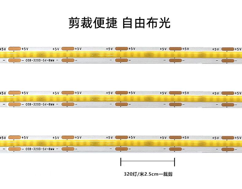 Tira de Luz COB de 5V Tira de Luz LED Lineal Sala de Estar Techo Autoadhesiva Flexible 320 Luces 8mm Ancho Alta Calidad Luz para Gabinete