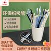 Pajita de papel desechable ecológica de 6 x 197 mm con rayas de colores, papel decorativo creativo, pajita para jugo de leche
