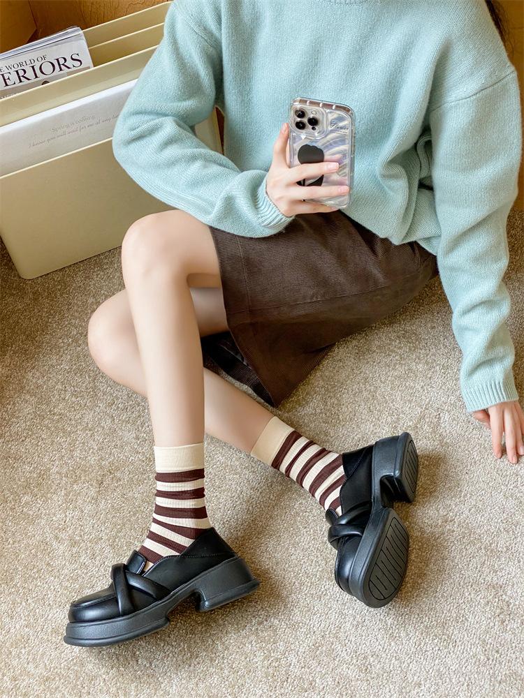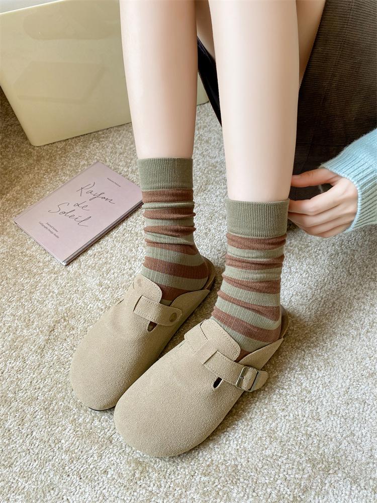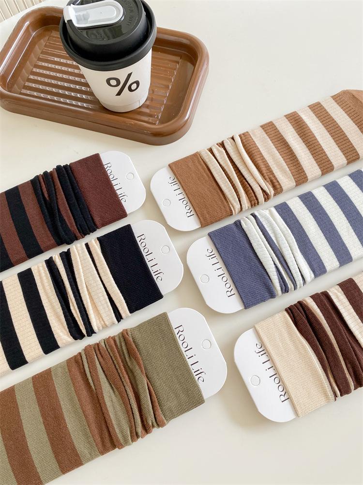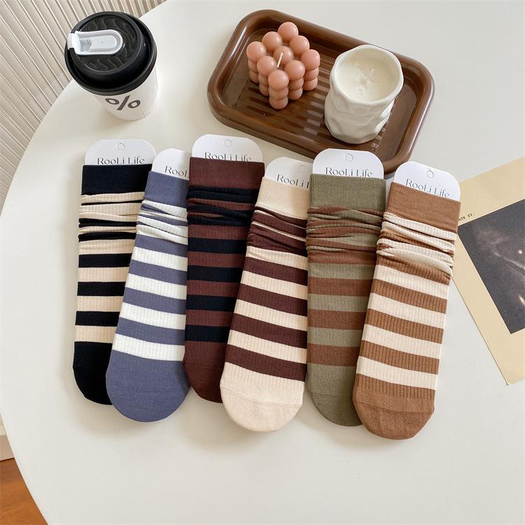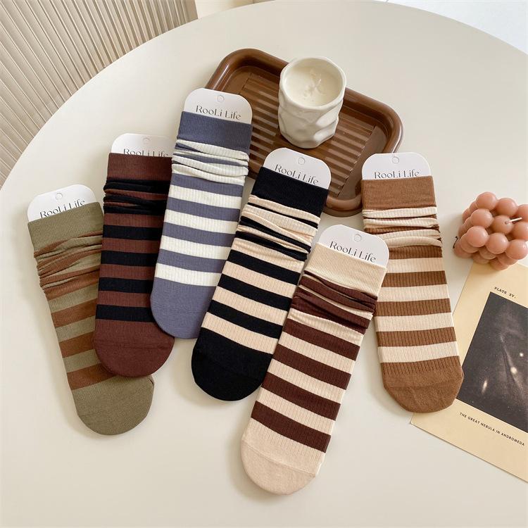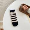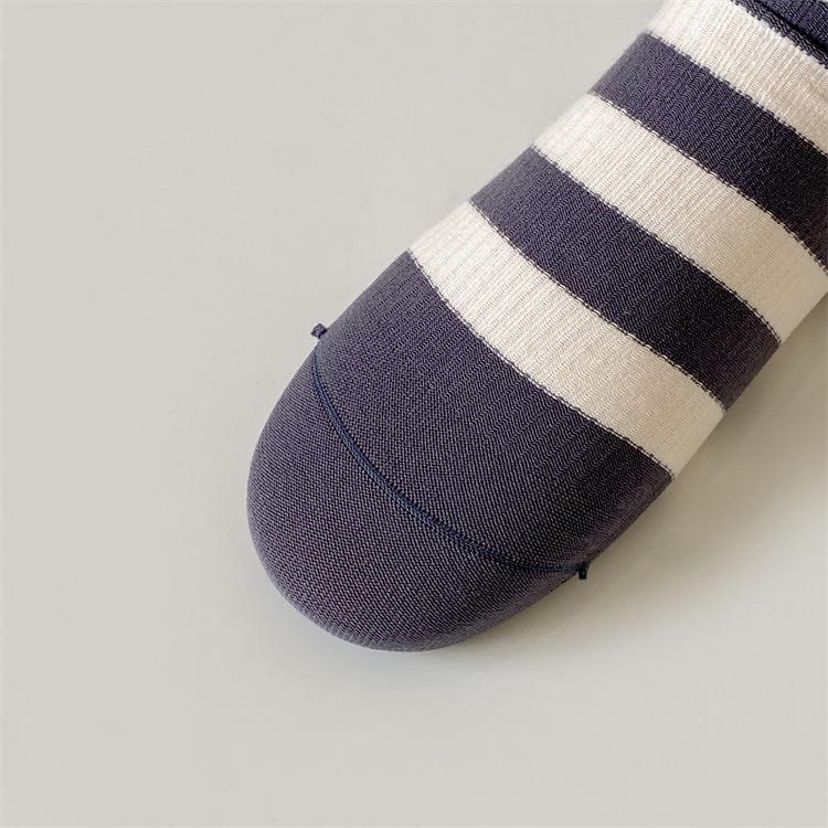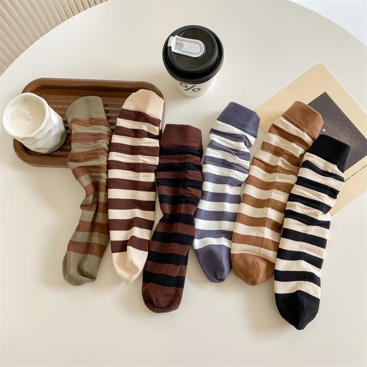 Calcetines para mujer otoño e invierno calcetines de media caña a rayas absorbentes de sudor de algodón peinado calcetines de felpa calcetines versátiles de color contrastante sin costuras para mujer al por mayor