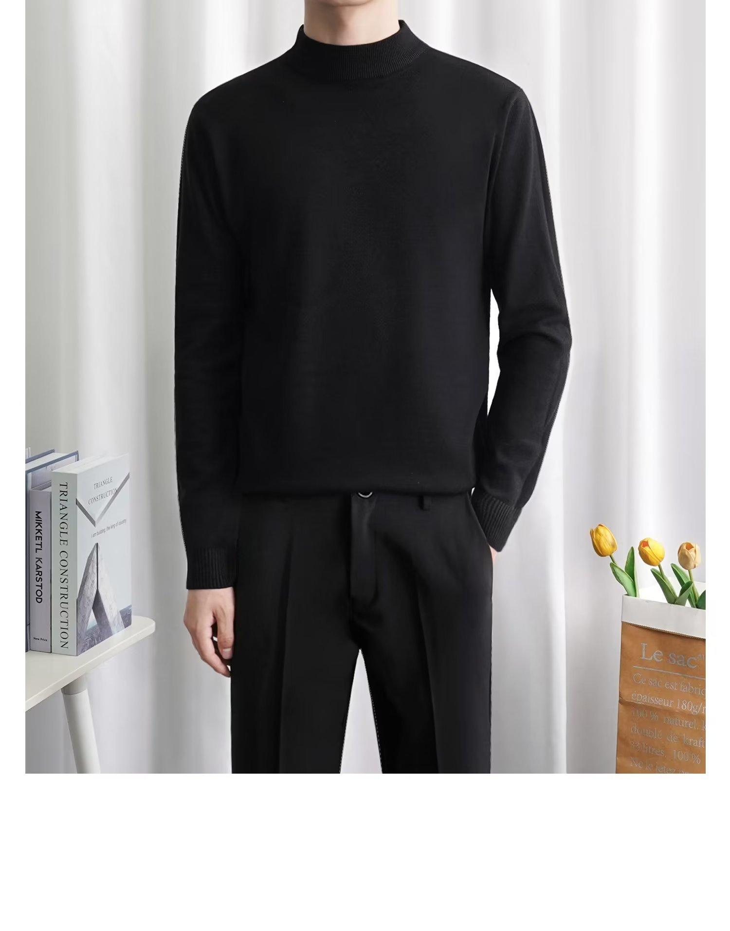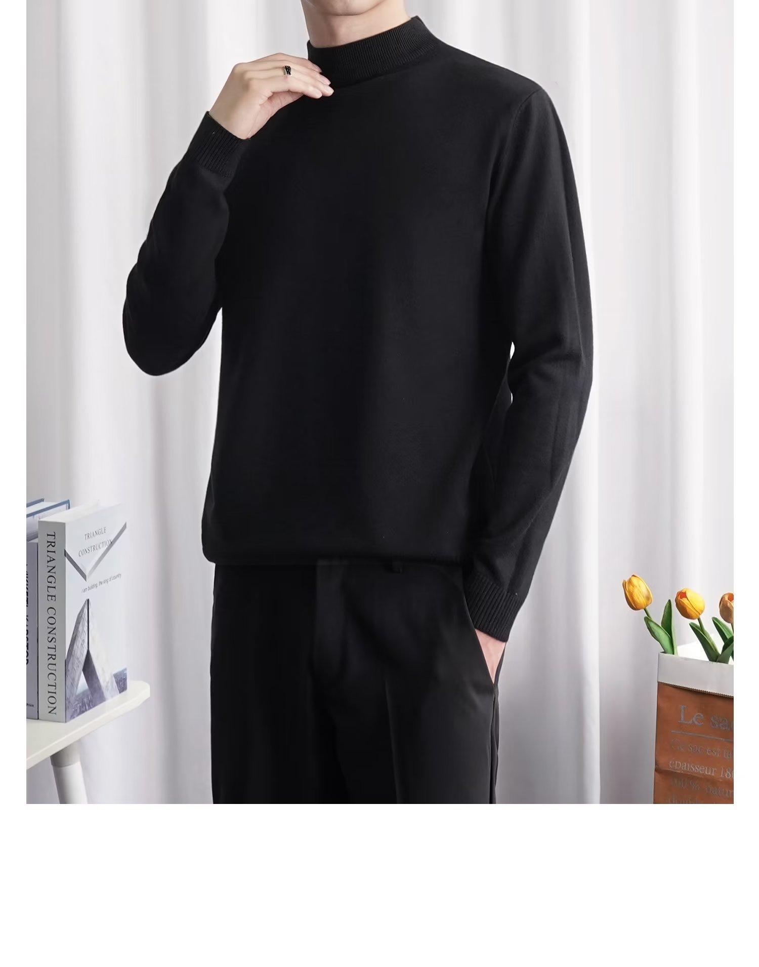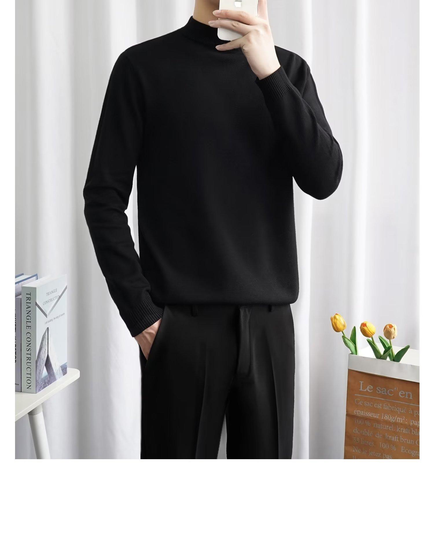 Suéter de cuello alto medio de otoño e invierno para hombre, camisa de punto de cuello medio holgado a la moda, corte entallado interior, estilo coreano, combina con todo, cálido
