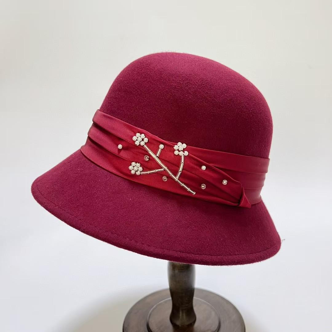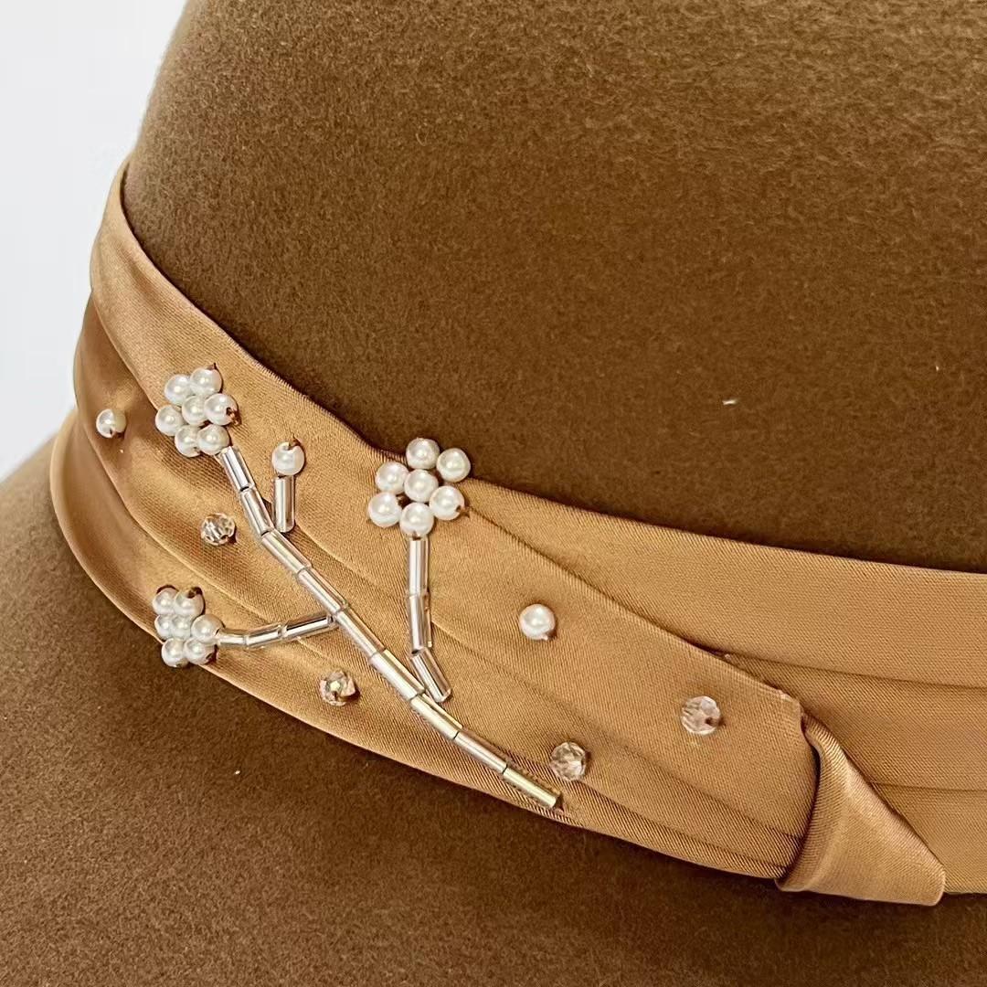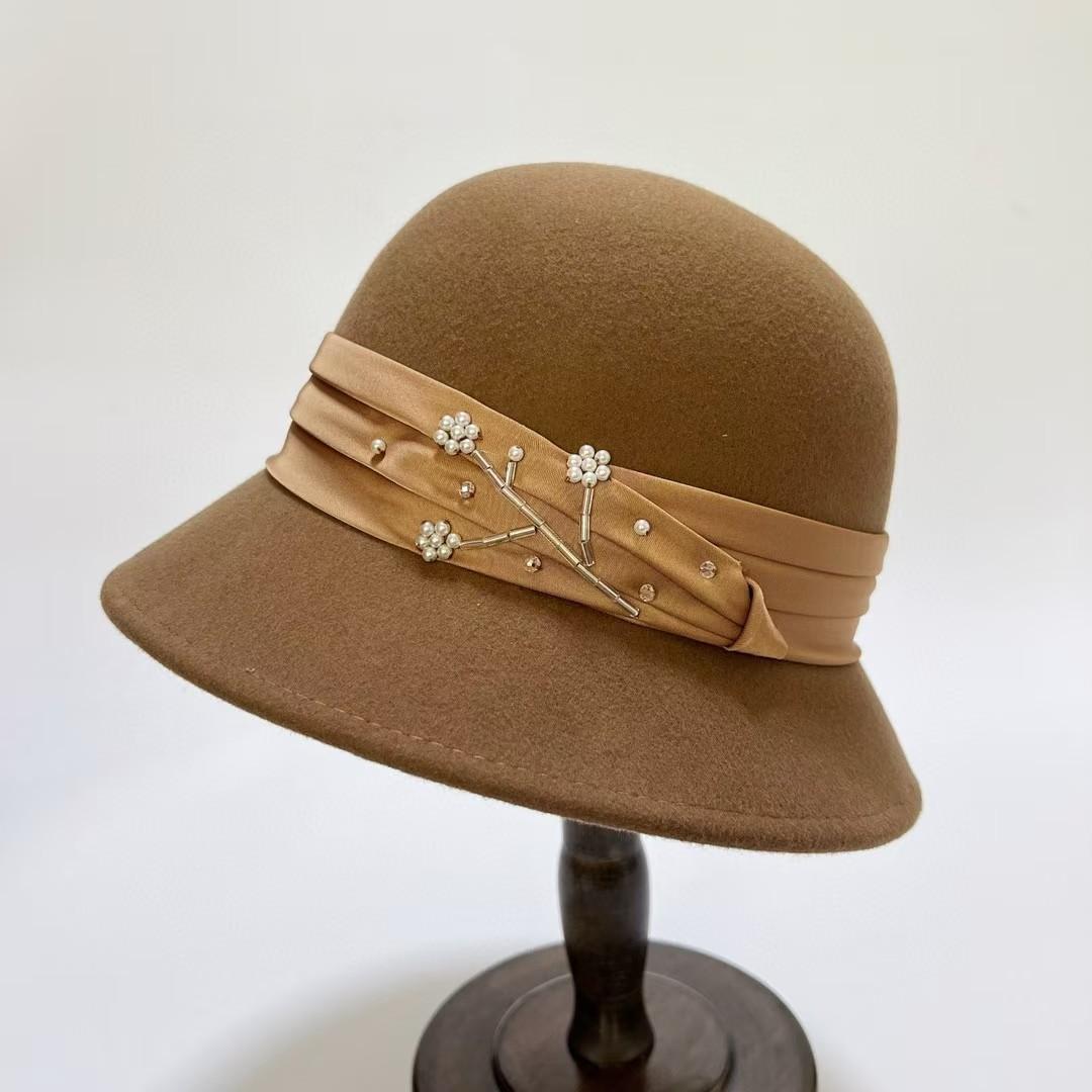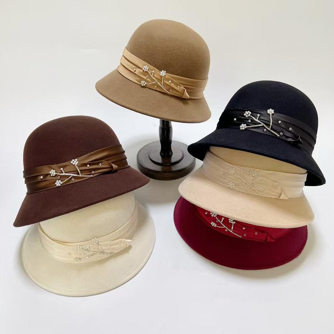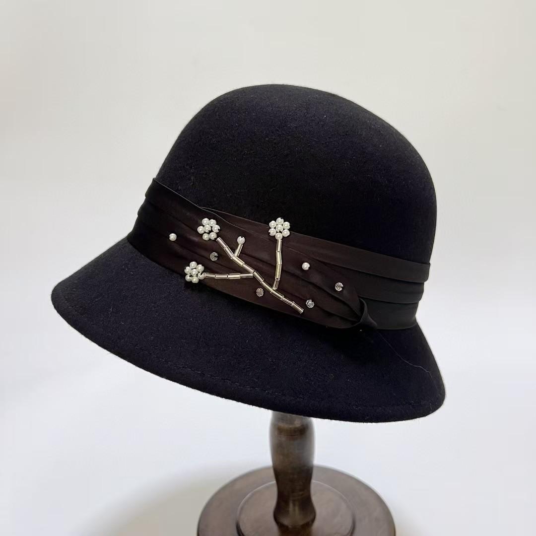 Sombrero de copa pequeño estilo Hepburn estilo francés Otoño e Invierno Nuevo Sombrero de pescador de lana vintage británico Elegante Combinable Ala corta Sombrero de cuenco