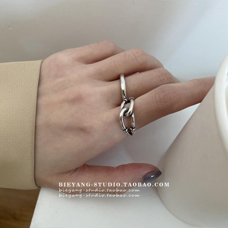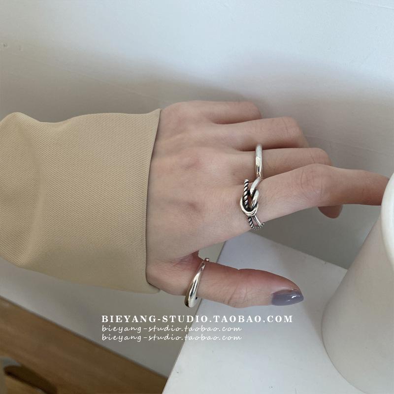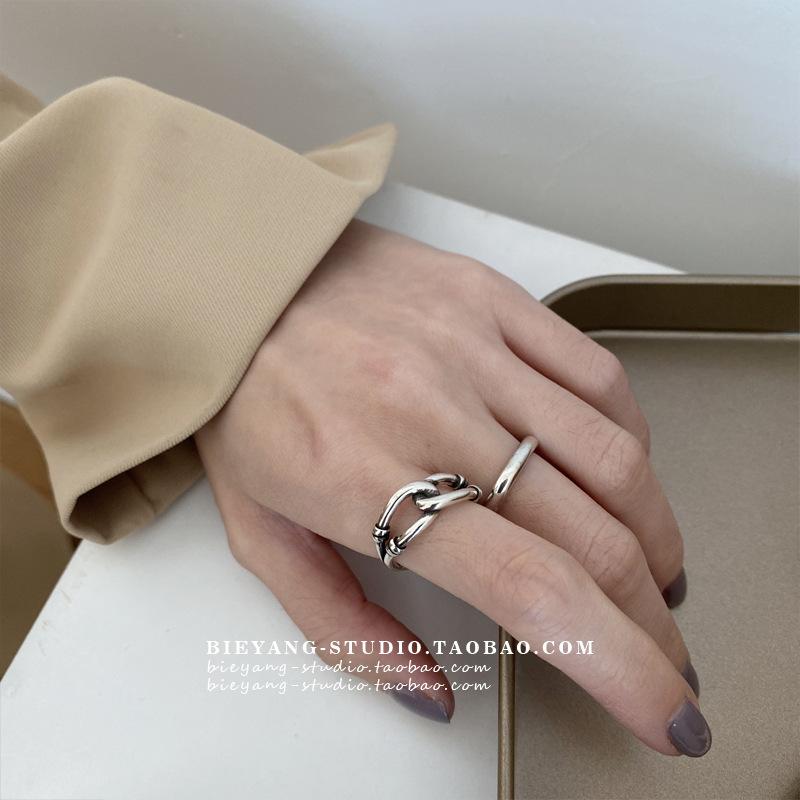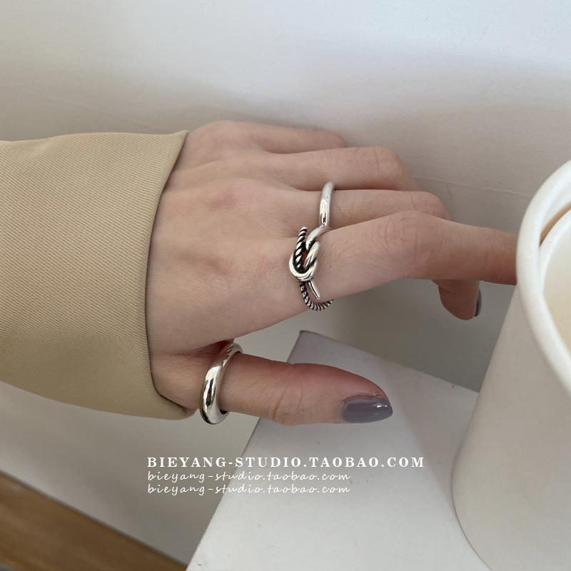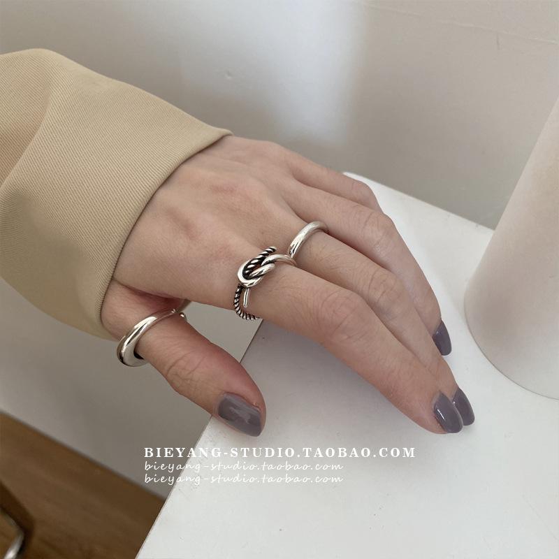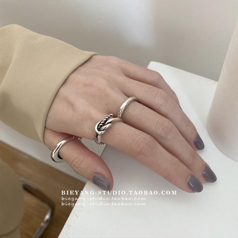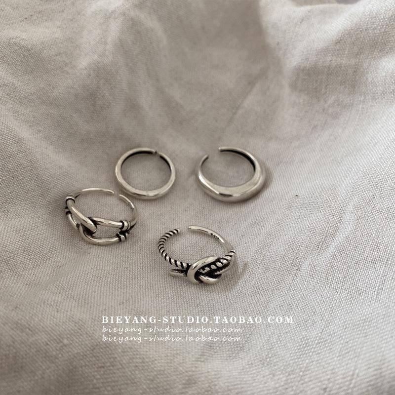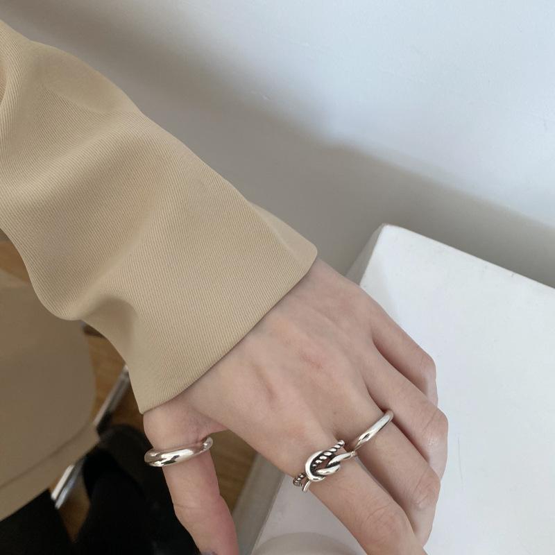 Los cuatro anillos son todos de estilos vintage y desgastados, y la parte negra en la superficie está hecha de aceite negro, que no se desvanecerá. El anillo interior de los anillos lisos grande y pequeño es hueco.