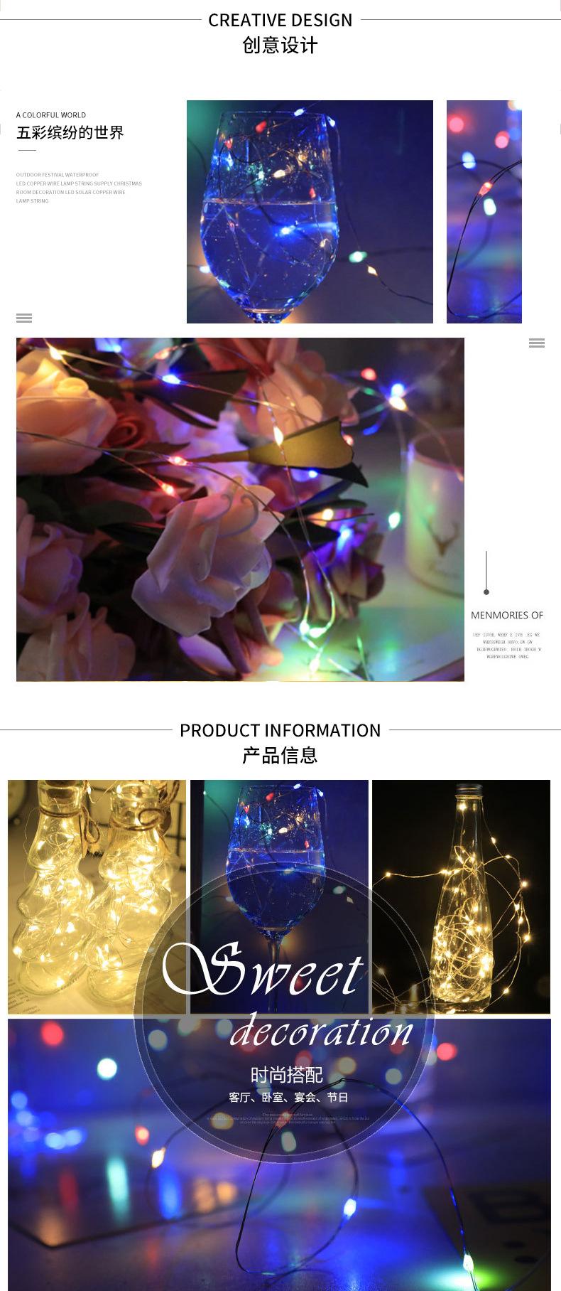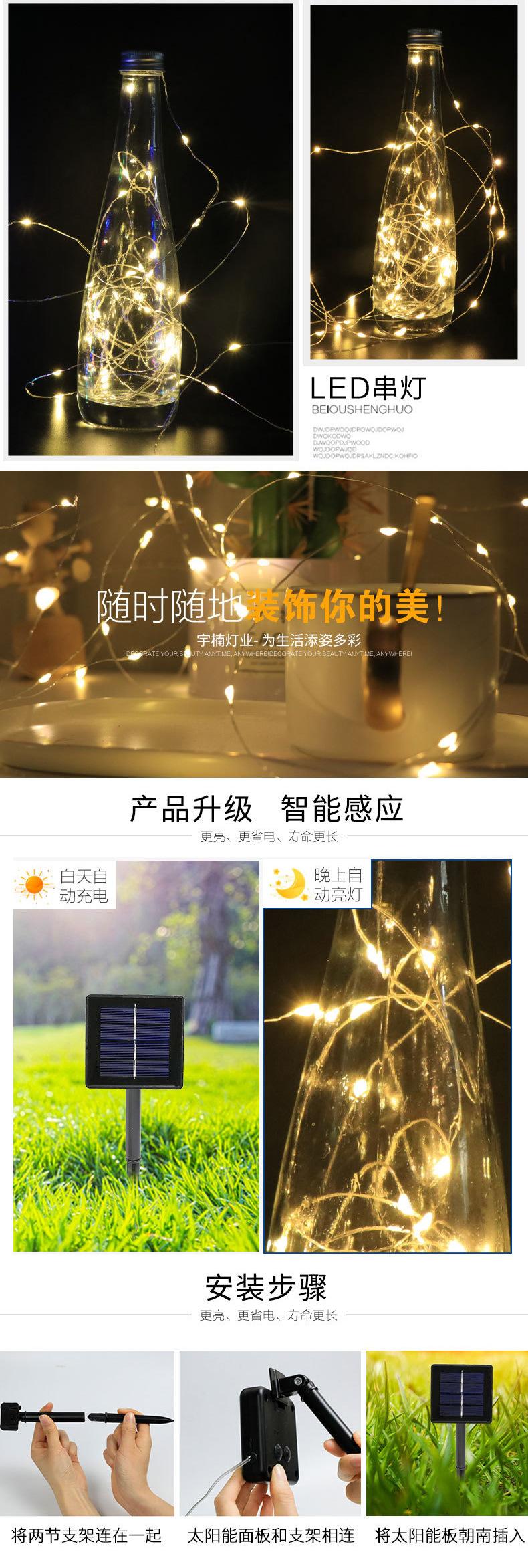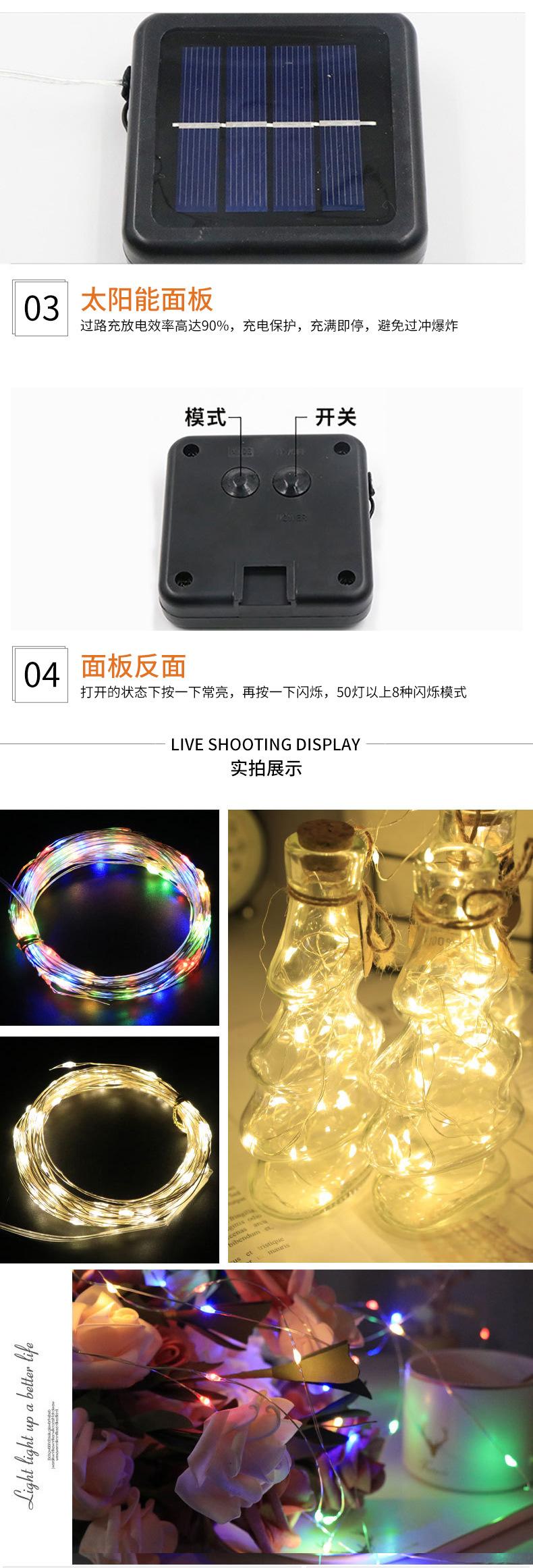 Luces de cadena de alambre de cobre led solar para exteriores impermeables luces de colores luces decorativas navideñas intermitentes patio camping luces de cadena con control remoto
