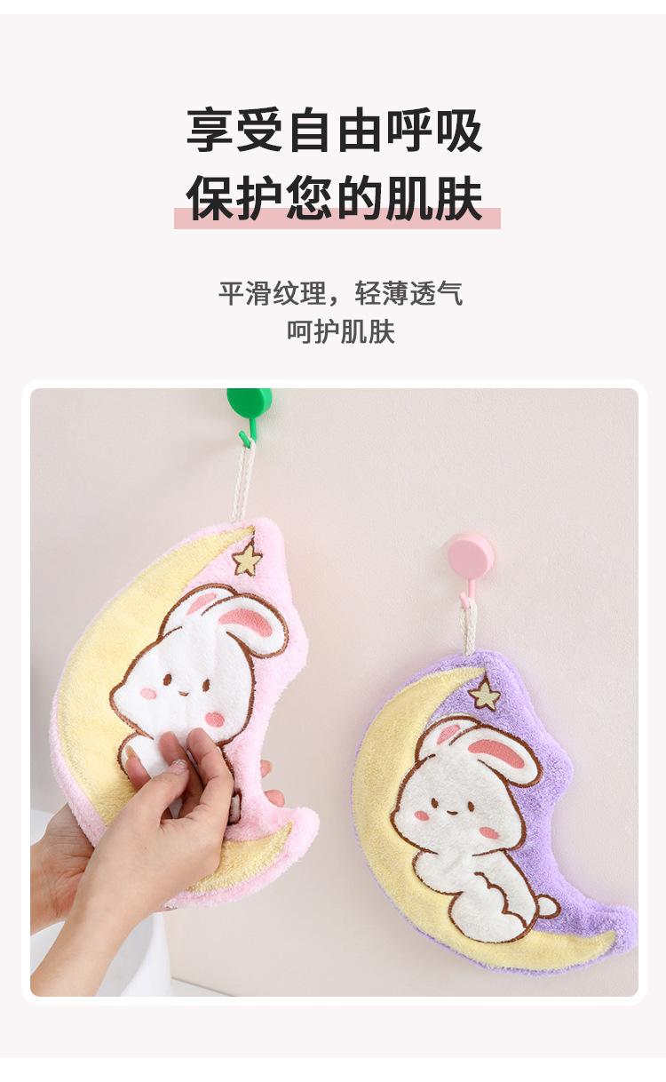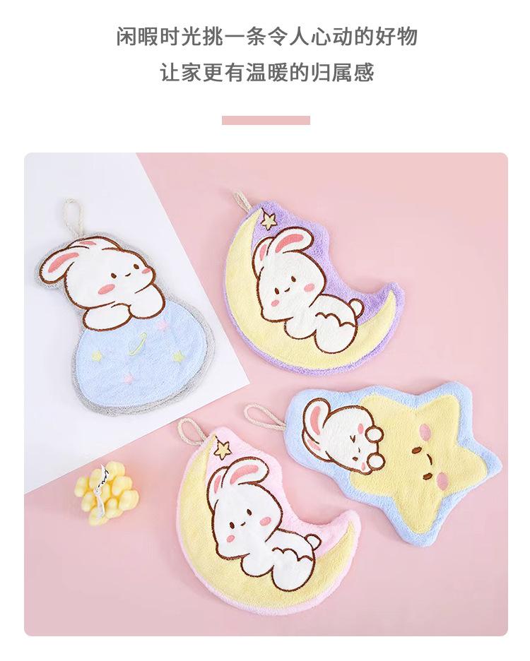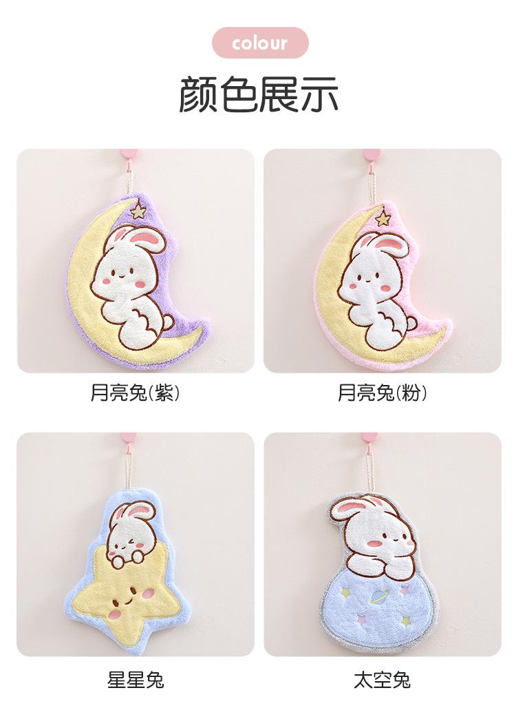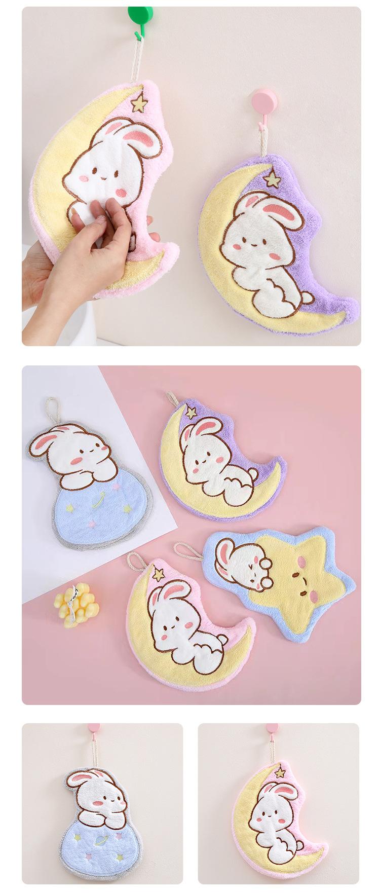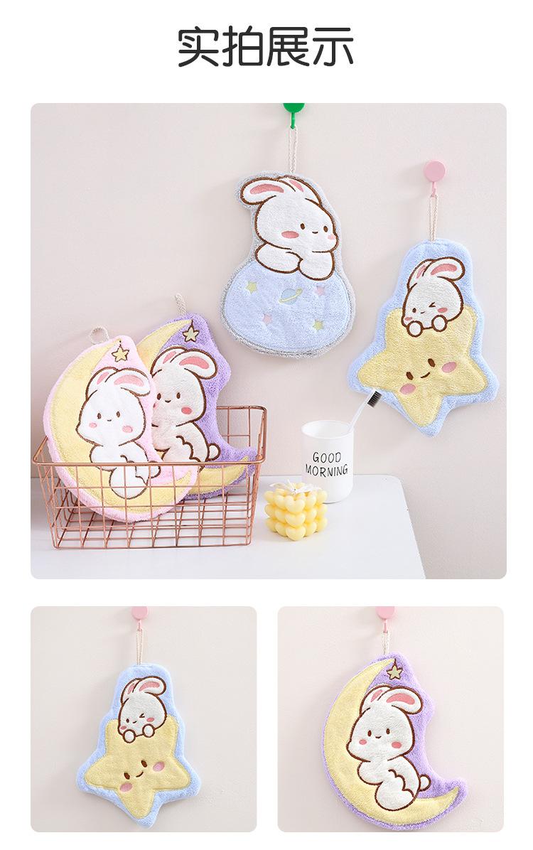 Toalla colgante para el hogar, toalla de manos para niños, venta al por mayor, toalla pequeña absorbente, linda toalla de dibujos animados con forma de estrella, luna y conejo