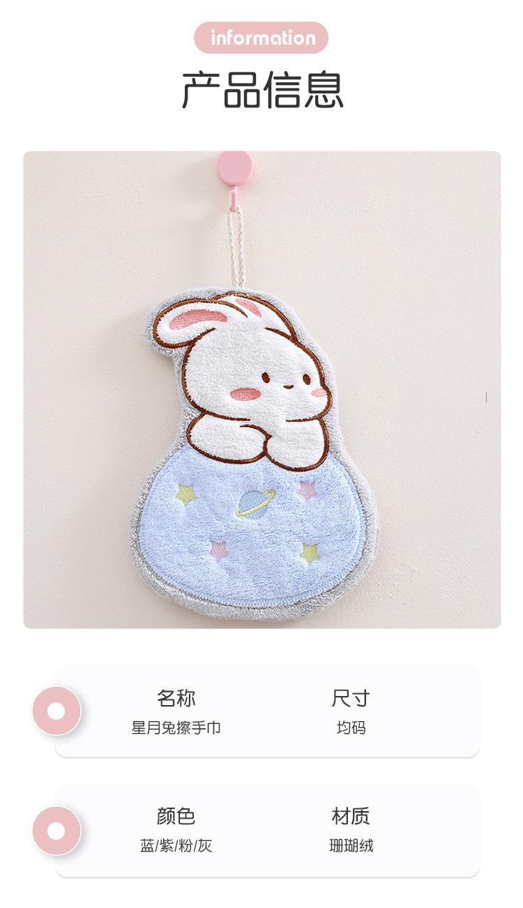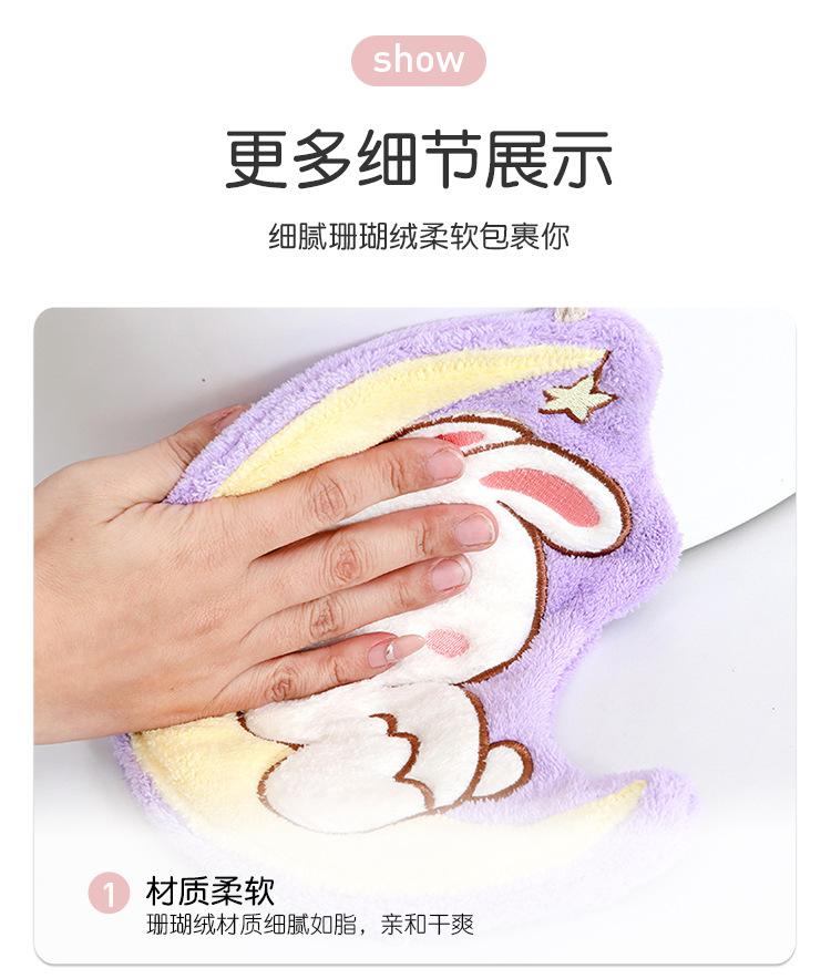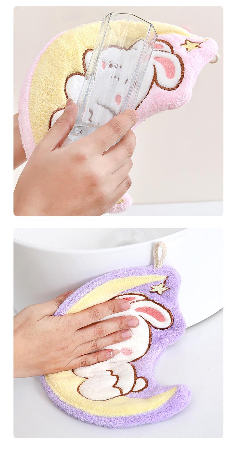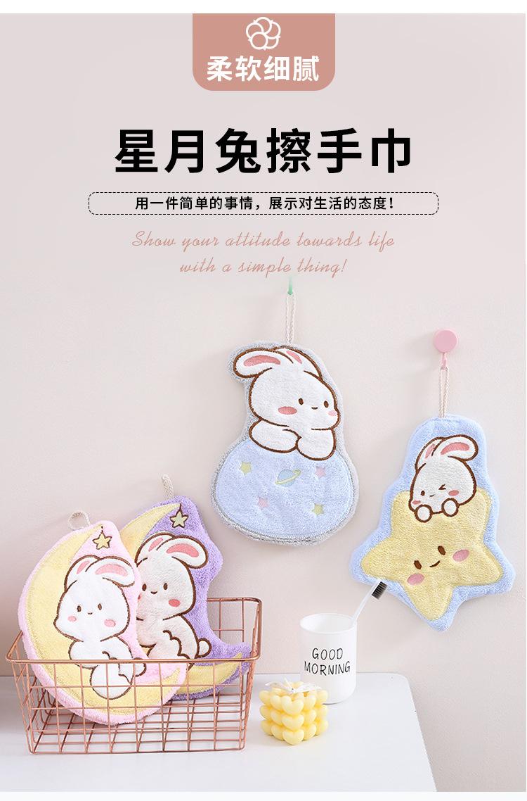 Toalla colgante para el hogar, toalla de manos para niños, venta al por mayor, toalla pequeña absorbente, linda toalla de dibujos animados con forma de estrella, luna y conejo