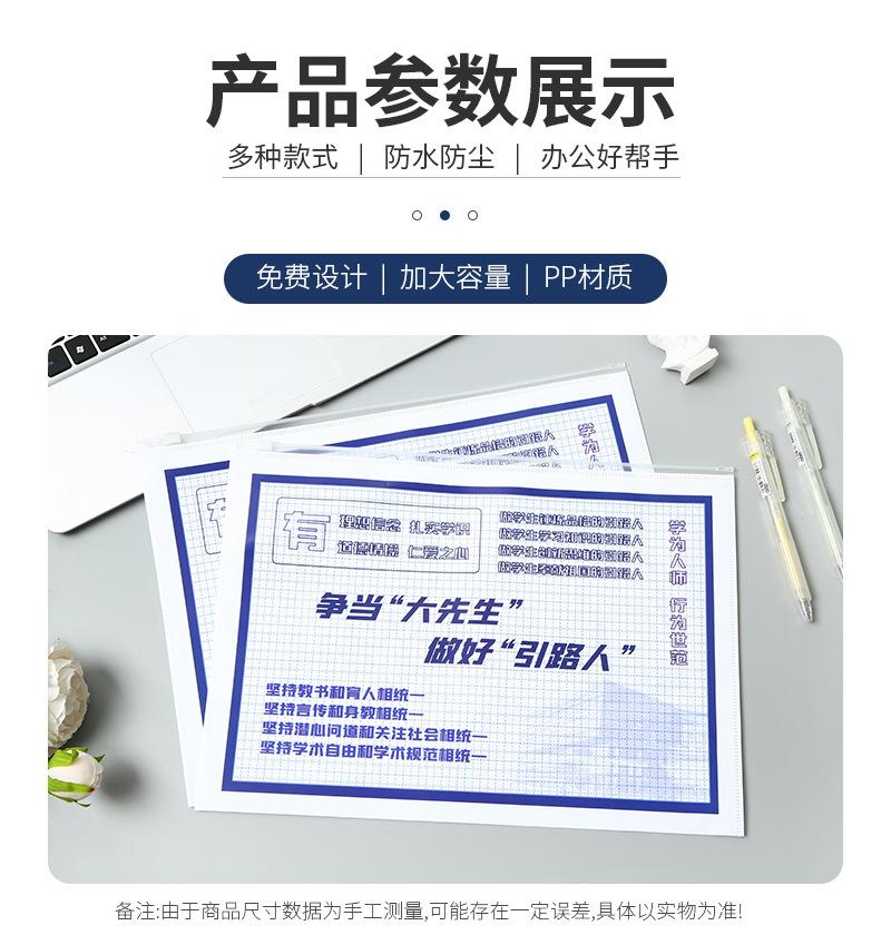 Bolsa de archivo engrosada A4, bolsa de almacenamiento de papel a presión de plástico transparente de gran capacidad, bolsa de información de archivo de archivo de estudiante