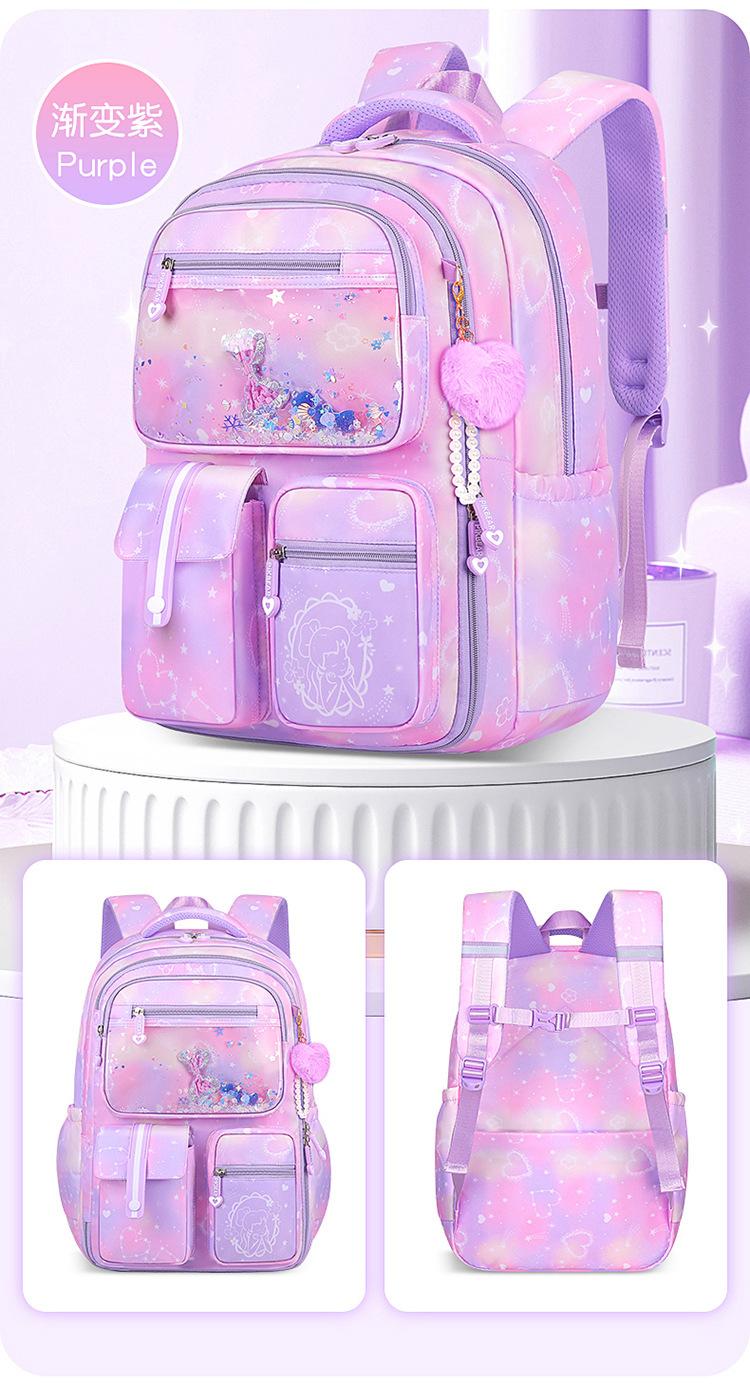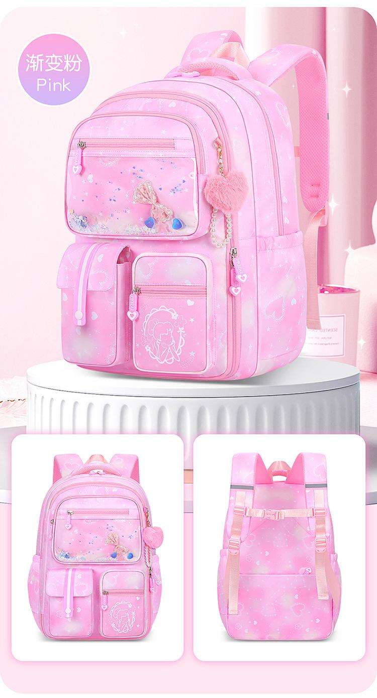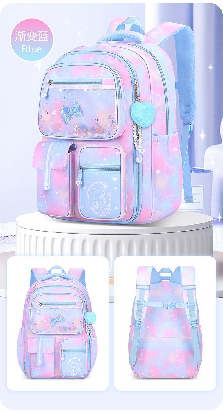 24 nuevas mochilas escolares para niñas, mochilas para estudiantes de primaria y secundaria para reducir la carga de las niñas impermeables, impresión kulomi de sexto grado